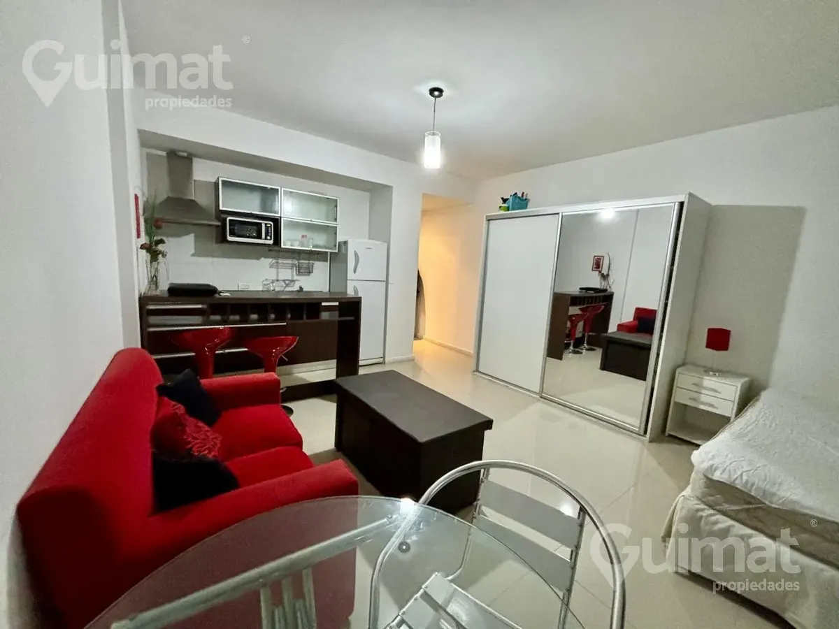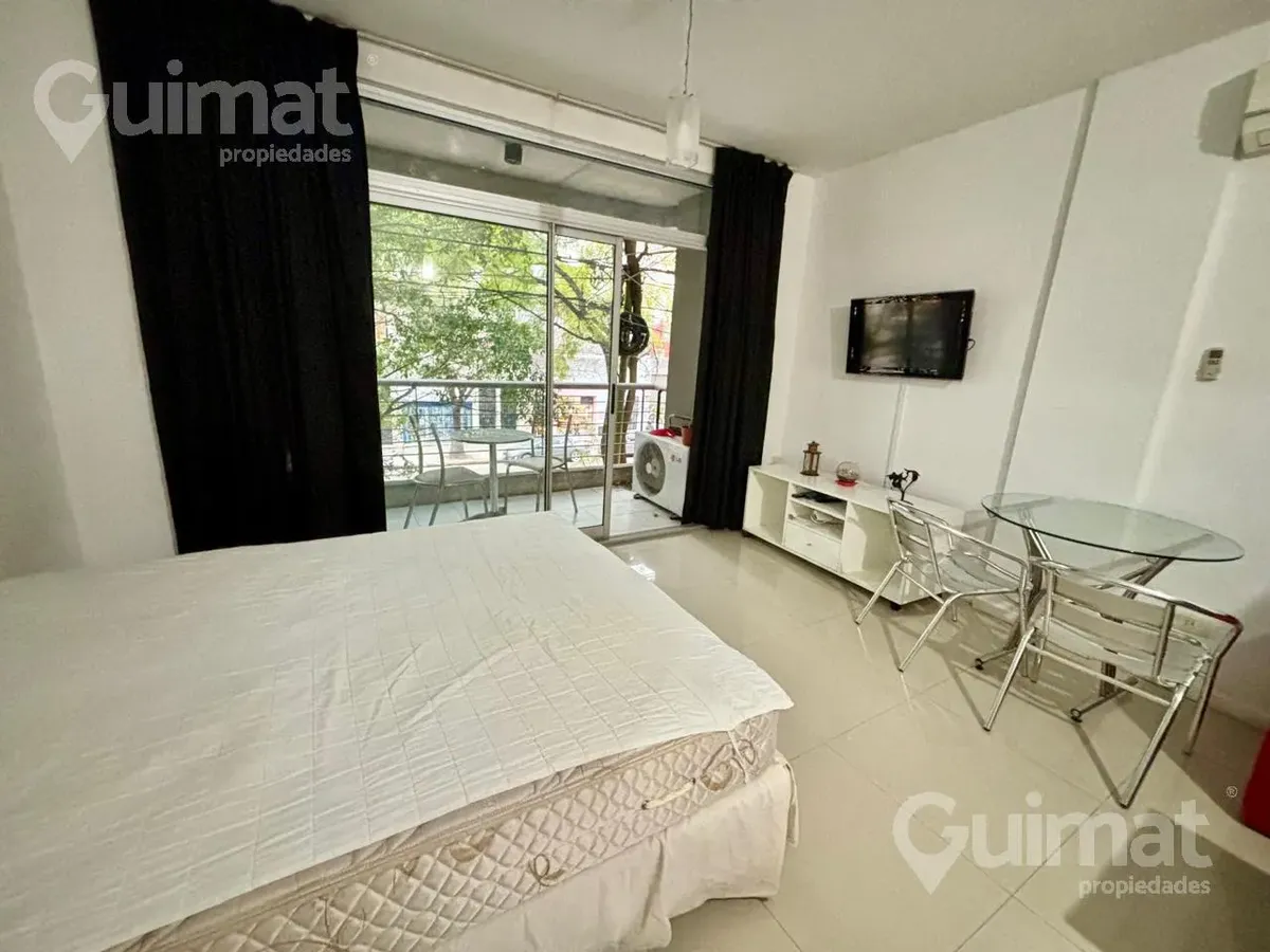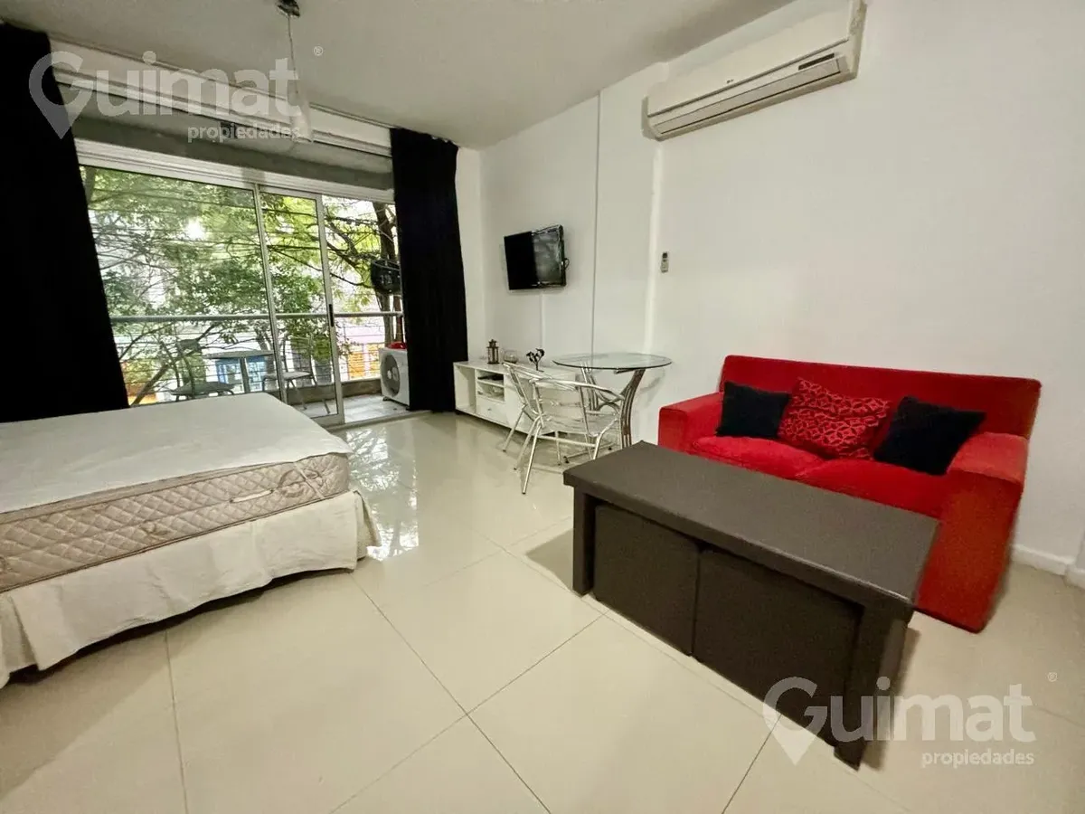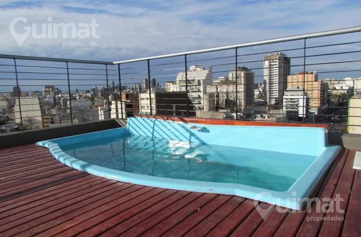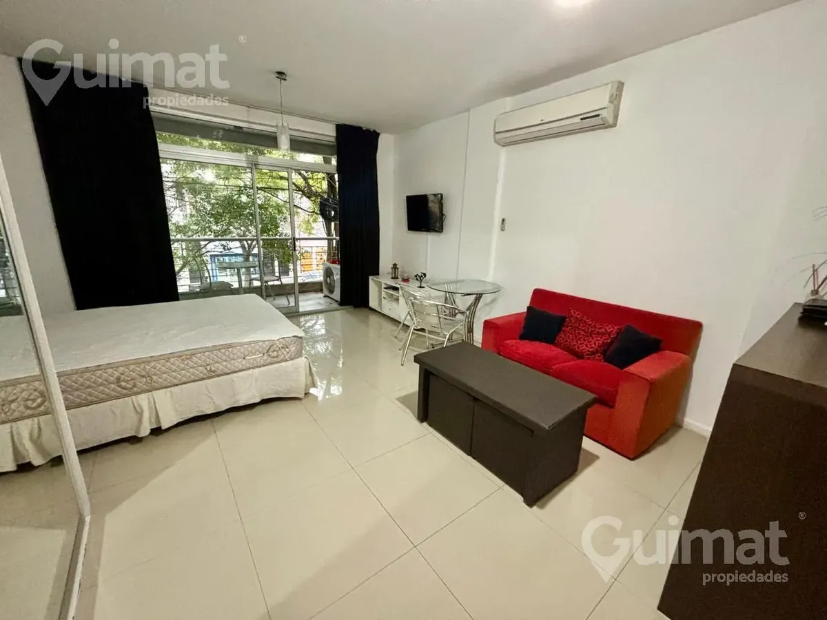Furnished studio apartment in Almagro with a front balcony. Rental is for up to 2 people. Rent is ARS 650,000 per month, including water and ABL; electricity, internet and building fees are additional, with expensas of about ARS 150,000. The building has a laundry area, pool and communal room (SUM). Public transport includes colectivos 19, 36, 90, 92, 99, 106, 109, 127, 140, 151, 160, 168.