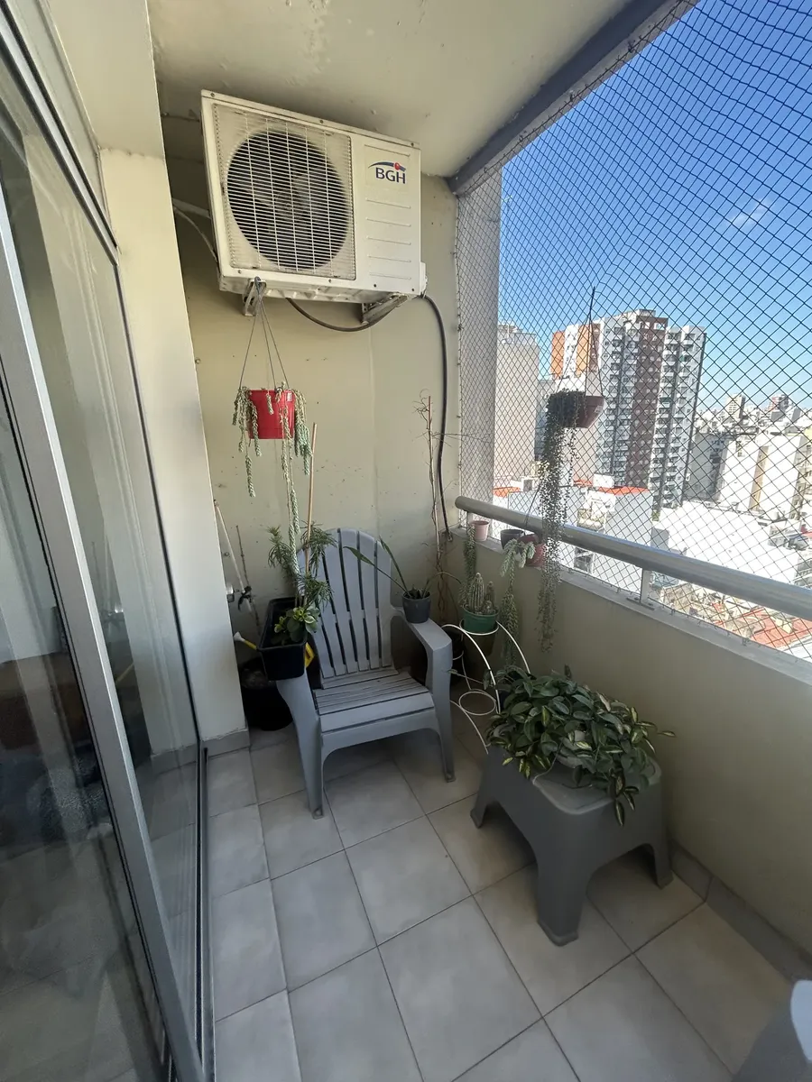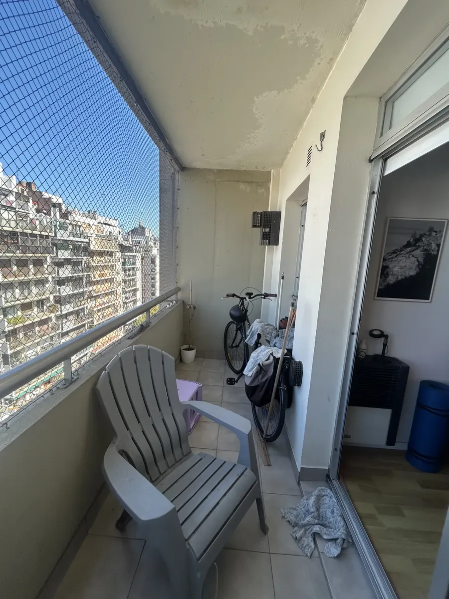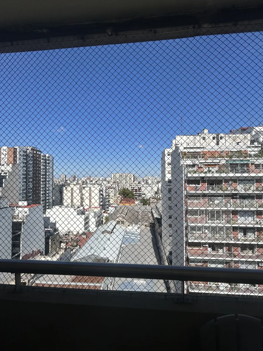 Spacious studio apartment of 32 m² covered area, 37 m² total, on a high floor in Almagro. Includes a private balcony, full bathroom with bathtub and bidet, and a kitchen with oven. Air conditioning (hot/cold) and a stove are installed. The building has a pool, gym, laundry facilities and 24-hour security. Pets are accepted. Rental requires a minimum term of 6 months up to 3 years. Price is USD 500 per month plus building fees.