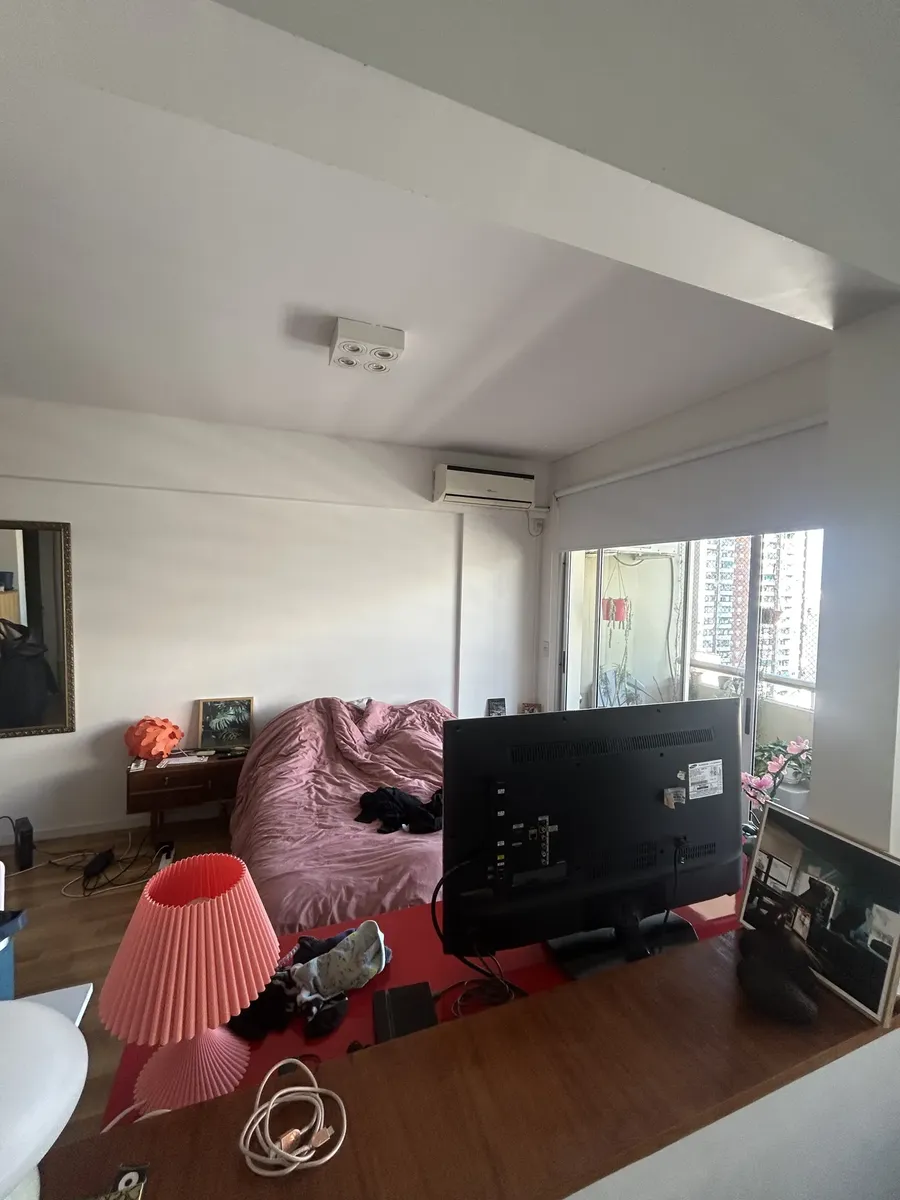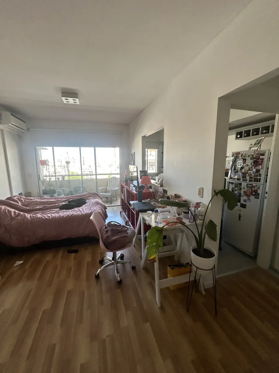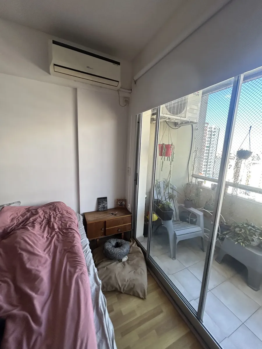 Spacious studio apartment of 32 m² covered area, 37 m² total, on a high floor in Almagro. Includes a private balcony, full bathroom with bathtub and bidet, and a kitchen with oven. Air conditioning (hot/cold) and a stove are installed. The building has a pool, gym, laundry facilities and 24-hour security. Pets are accepted. Rental requires a minimum term of 6 months up to 3 years. Price is USD 500 per month plus building fees.