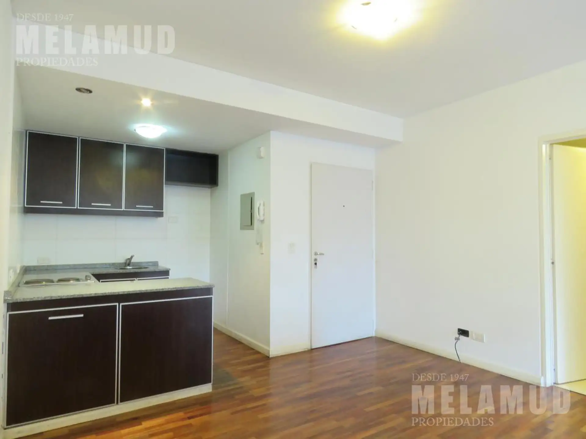 Studio apartment facing the street with access to a balcony. Equipped kitchen with lower and upper cabinets, electric oven and countertop burner, plus an interior room divider with storage space. Full bathroom, wood floors, and hot-and-cold air conditioning. The building has a pool, solarium, grill area and laundry. Rental is in Almagro, a few blocks from Parque Centenario, Av. Rivadavia and Subte Línea A station Río de Janeiro. Building fees and measurements are approximate and subject to verif