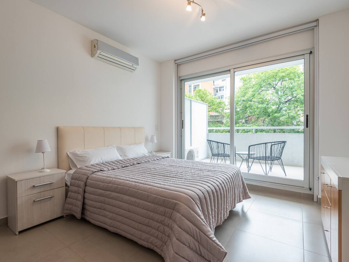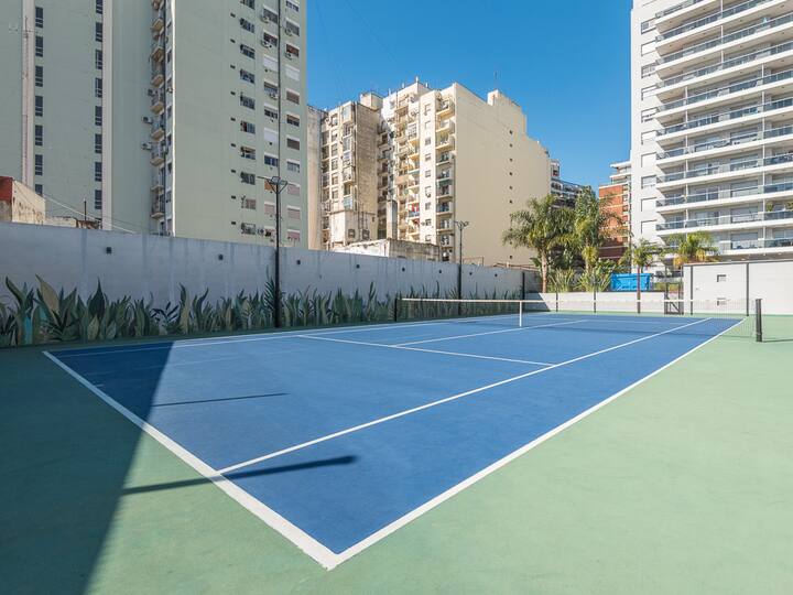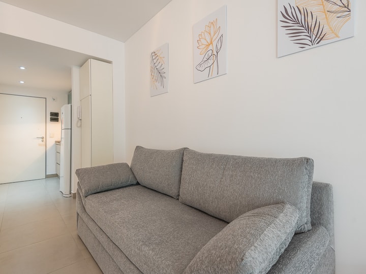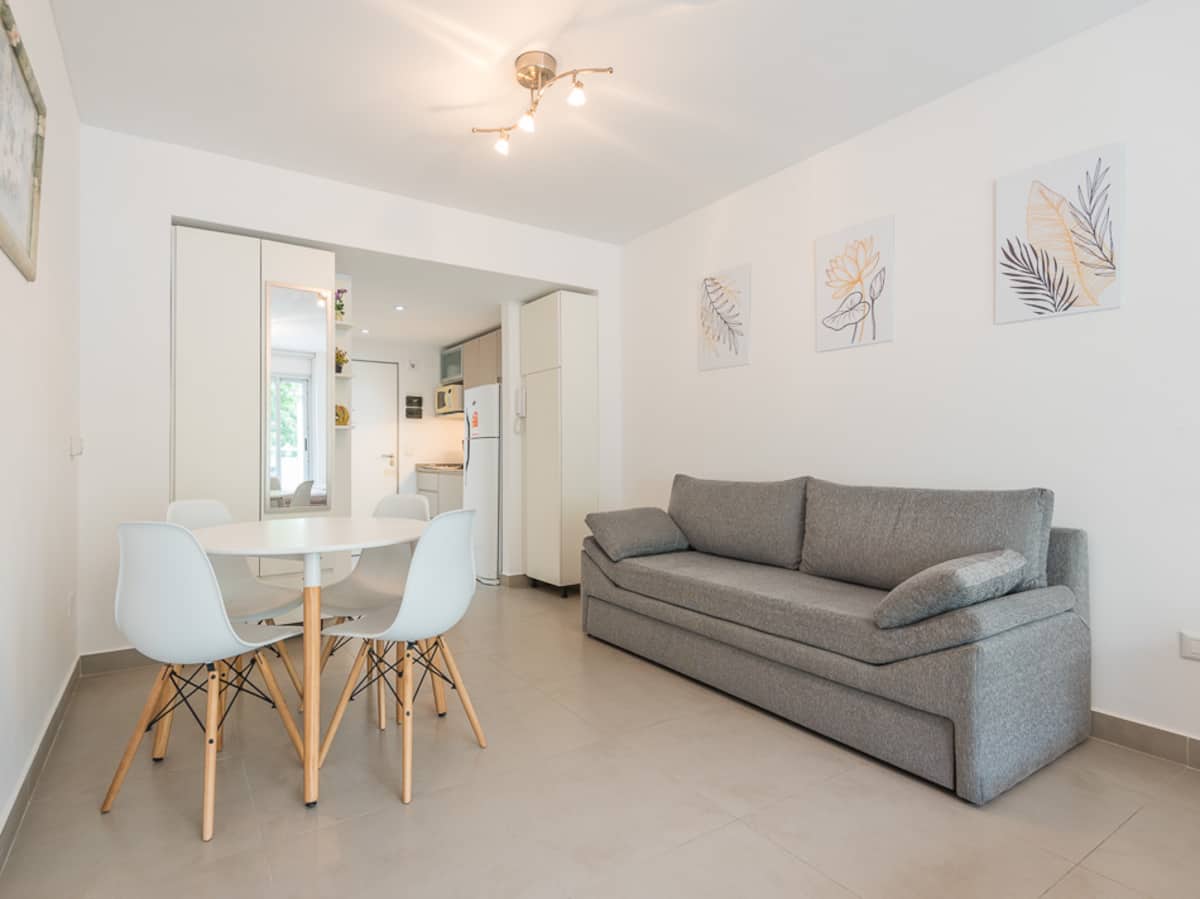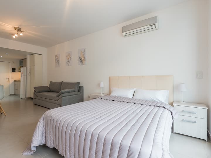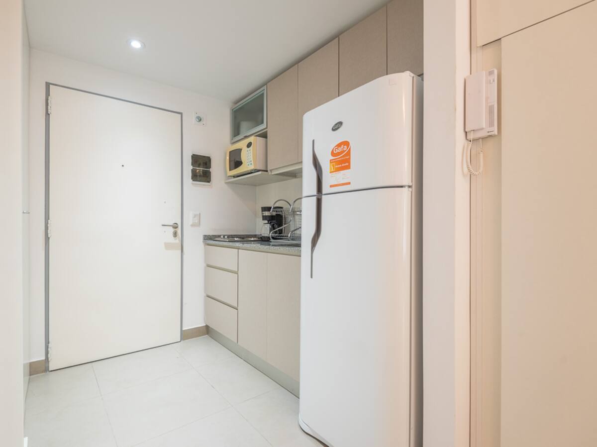 Equipped studio apartment in Almagro on Av. Rivadavia, close to transport and medical institutions. It has a double bed and a single sofa bed, a dining table with chairs, a kitchen with a refrigerator with freezer, a full bathroom, and a balcony. Cable TV and Wi-Fi internet are available. The building has a heated pool, gym, coin-operated laundry, tennis court, garden and a grill, with the grill available for an additional charge.