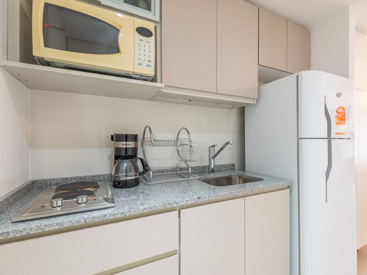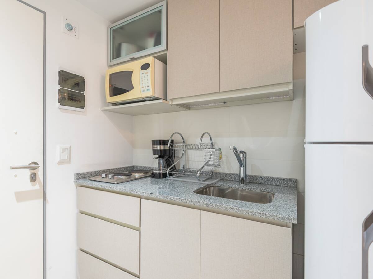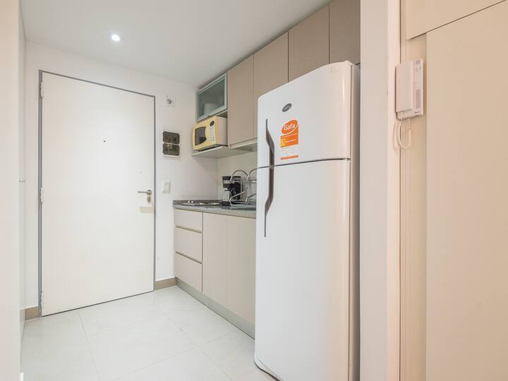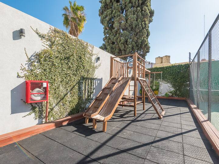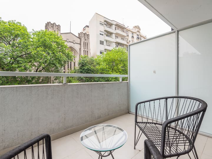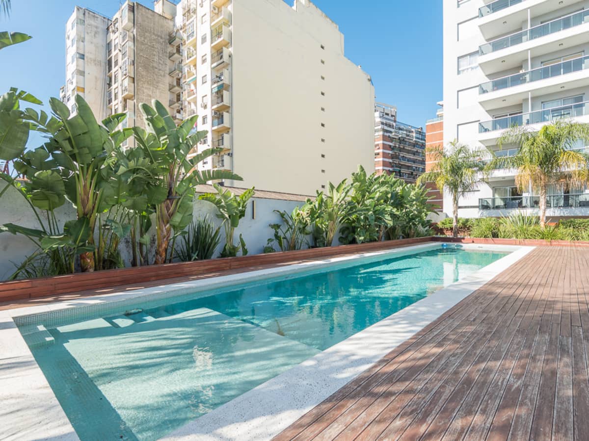 Equipped studio apartment in Almagro on Av. Rivadavia, close to transport and medical institutions. It has a double bed and a single sofa bed, a dining table with chairs, a kitchen with a refrigerator with freezer, a full bathroom, and a balcony. Cable TV and Wi-Fi internet are available. The building has a heated pool, gym, coin-operated laundry, tennis court, garden and a grill, with the grill available for an additional charge.