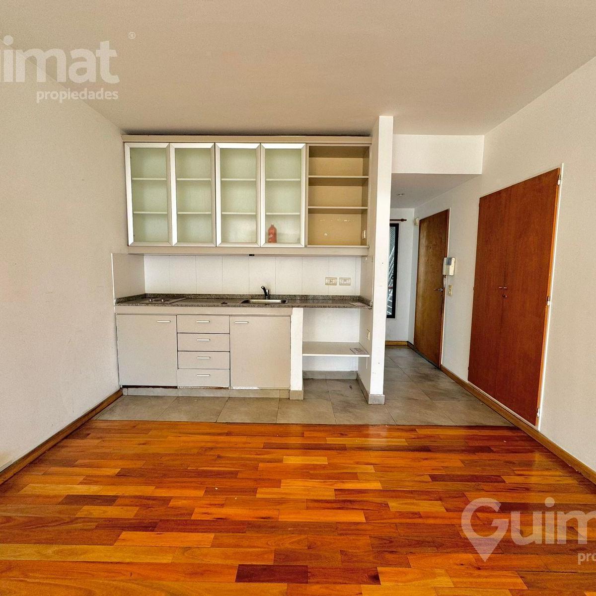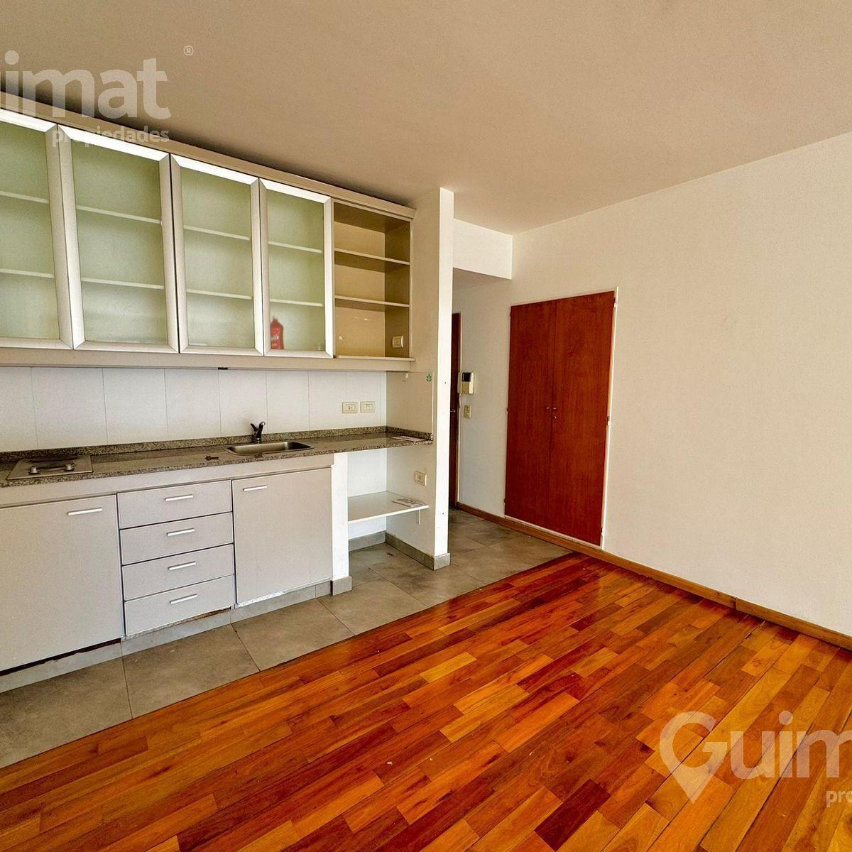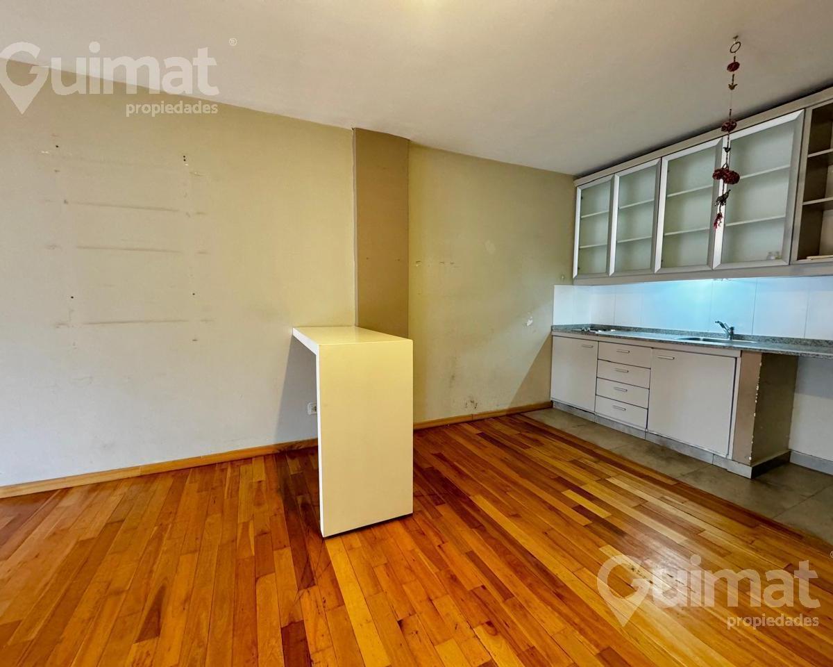 Studio apartment of unspecified size in Almagro, courtyard-facing (contrafrente). Includes an integrated kitchen, a full bathroom and built-in closet space. The building has laundry facilities, a pool with green areas, a grill and a communal room (SUM). Two blocks from Avenida Córdoba and close to multiple bus lines.