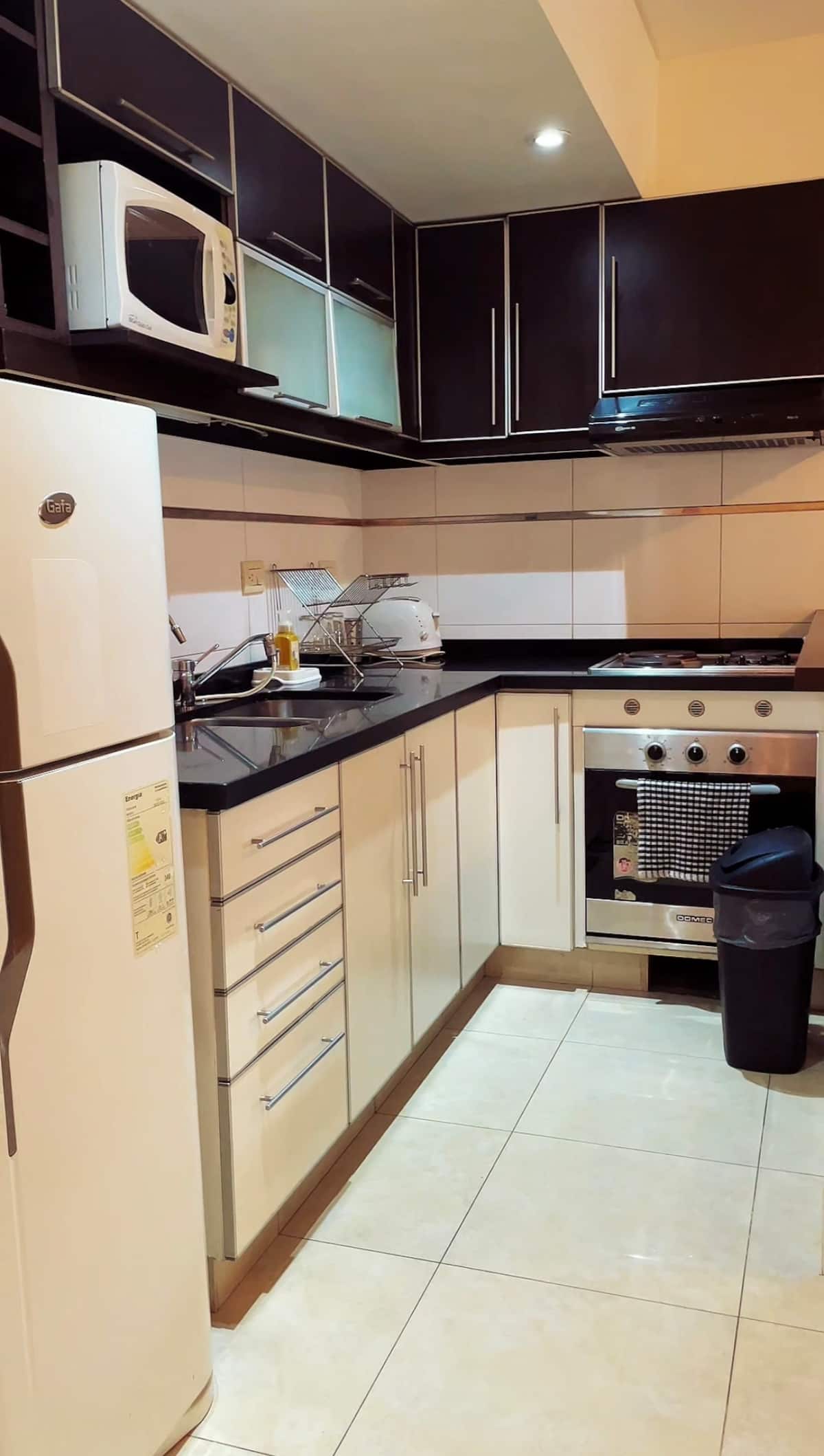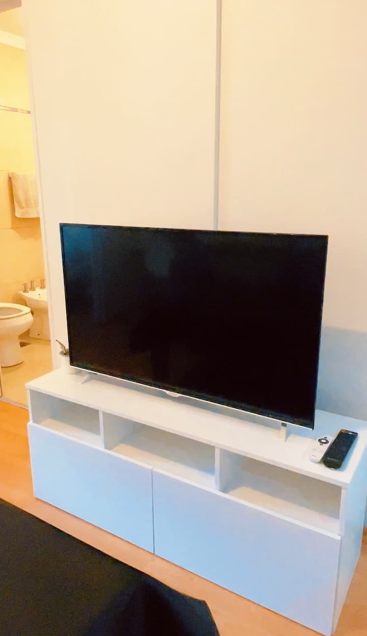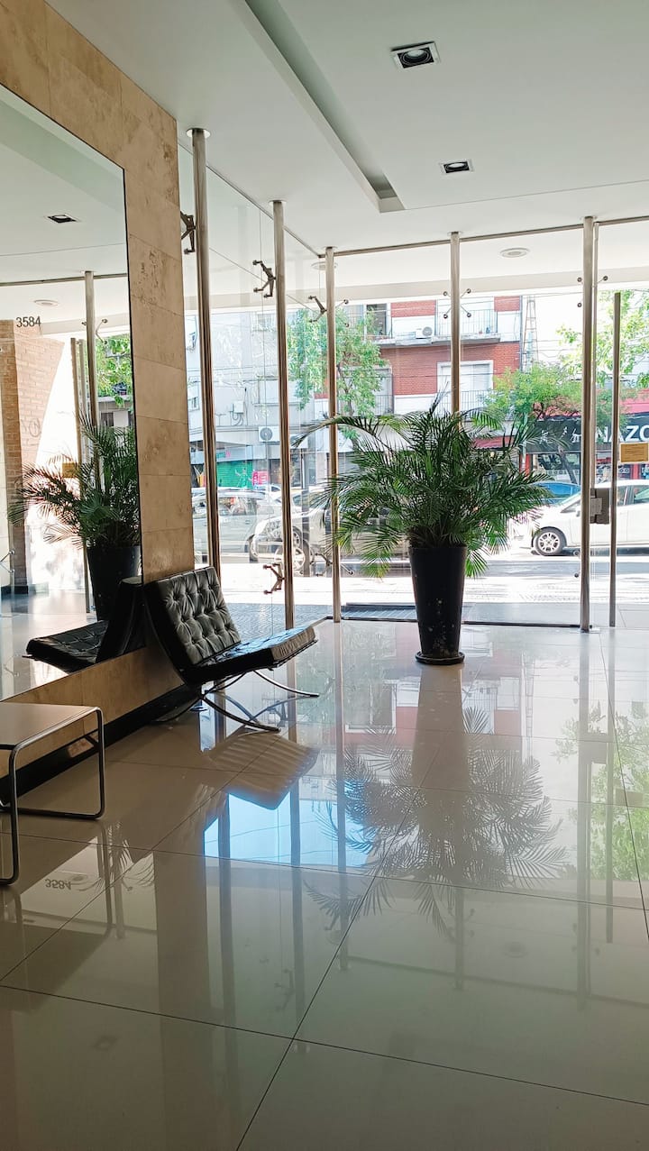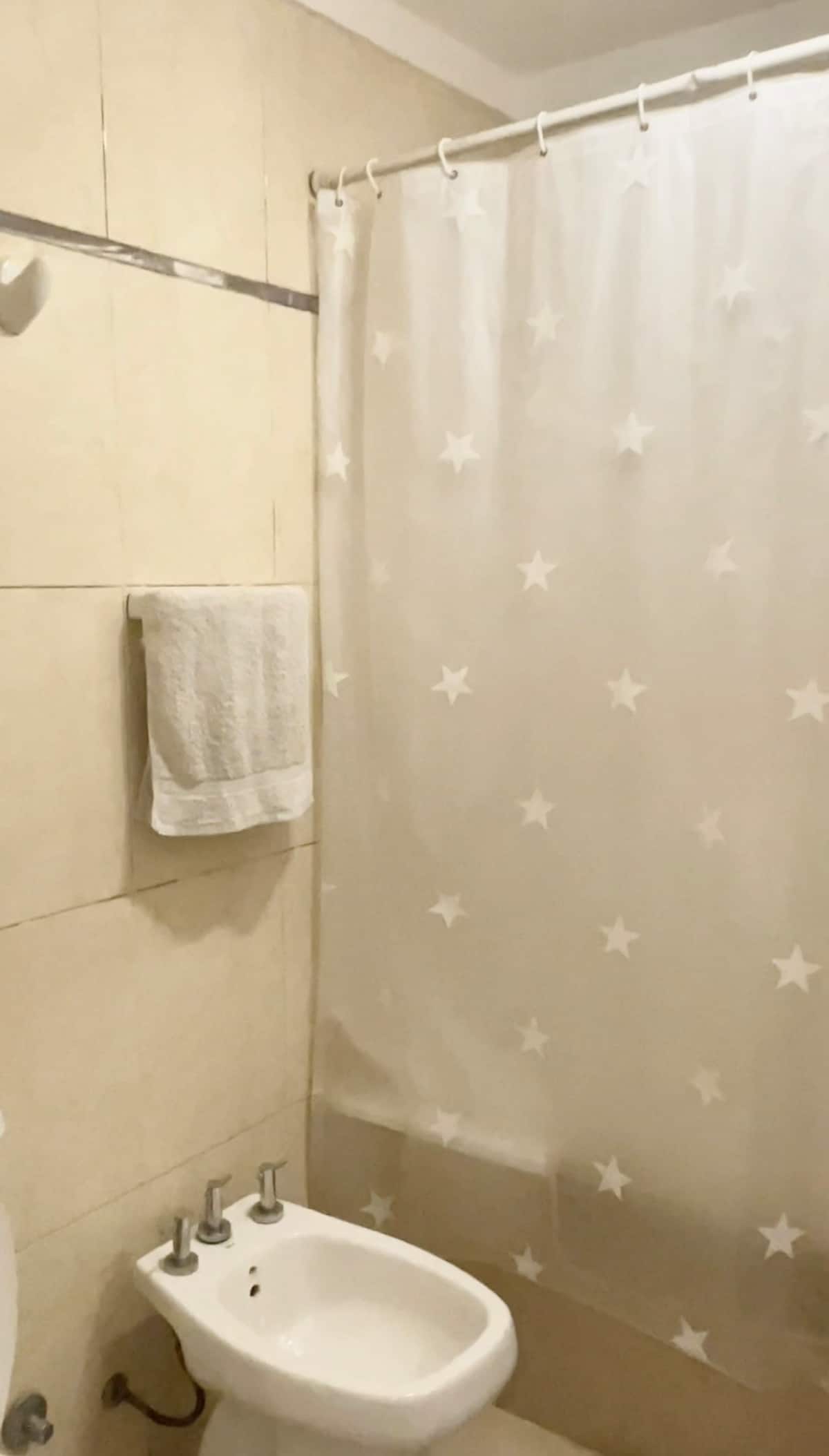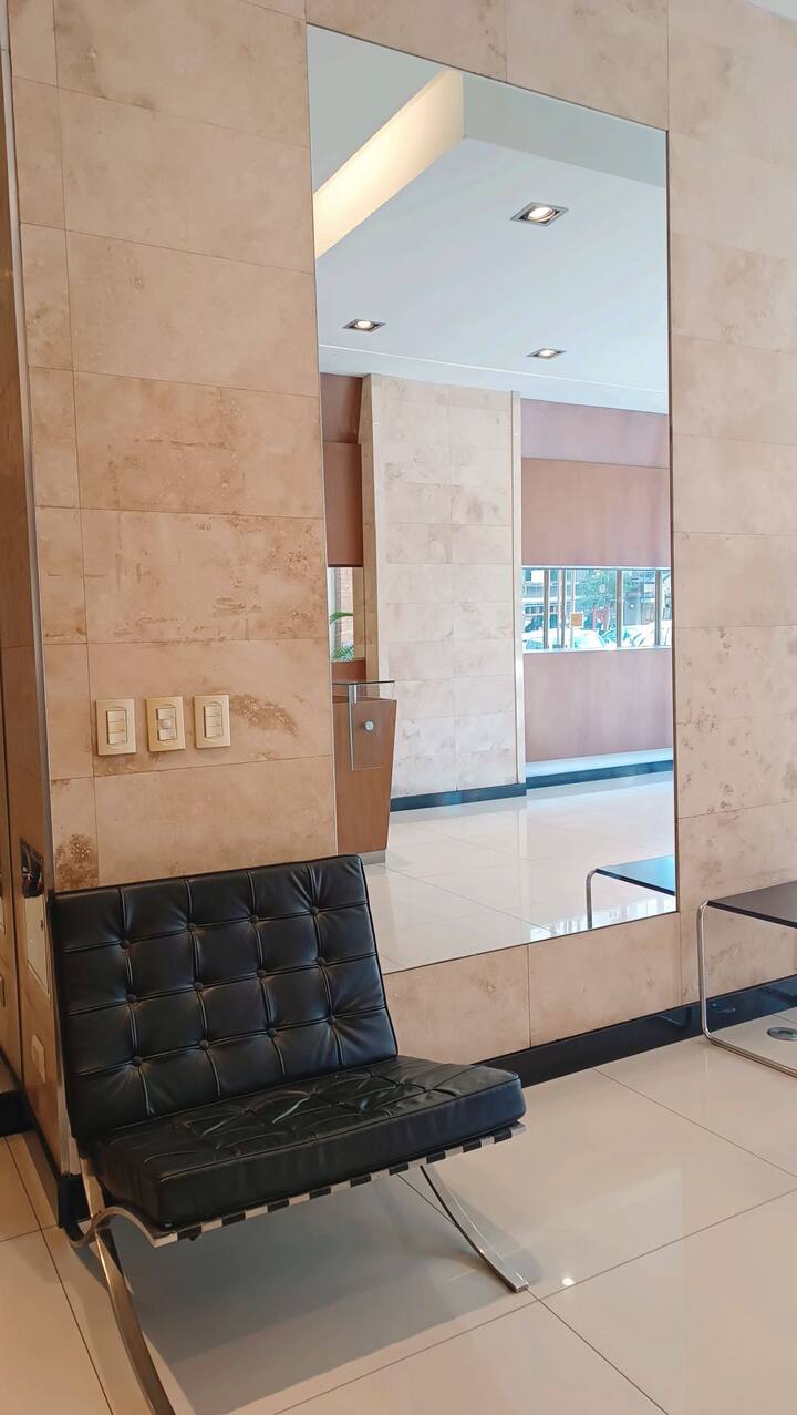 Studio apartment in Almagro with a double bed. Includes a full kitchen and a bathroom with a bathtub. The building has a swimming pool, a rooftop terrace, and free parking; each unit can be accessed by lift or stairs.