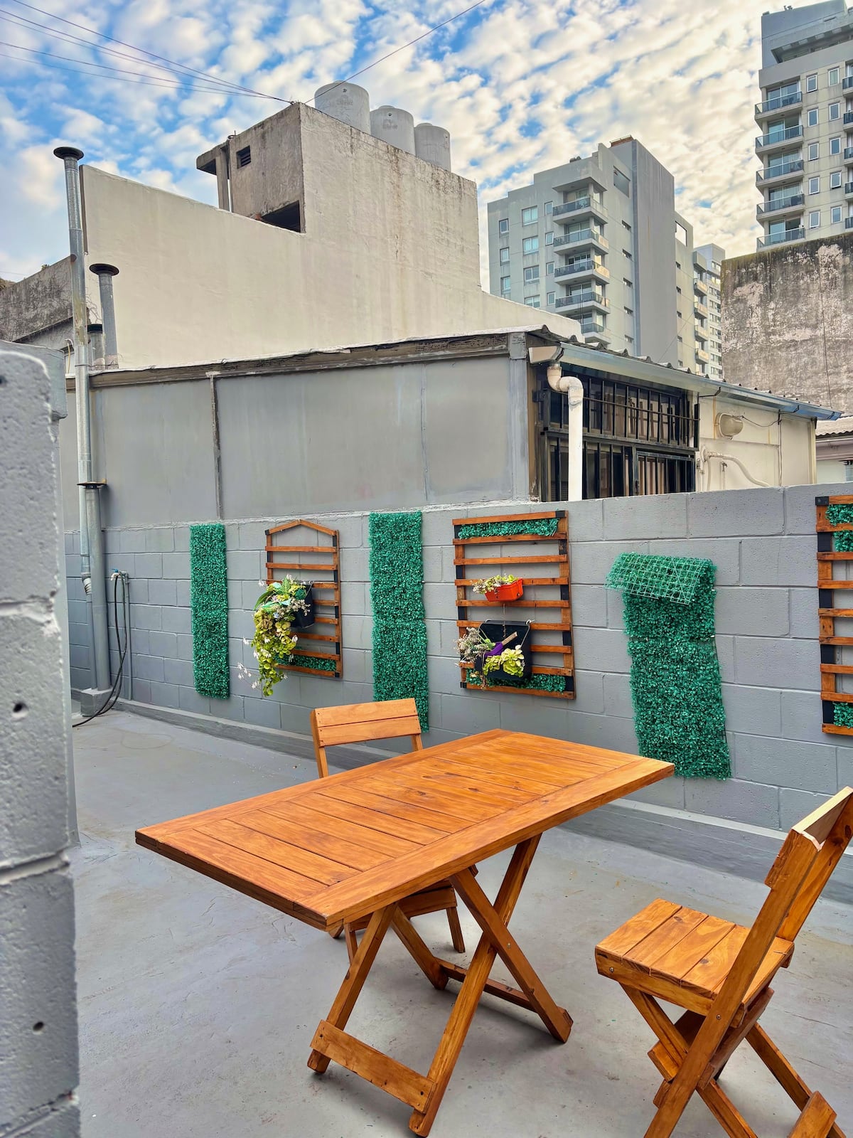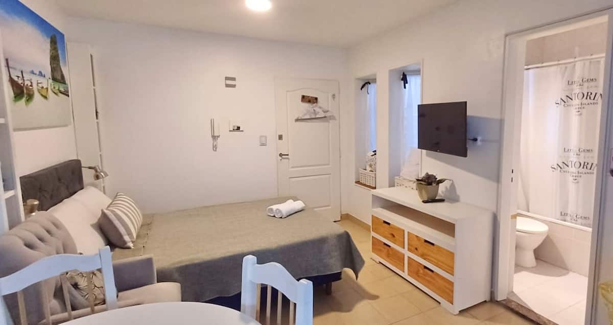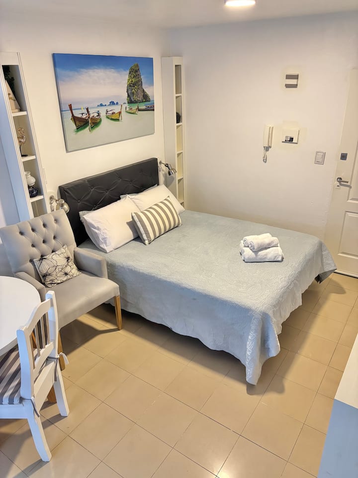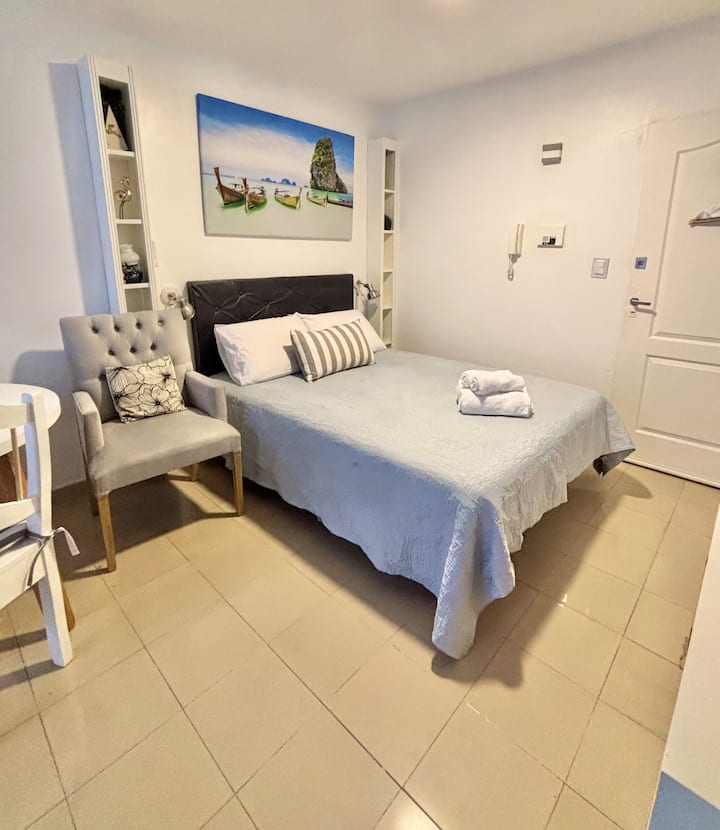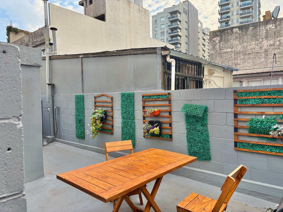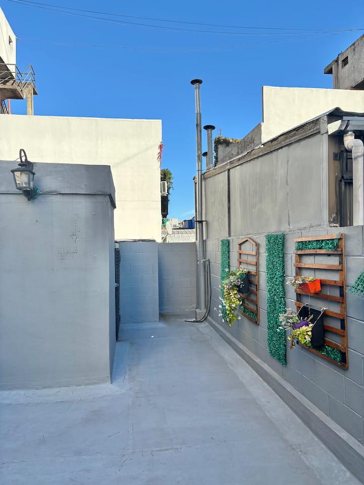 Fully equipped studio with a private terrace and open views. The terrace is part of the apartment and is for guests only. Self-service check-in and check-out uses a lockbox; keys are collected about half a block from the apartment.