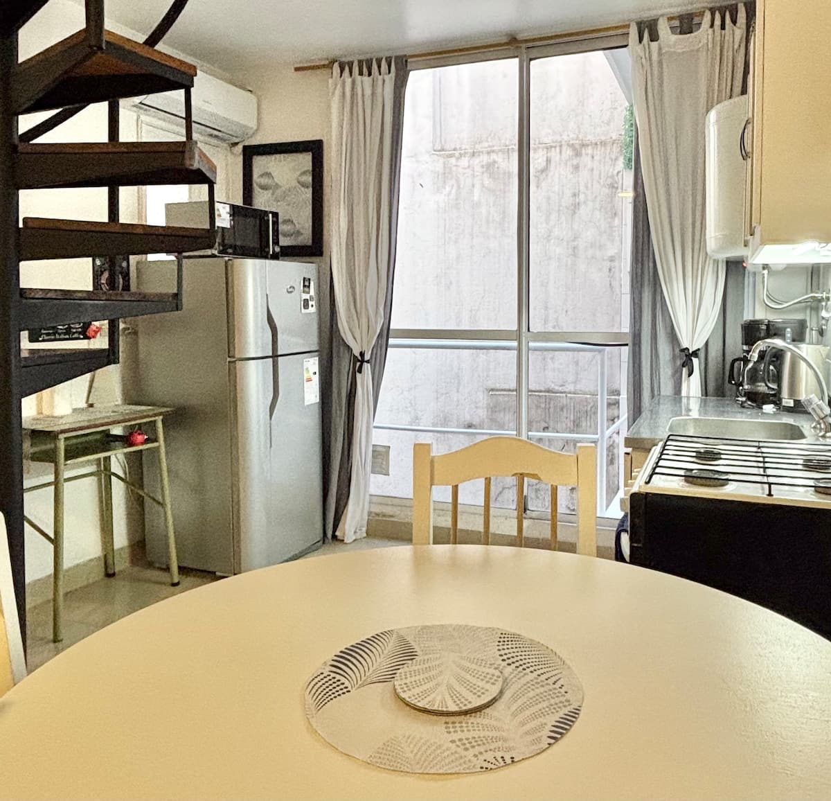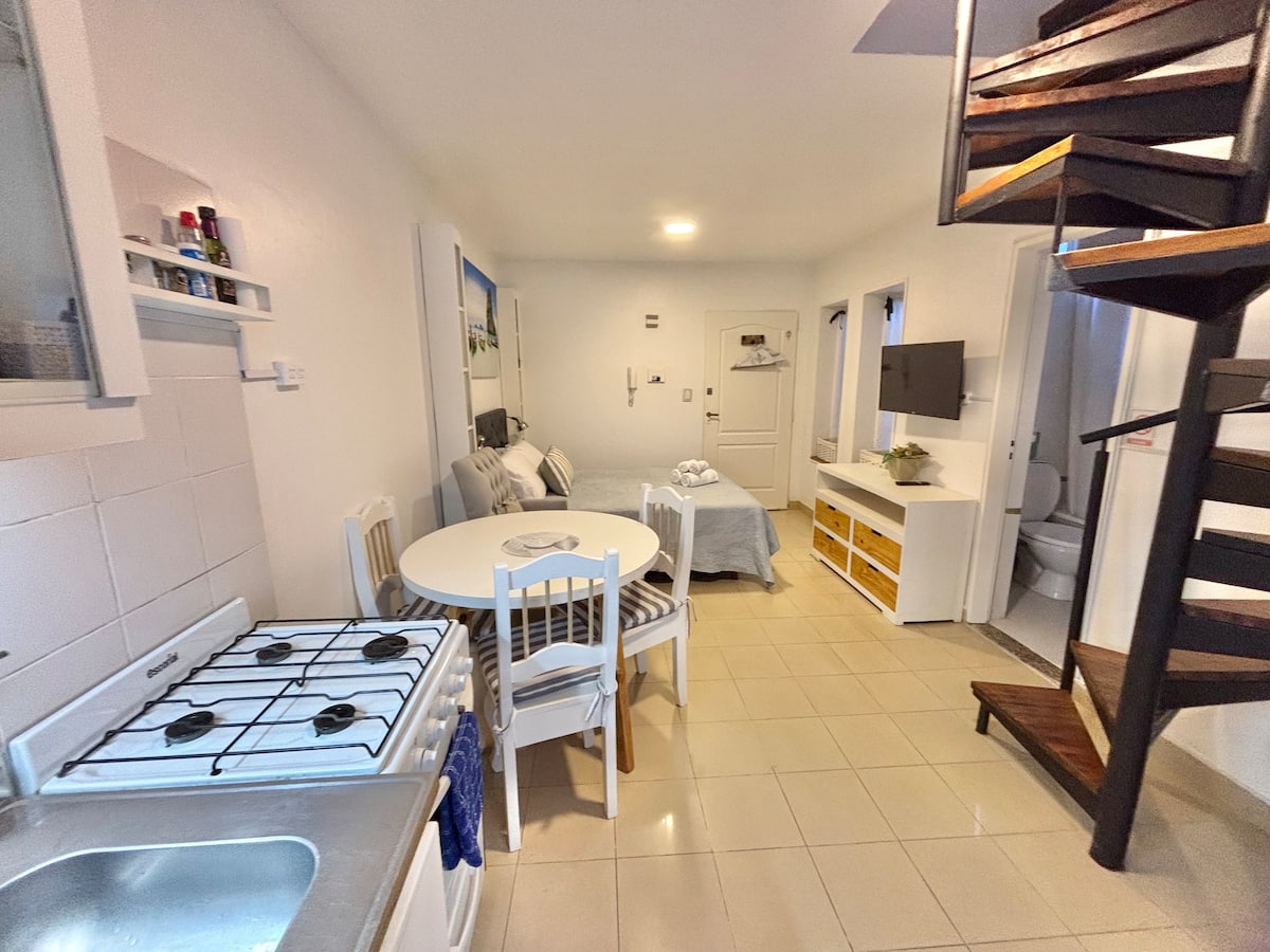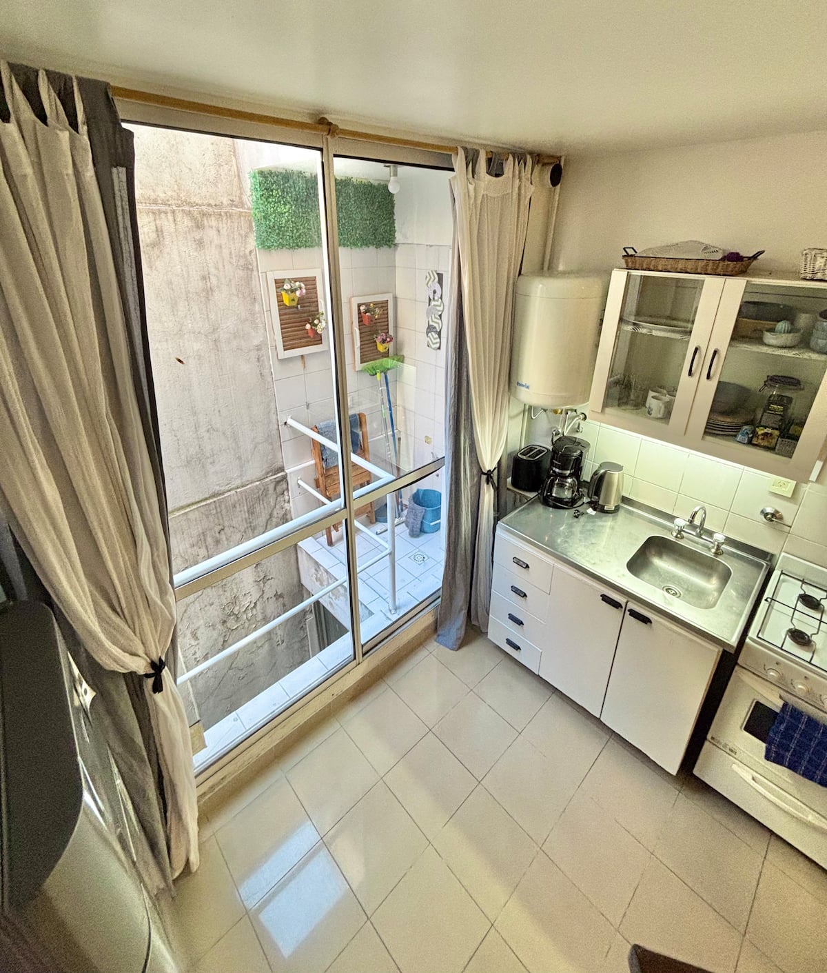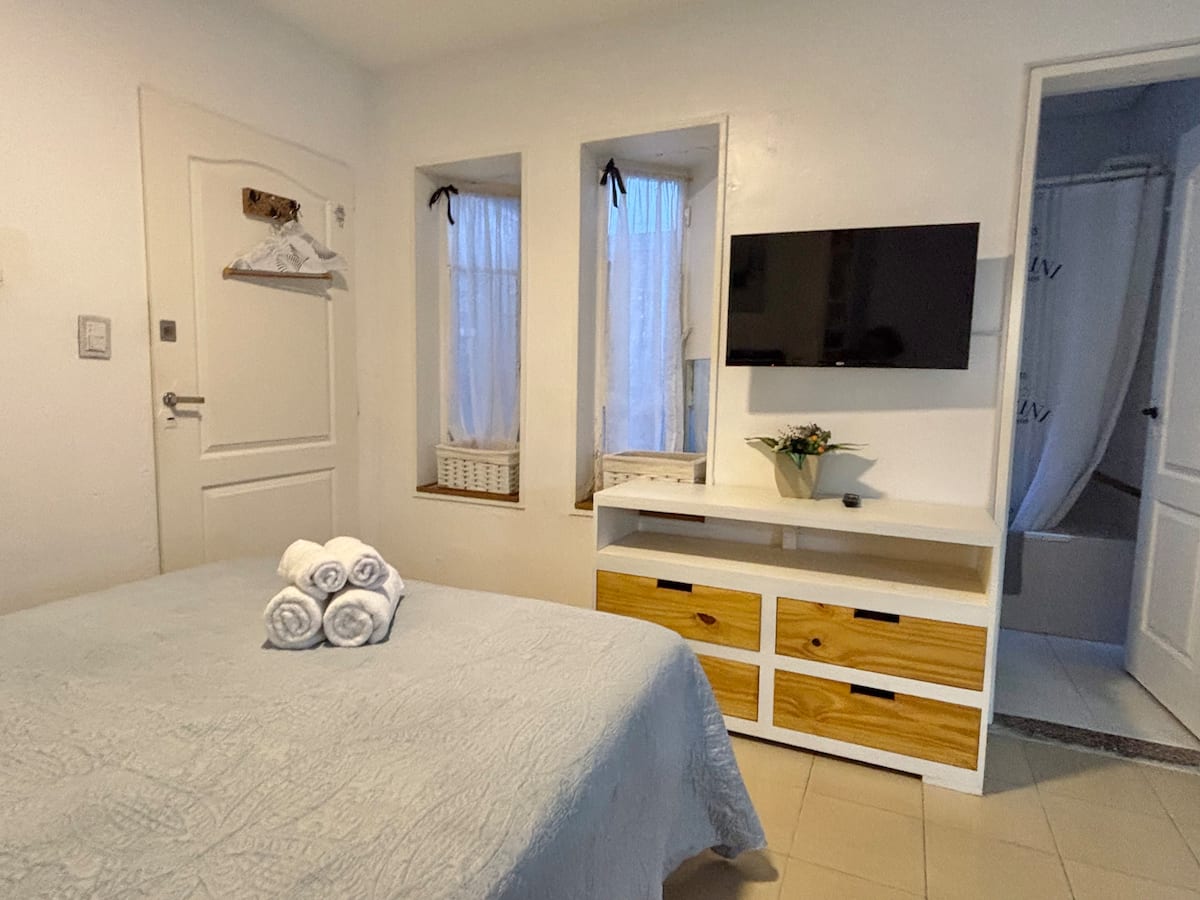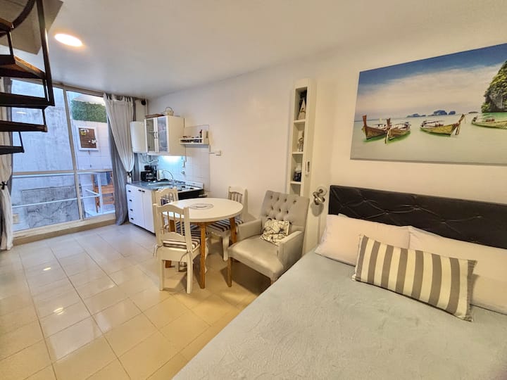 Fully equipped studio with a private terrace and open views. The terrace is part of the apartment and is for guests only. Self-service check-in and check-out uses a lockbox; keys are collected about half a block from the apartment.