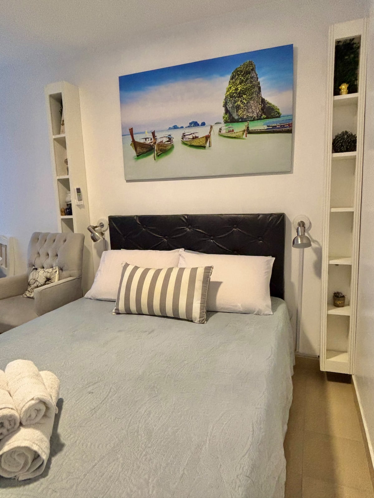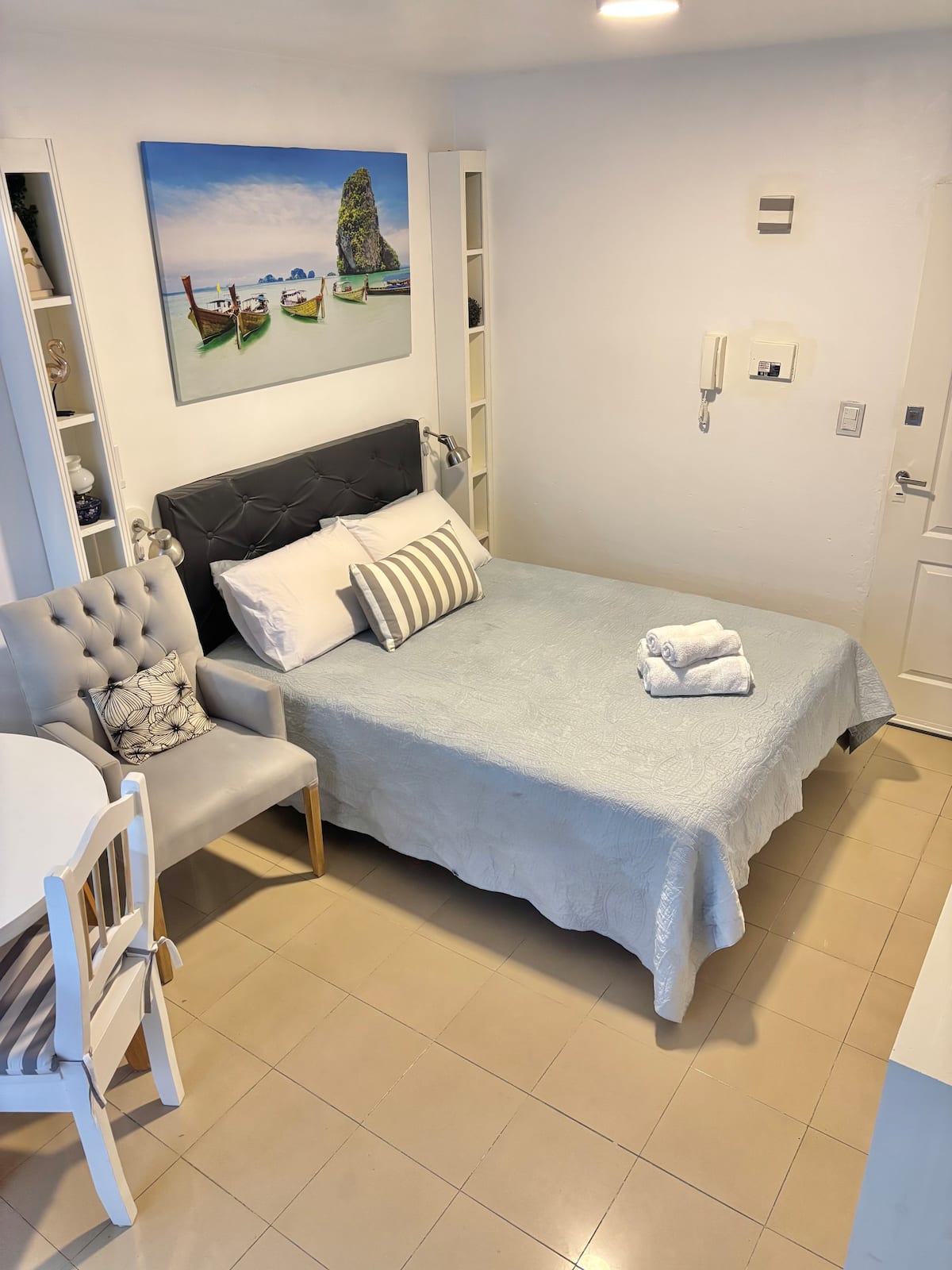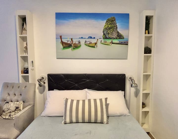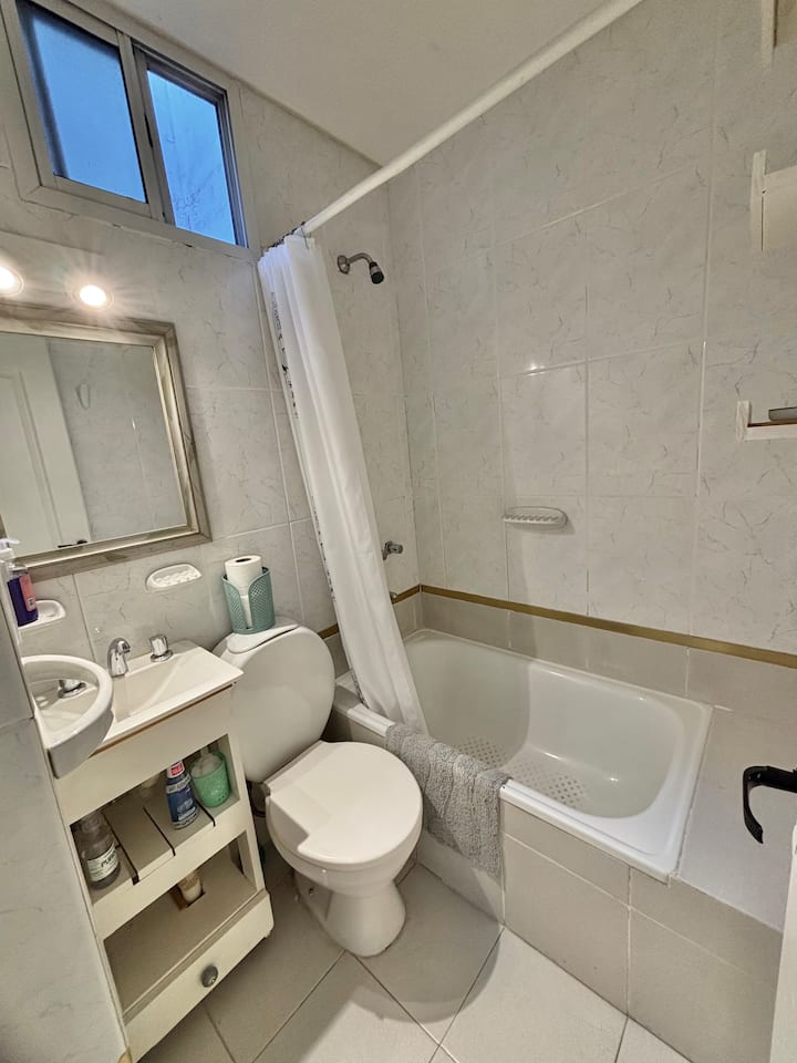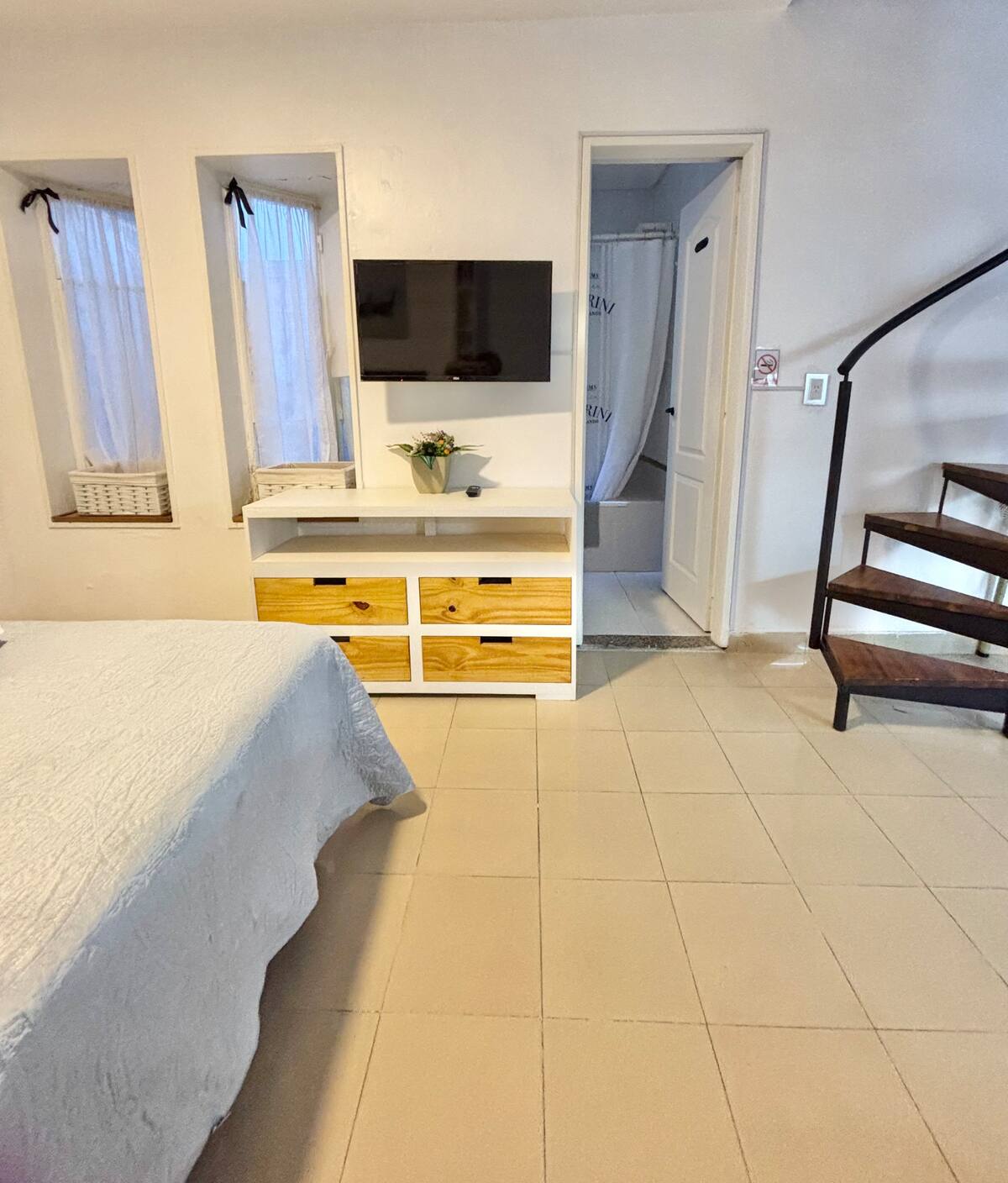 Fully equipped studio with a private terrace and open views. The terrace is part of the apartment and is for guests only. Self-service check-in and check-out uses a lockbox; keys are collected about half a block from the apartment.