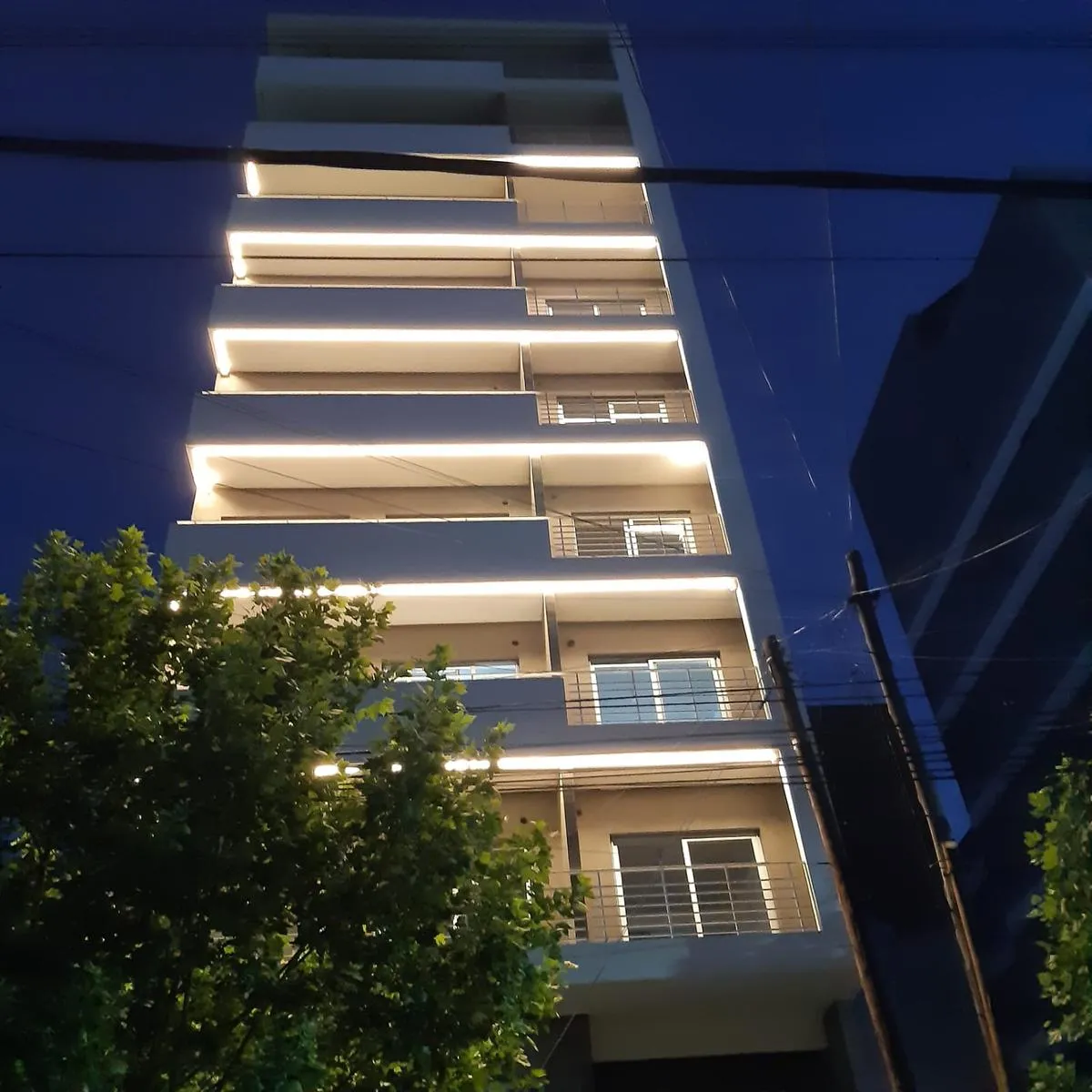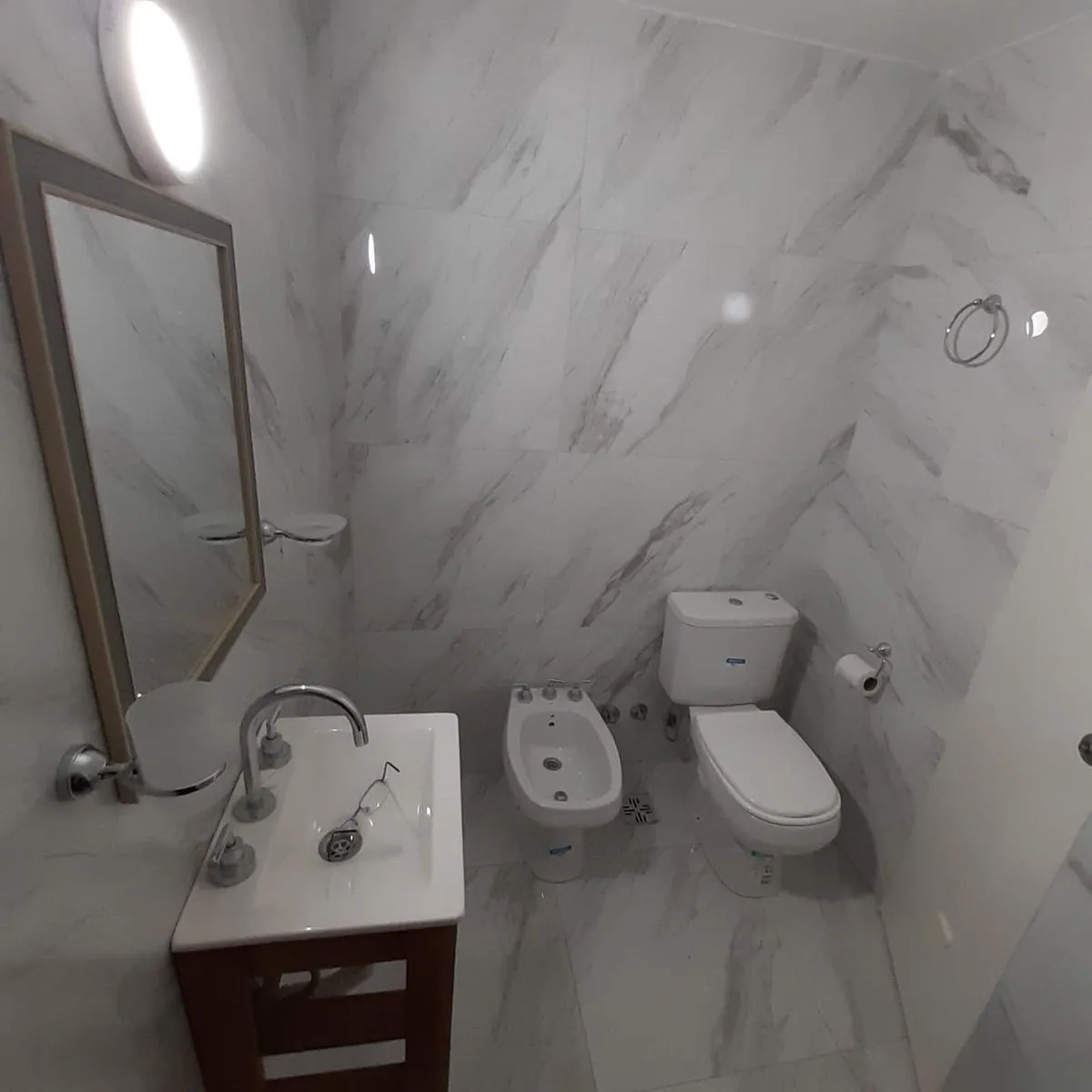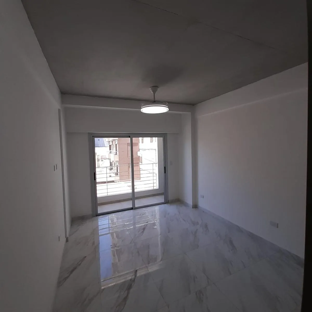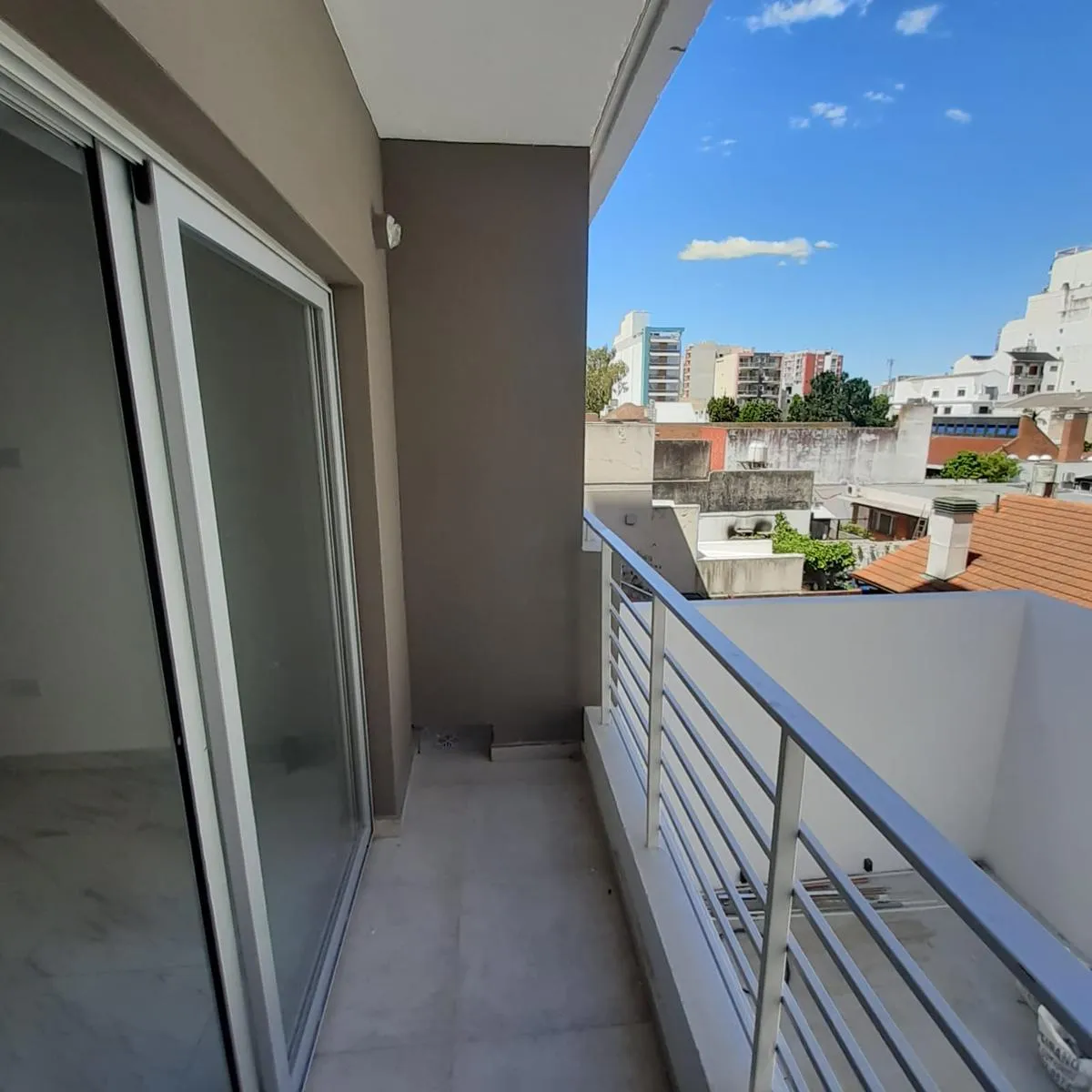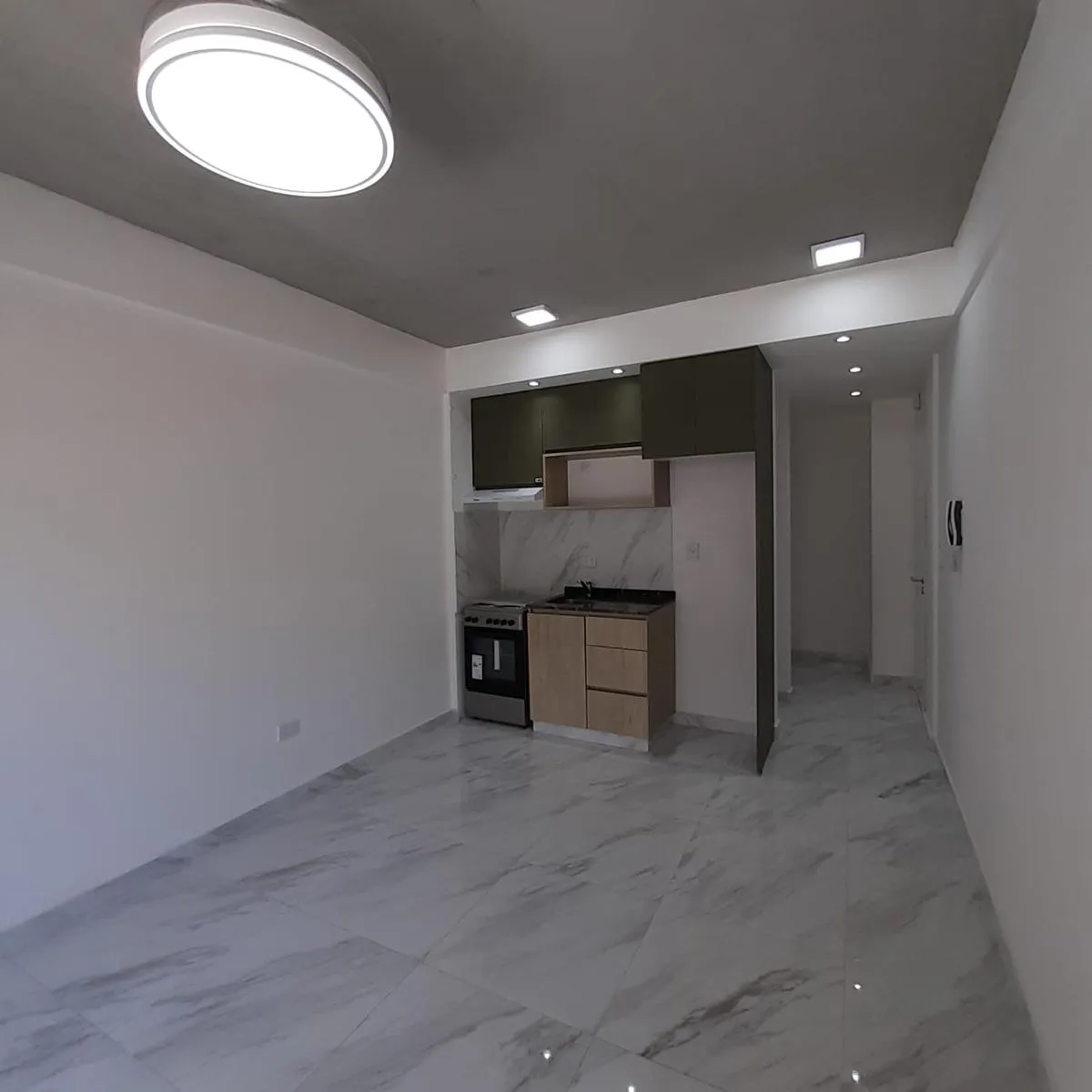 New studio apartment for rent in Wilde Centro, 1 room, with a balcony to the courtyard-facing side. The unit has a full bathroom with current finishes and a combined living area with a kitchen. The building offers a communal SUM and a large rooftop terrace with grills. Estimated building fees are ARS 100,000 and include utilities; the rental contract is for 2 years with a quarterly increase based on the IPC index, and a rental guarantee bond is required for move-in.