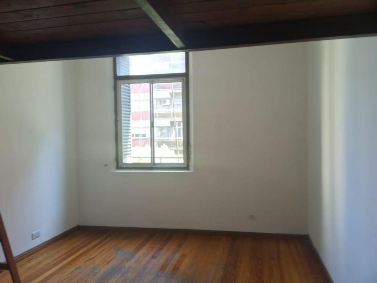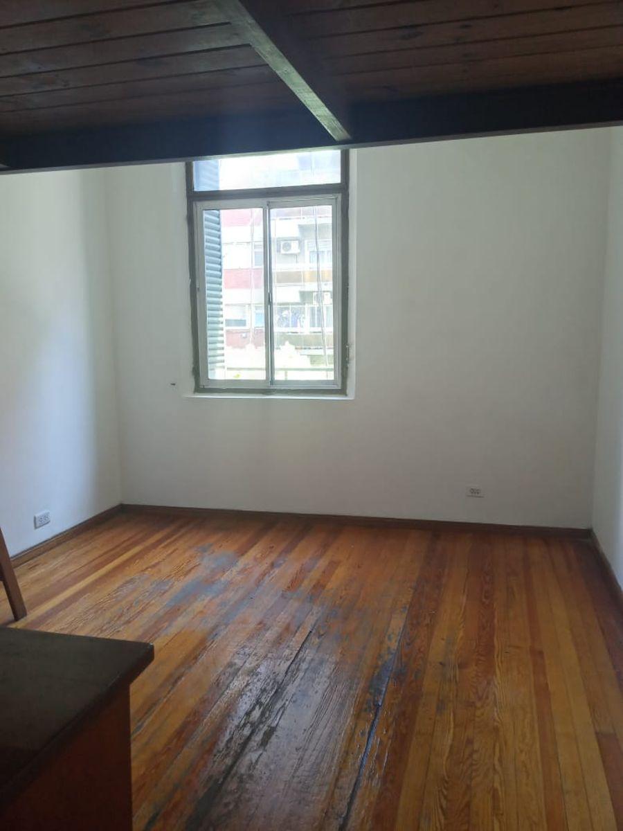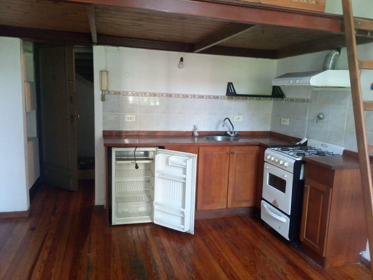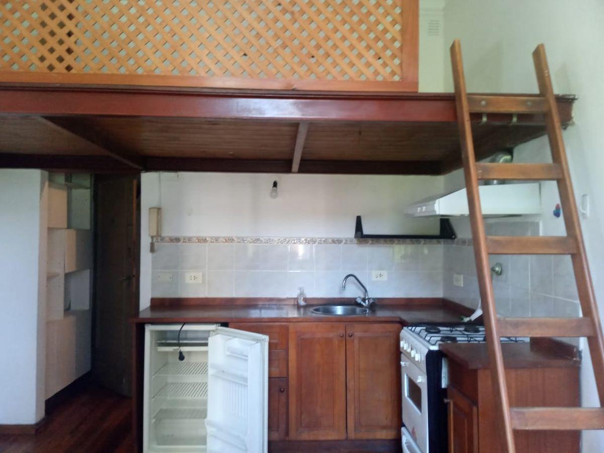 One-room apartment (studio) with mezzanine, courtyard-facing (contrafrente). Integrated kitchen and a full bathroom. Mezzanine includes a closet. Building fees are lower (expensas). Measurements are approximate.