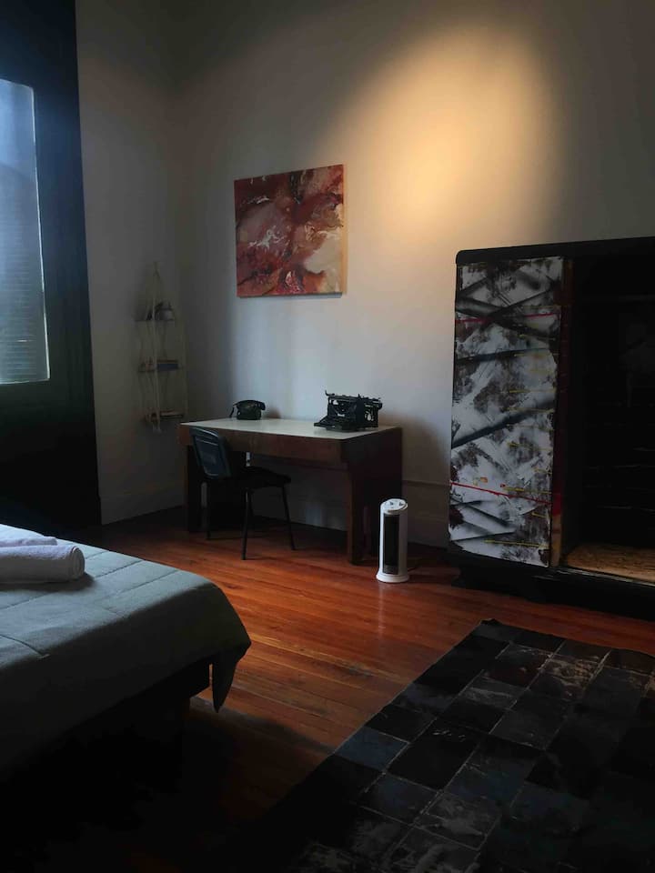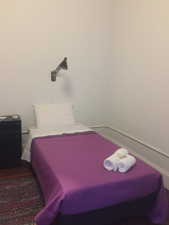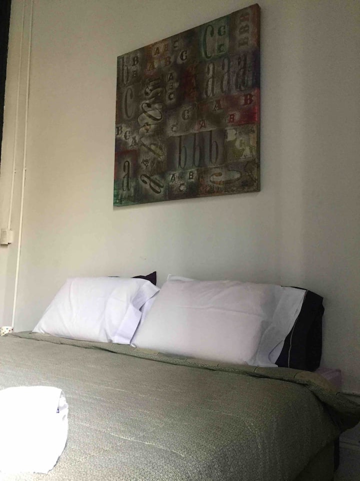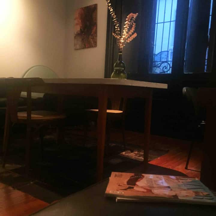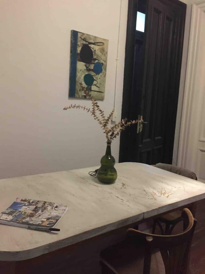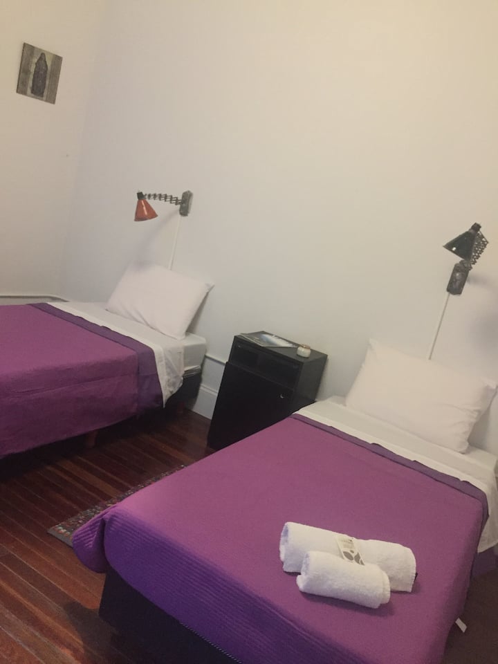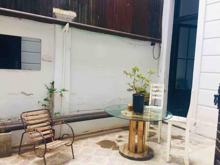 Private room in a historic house in San Telmo. The property includes a kitchen, living room and patio, plus a reading room. Three bathrooms are available. WiFi, laundry facilities with two washing machines and a clothesline, and a patio with a grill are included. The room can be arranged with either two single beds or one double bed. Cleaning of common areas is provided at least once a week, and guests have access to the living room, patio, kitchen and reading room.