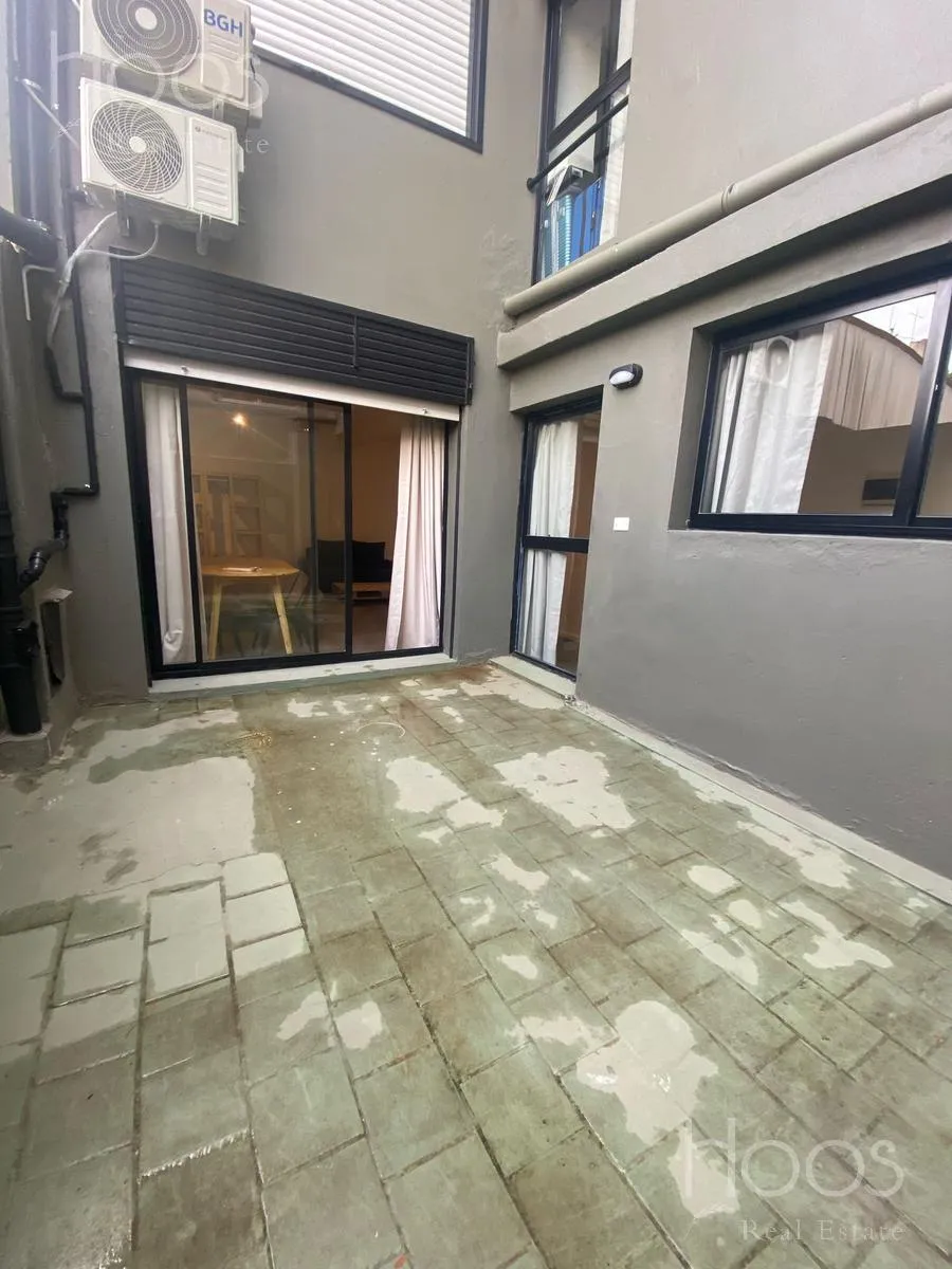 Brand new studio apartment in Barracas, fully refurbished and fitted out, with patio. Furnished. Integrated kitchen with cooktop (anafe) and under-counter fridge, plus microwave. Equipped with hot-and-cold air conditioning and has laundry in the building; building fees (expensas) are not charged.