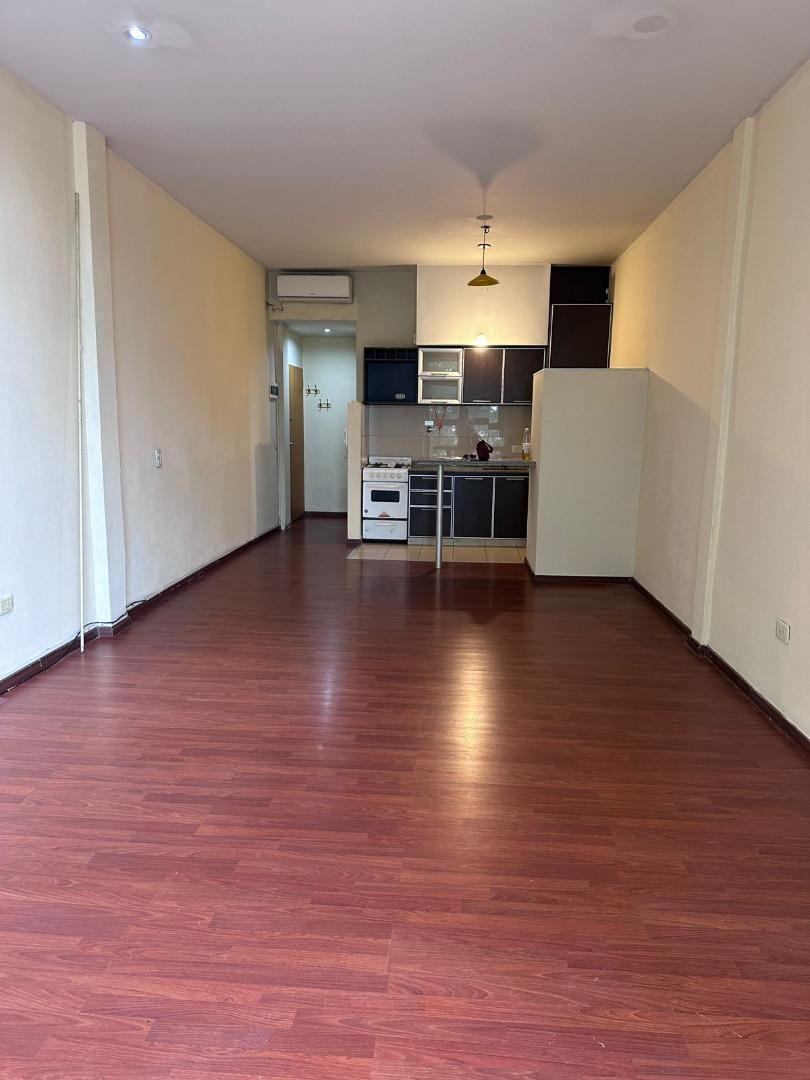 Studio apartment in Barracas with 42 m². The unit has an integrated kitchen and a full bathroom; the layout is described as divisible into a standard two-room configuration. Suitable for use as offices, consulting rooms, or a showroom. The listing states that advance payment and a deposit are required; building fees include taxes, and the building complies with CABA Law 5115 on reduced capacity.