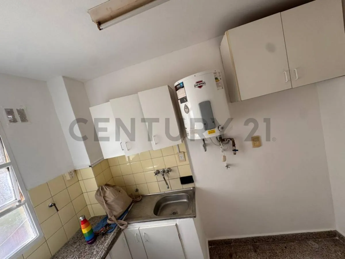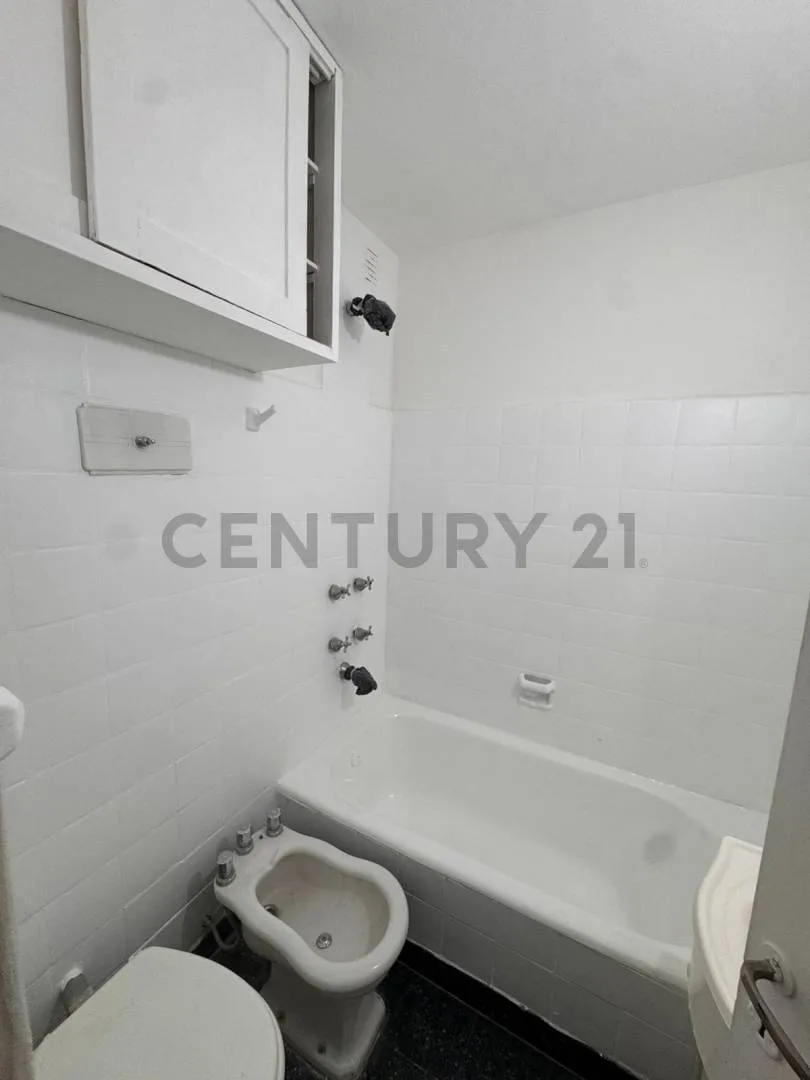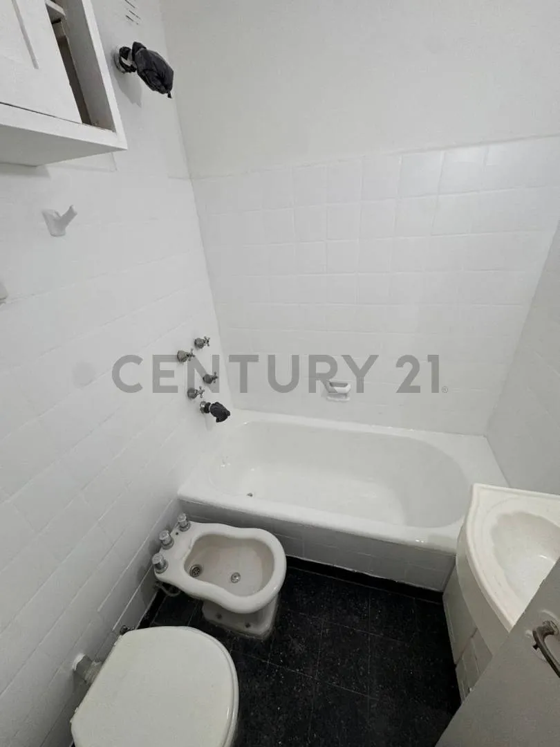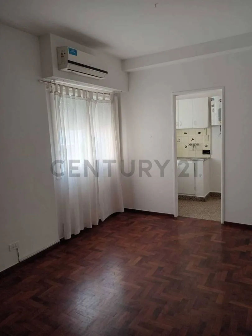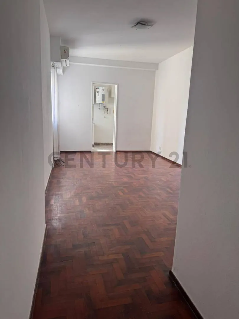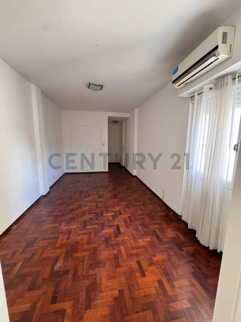 Studio apartment in Belgrano, on the 5th floor, courtyard-facing (contrafrente). Separate kitchen with space for a fridge and washing machine, storage furniture, natural gas and a full bathroom with bathtub and built-in storage. Electric water heater, wooden floors, a dining area with a closet and air conditioning; there is a window that provides natural light. Monthly rent is $600.000, with building fees of $160.000 including AYSA and ABL; electricity and gas are paid by the tenant. A rental gu