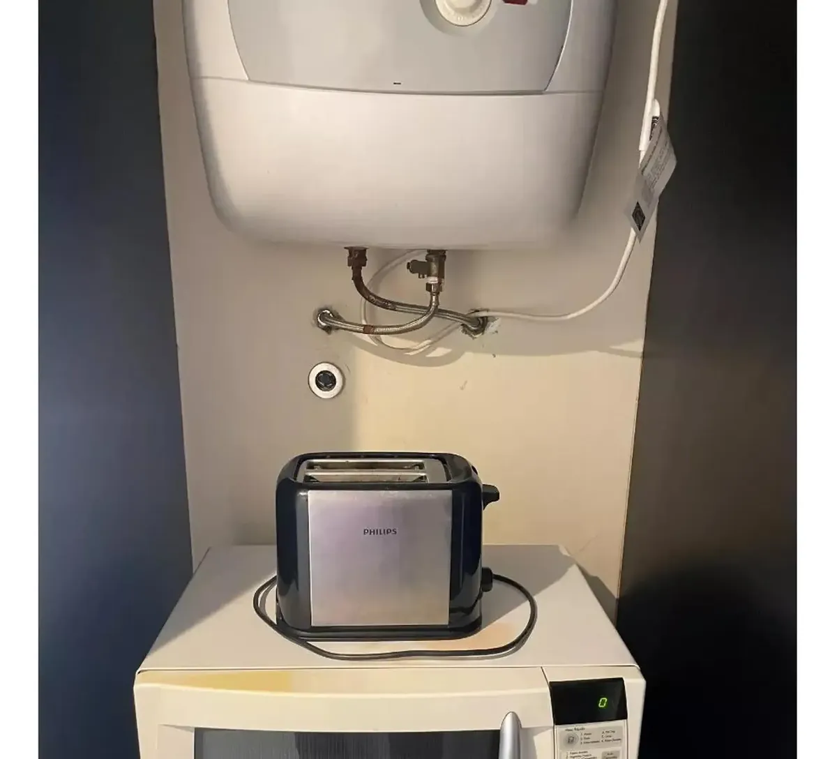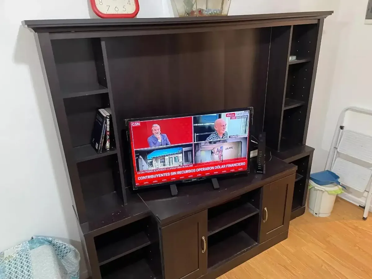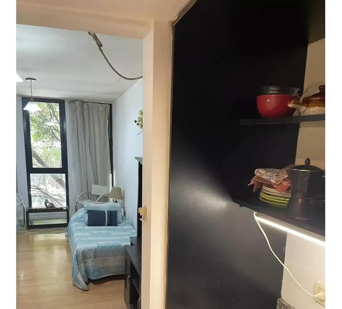 Front-facing studio apartment in Belgrano, furnished and equipped. The unit includes a living-dining area with 2 single beds with box-spring mattresses, built-in storage, an integrated kitchen with a small fridge and microwave, and a bathroom with a shower. Air conditioning (hot/cold), heating and a TV are available, while there is no washing machine connection and no laundry in the building. The building has a communal room (SUM). The monthly rent includes building fees, ABL and AYSA; the tenan