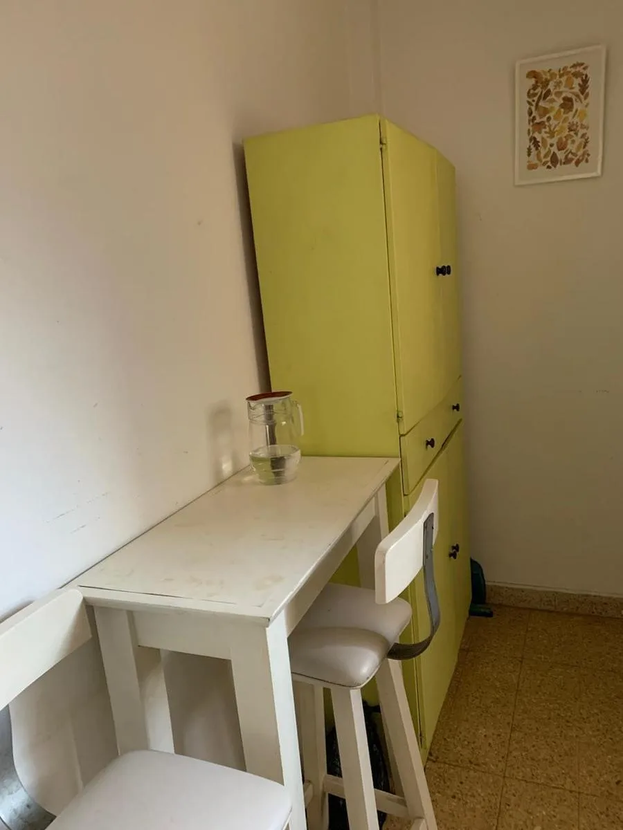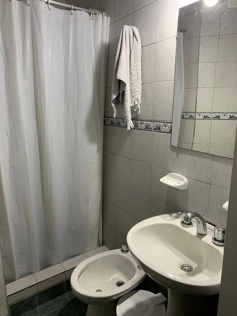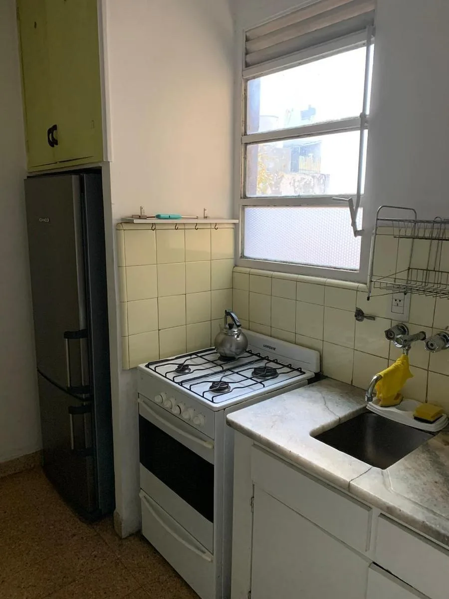 Studio apartment for rent in Belgrano, furnished and equipped. The unit has a main room with a dining area for 4, a double bed, built-in wardrobe and hot/cold air conditioning. There is an independent gas kitchen equipped with dinnerware, and a full bathroom with a shower. Rent is ARS 650,000 per month plus building fees of ARS 130,000, available from 30 April.