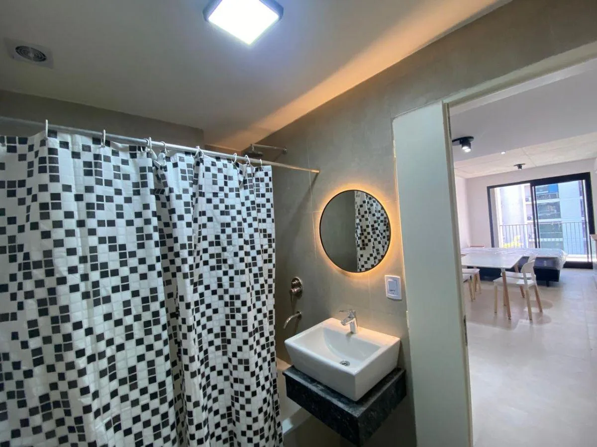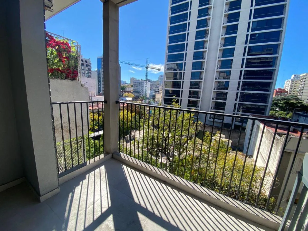 New studio apartment on the street front with a balcony, in Belgrano. Brand new and furnished, with central hot water. Split air-conditioning provides hot and cold air, and the kitchen has an electric cooktop (anafe) and an electric oven.