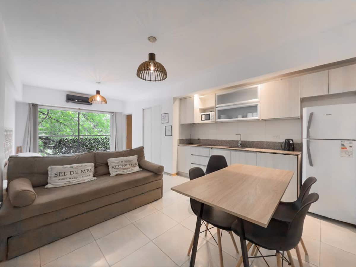 Furnished studio apartment in Belgrano for up to 4 people. It includes a double bed, a sofa bed, an integrated kitchen, and a full bathroom. Located near Av. Cabildo, Av. Libertador and Monroe, with access to train and subway services and nearby shops and dining.