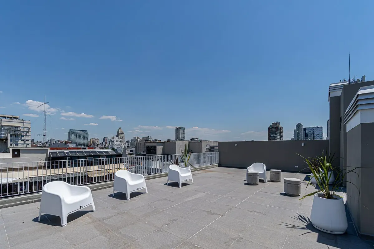 Front-facing studio apartment with access to a balcony. Semi-integrated kitchen with a breakfast bar and a full bathroom. Communal amenities include a SUM/communal coworking area, a flexible terrace with grills and a laundry room, and wheelchair accessibility. One block from Av. del Libertador, three blocks from Av. Congreso and four blocks from Av. Juramento in Belgrano.