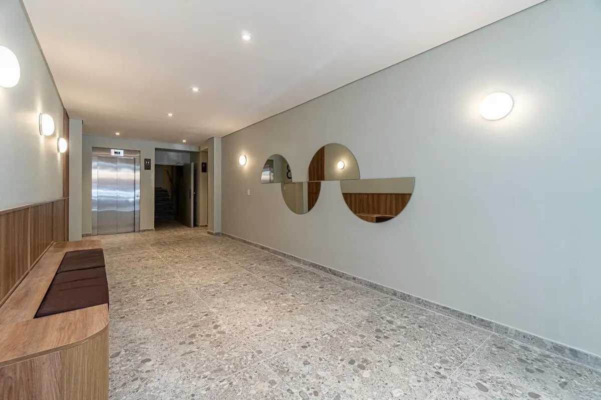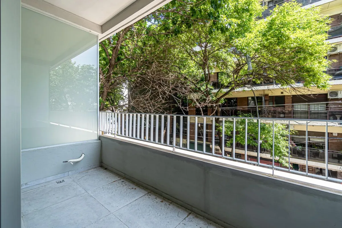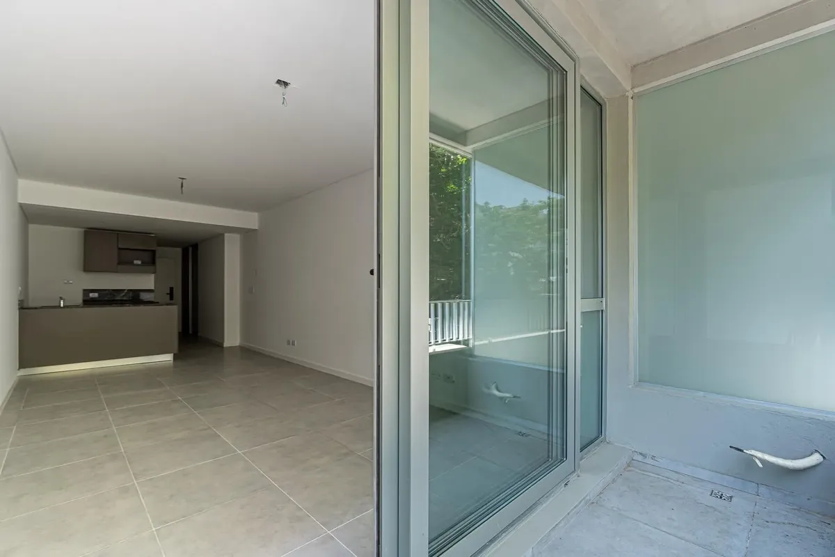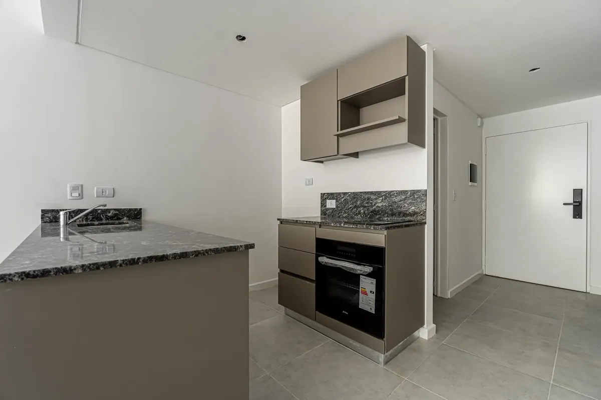 Studio apartment facing the street with access to a balcony. Semi-integrated kitchenette and a full bathroom. Building amenities include a communal room/residents' coworking area, a flexible terrace with grills and a laundry area, plus accessibility for people with reduced mobility. Located on Montañeses between Av. Monroe and Blanco Encalada, near Av. del Libertador.