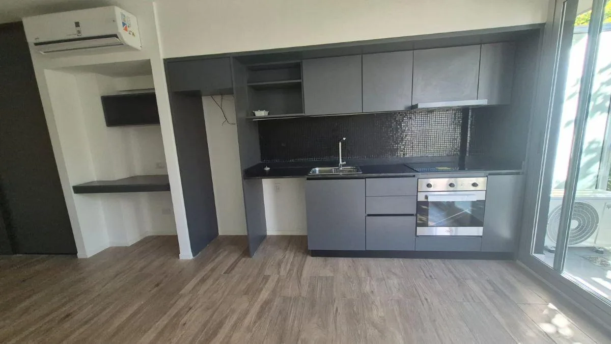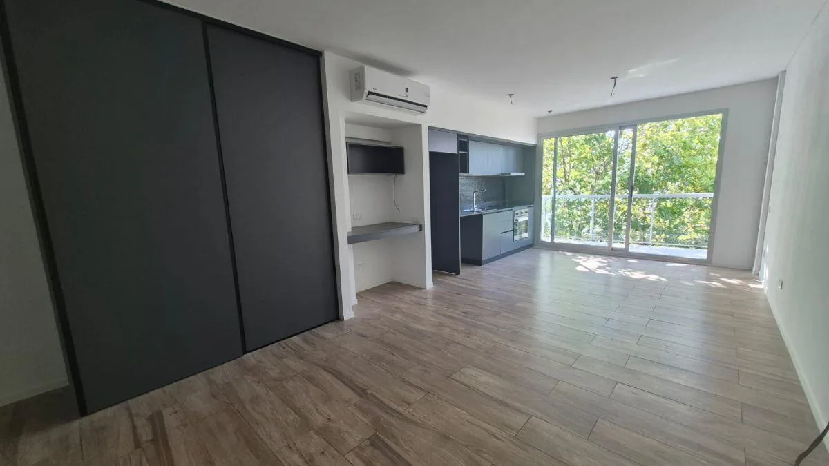 Brand new studio apartment on the 1st floor in Belgrano, street-facing with a balcony. Total area 48 m², 45 m² covered. Integrated kitchen with connection for a washing machine, floor-to-ceiling built-in wardrobe with interior fittings, electric hotplate and oven, and cold/warm air conditioning. Central water; building fees (expensas) are stated as $130,000 and do not include ABL or utilities (AYSA and ABL mentioned).