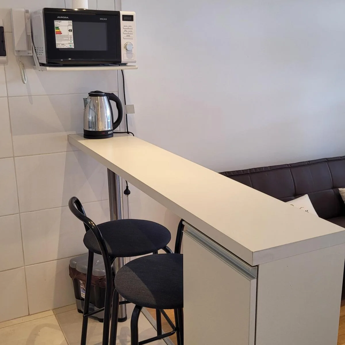 Premium studio apartment of 40 m² total on the 6th floor, street-facing with a balcony and east orientation. Available from May 2026 for a minimum term of 6 months, with renewal possible; maximum 2 people. Fully furnished with new, unused fittings including a new washing machine, fridge with freezer, gas cooktop with extractor, microwave, 32" smart TV, hot-and-cold air conditioning, radiant floor heating, WiFi and 5G signal. Building has a modern lift. Building fees are included in the rent.