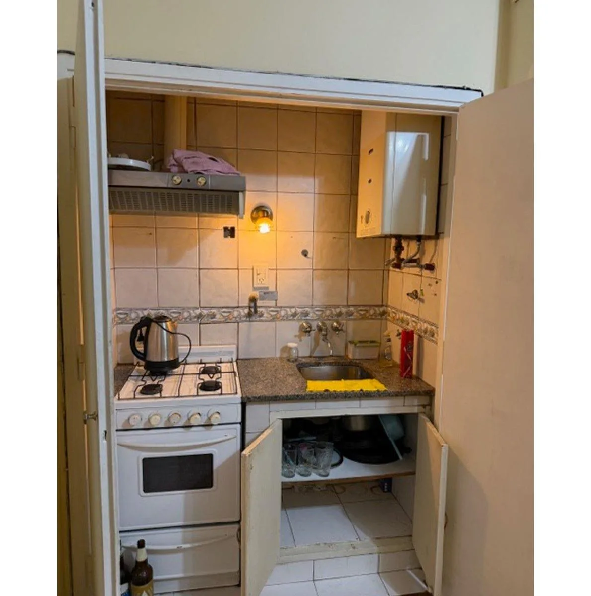 Studio apartment in Belgrano, a short distance from Cabildo and Subte D, estación José Hernández. Equipped unit with a kitchen and a full bathroom, plus built-in closets. Building staff lives on site.