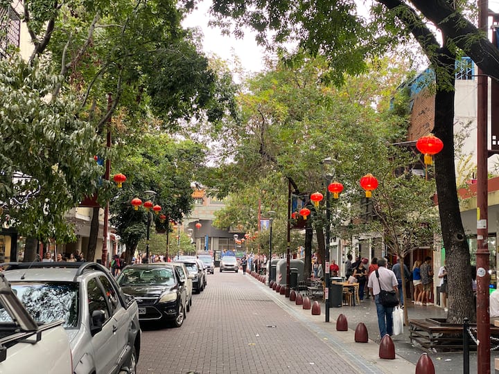 Studio apartment in Belgrano within Buenos Aires’ Chinatown area. Steps from Belgrano C train station, with several bus lines and a few blocks from the subway. The listing notes proximity to FLENI, the Cardiovascular Institute and River, as well as Obras Stadium and Palermo Woods.