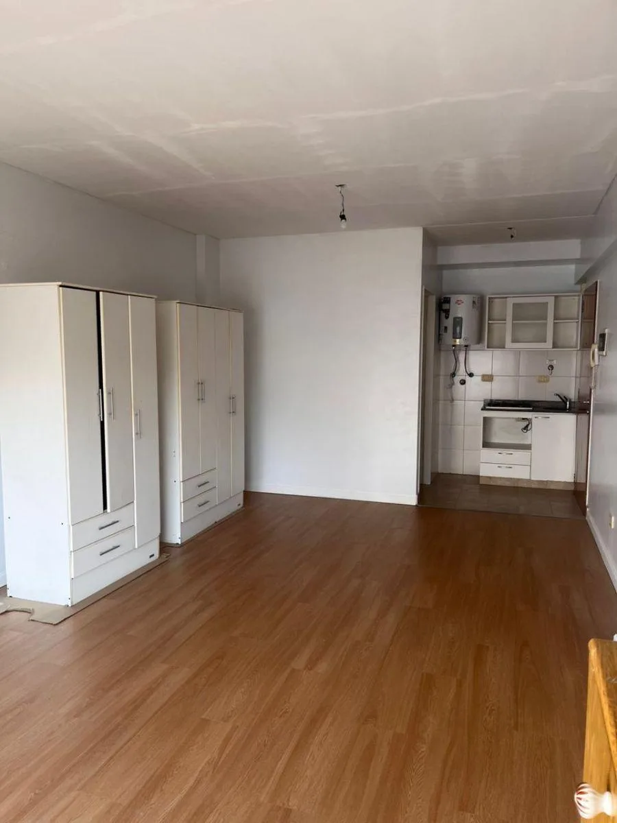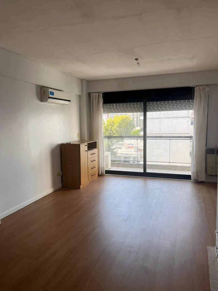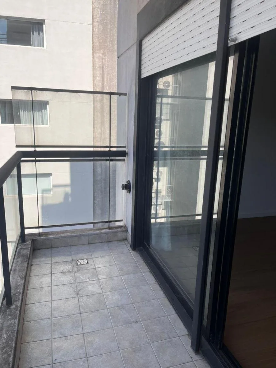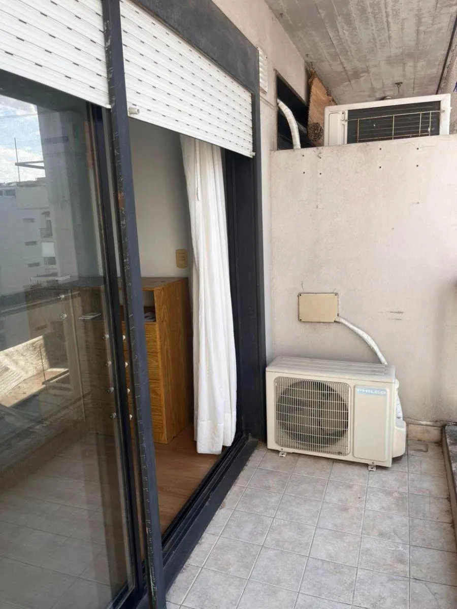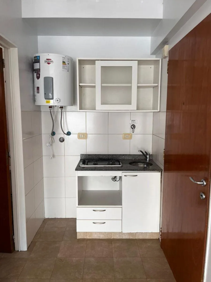 Studio apartment in Belgrano/Núñez in a modern building with a pool, laundry and a covered grill area. The unit has a gas hob and a gas heater, an electric water heater, a full bathroom, and a balcony facing an interior block courtyard. Building fees may change over time. The listing states it is three blocks from Cabildo and Monroe and near Subte D at the Metrobus and multiple bus lines.