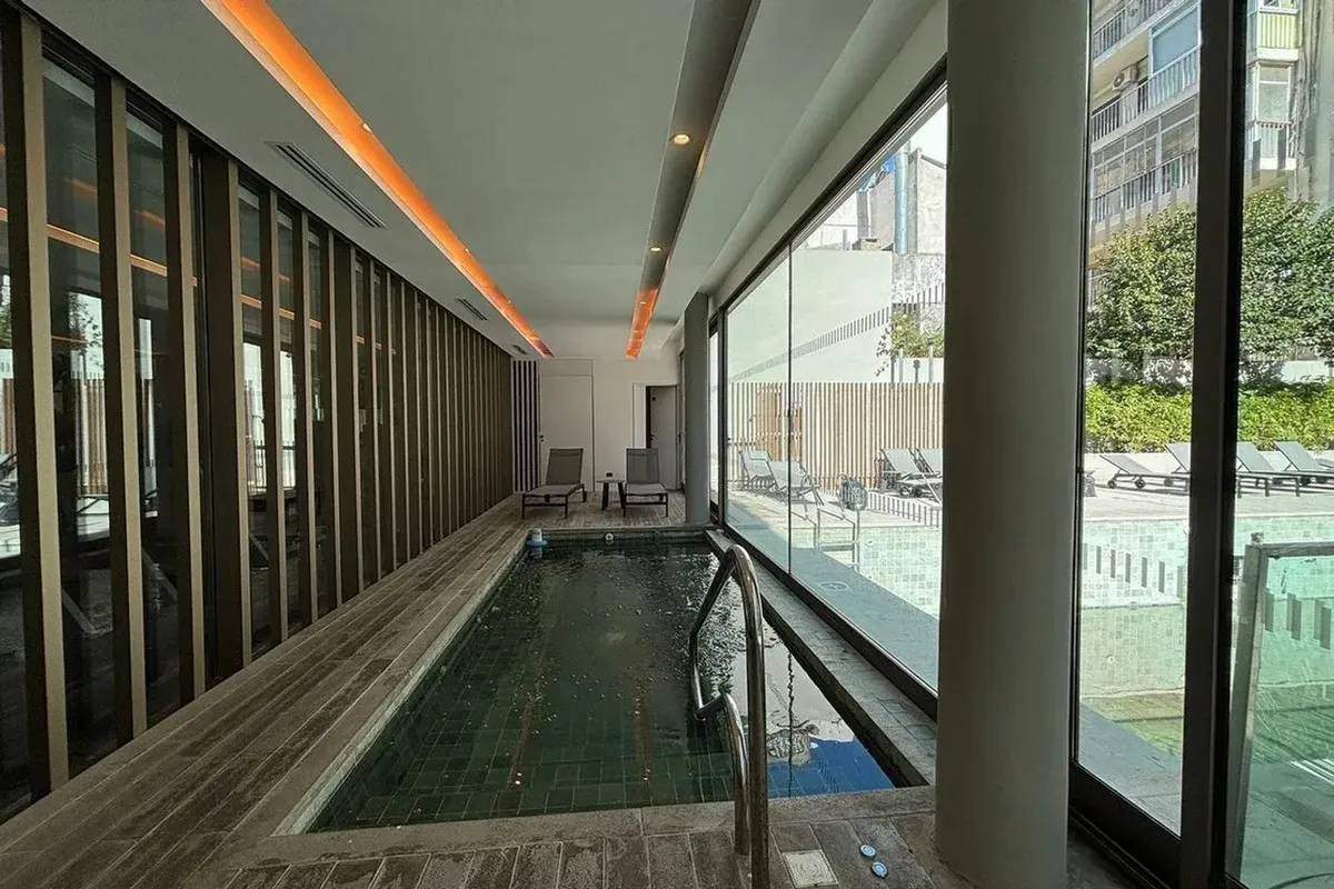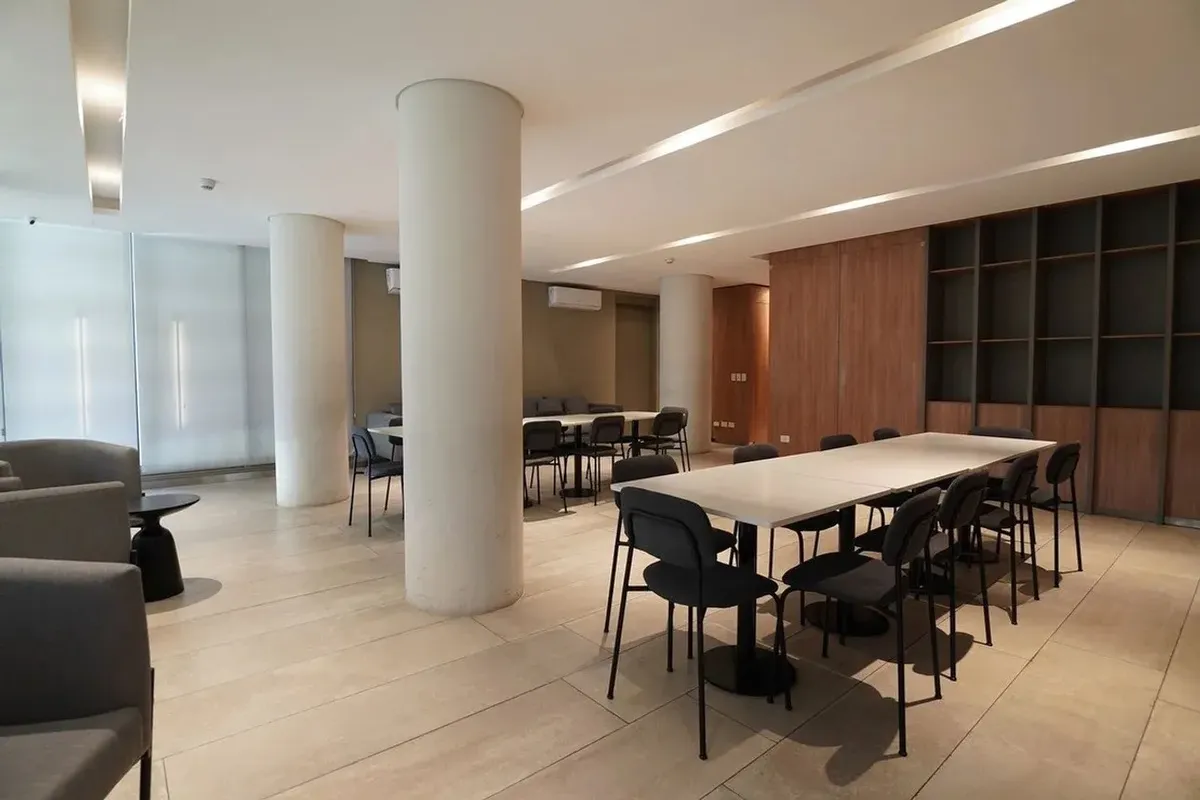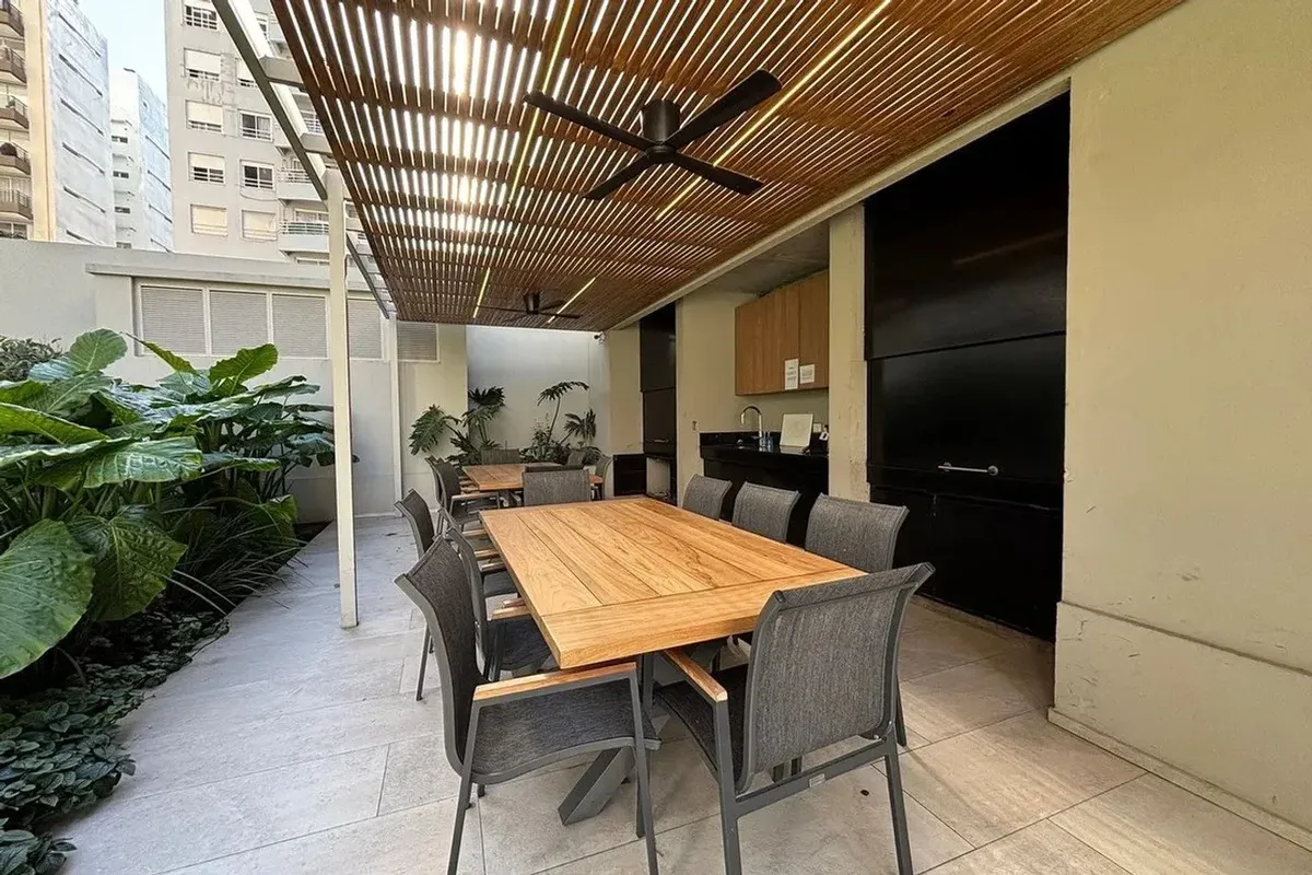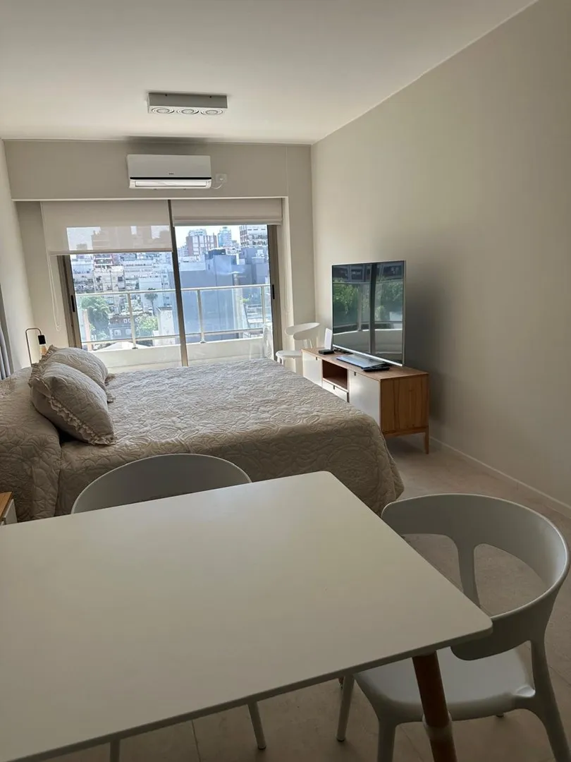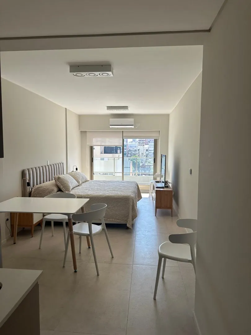 Furnished studio apartment in Belgrano, with a balcony facing the courtyard/inner block. The unit has an integrated kitchen and a full bathroom. The rental includes 24-hour security and access to a SUM with a meeting room, BBQ area, swimming pool with both covered and uncovered sections, gym, shared garden, solarium, laundry and playroom/kids club. Rent is USD 700, plus building fees and utilities; building fees are listed at AR$199,000 approx. (January 2026).