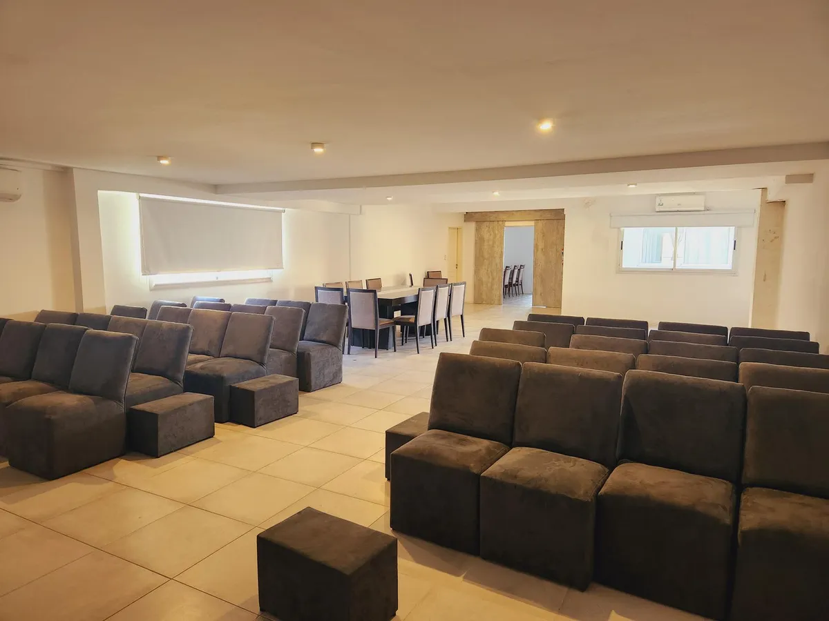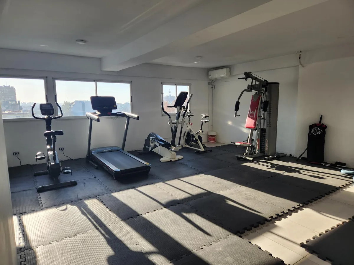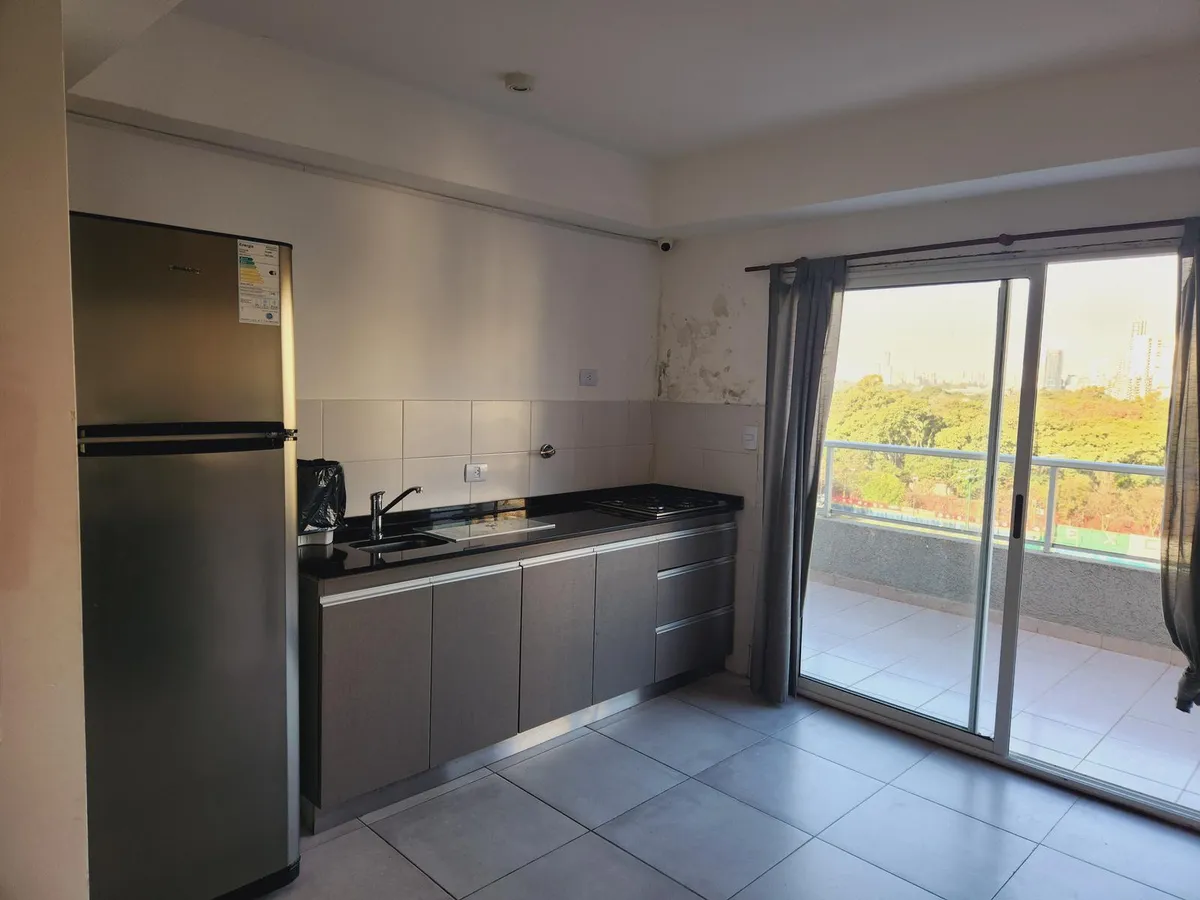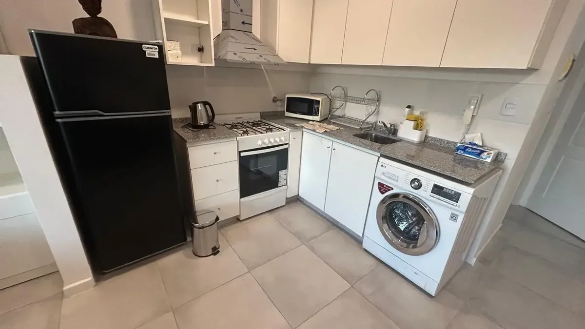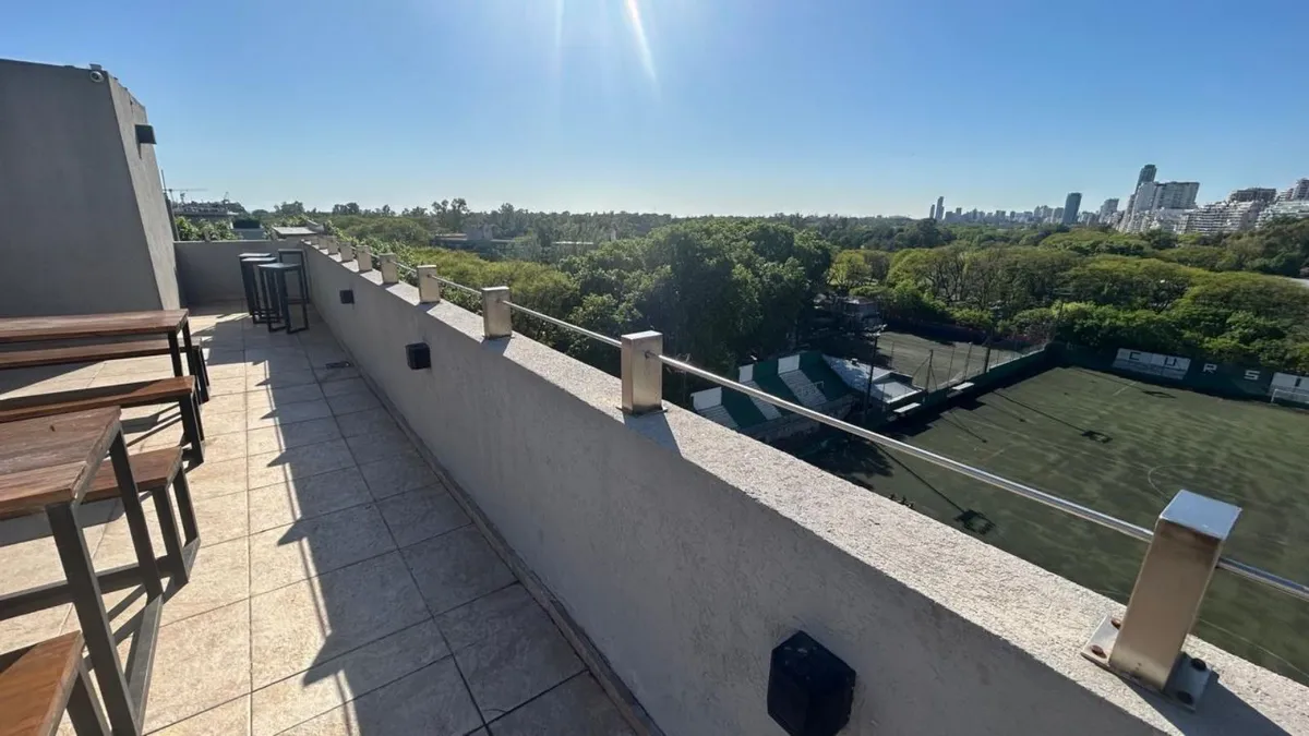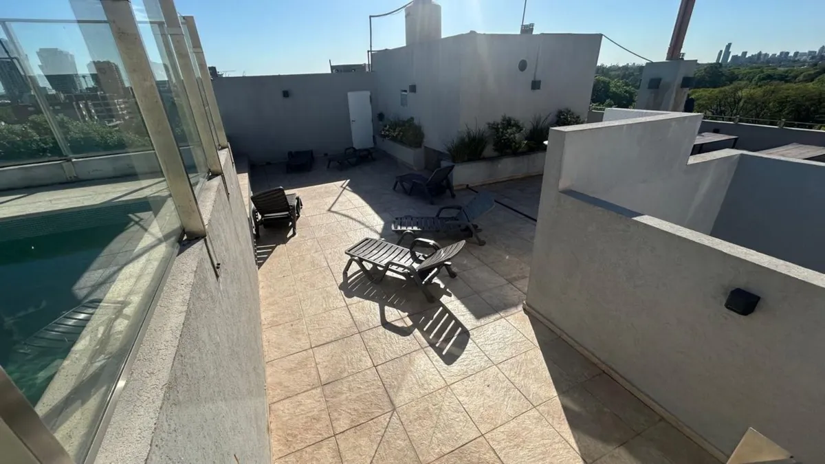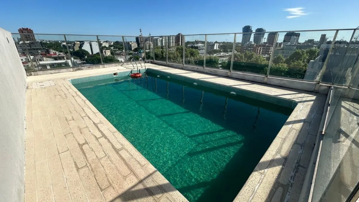 Studio apartment for temporary rent in Belgrano, Buenos Aires. The unit includes a balcony and has air conditioning and free WiFi. Building amenities include an outdoor pool and 24-hour reception. Available from March; minimum stay of 3 months with a deposit for the month and an additional real-estate commission.