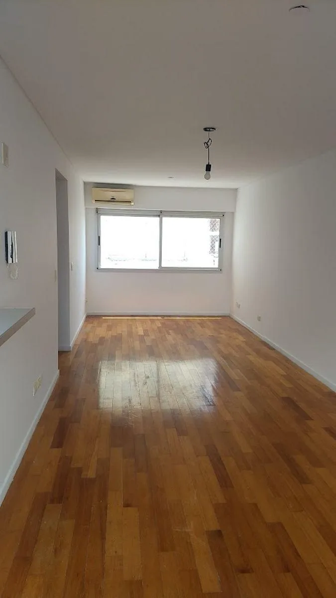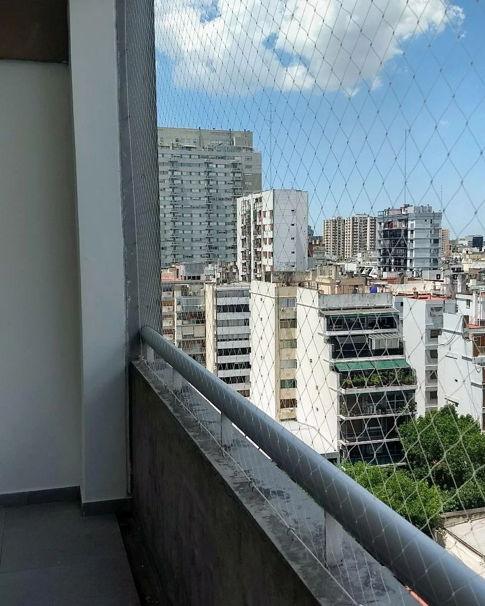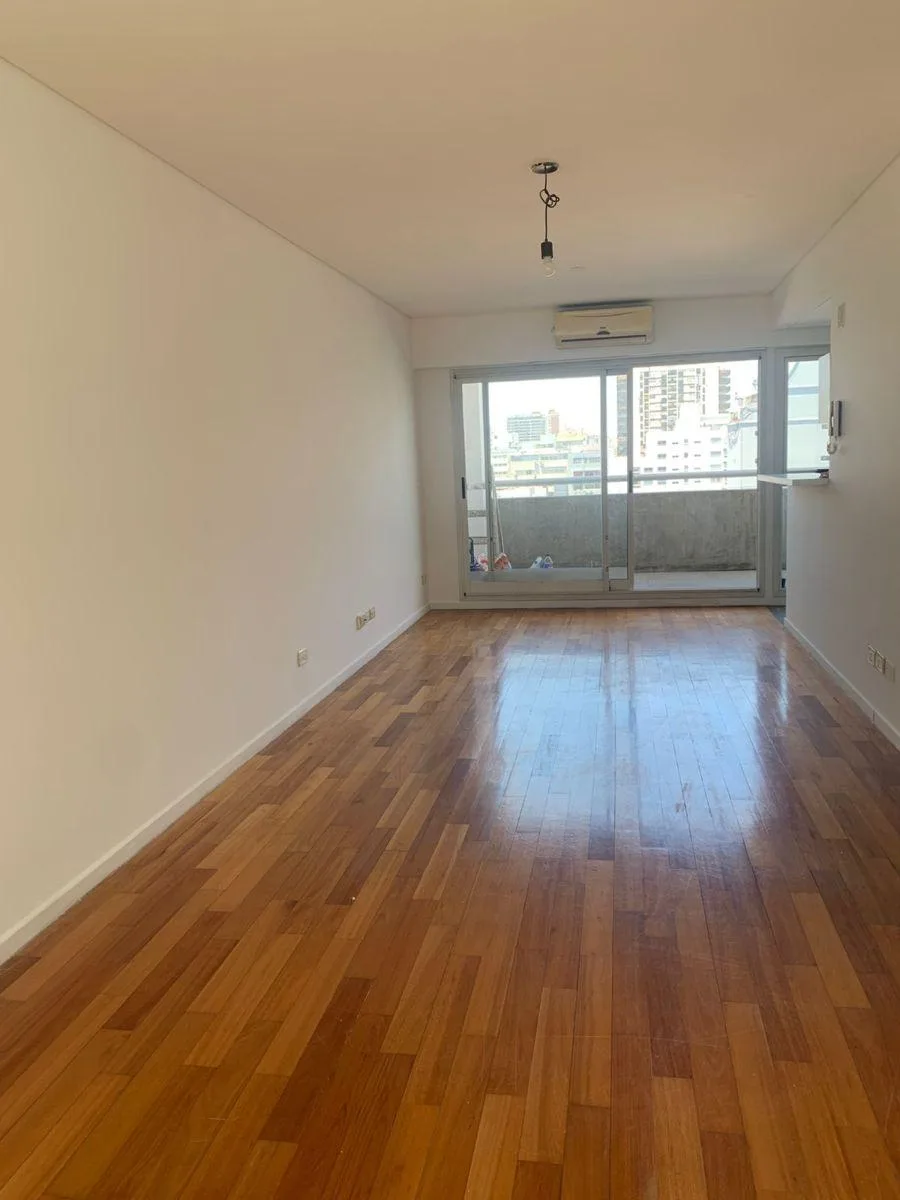 Divisible one-room apartment (studio) on the courtyard-facing side with a broad balcony with protective screen. It has 2 air-conditioning units, a full bathroom, a kitchen, and a storage room (baulera); the unit has been recently painted white. The building is 12 years old and includes a pool, residents' lounge (SUM), laundry facilities, and 2 lifts, with a security totem; it is near Av. Cabildo and close to Congreso de Tucumán station (Subte Línea D). Building fees are not specified.