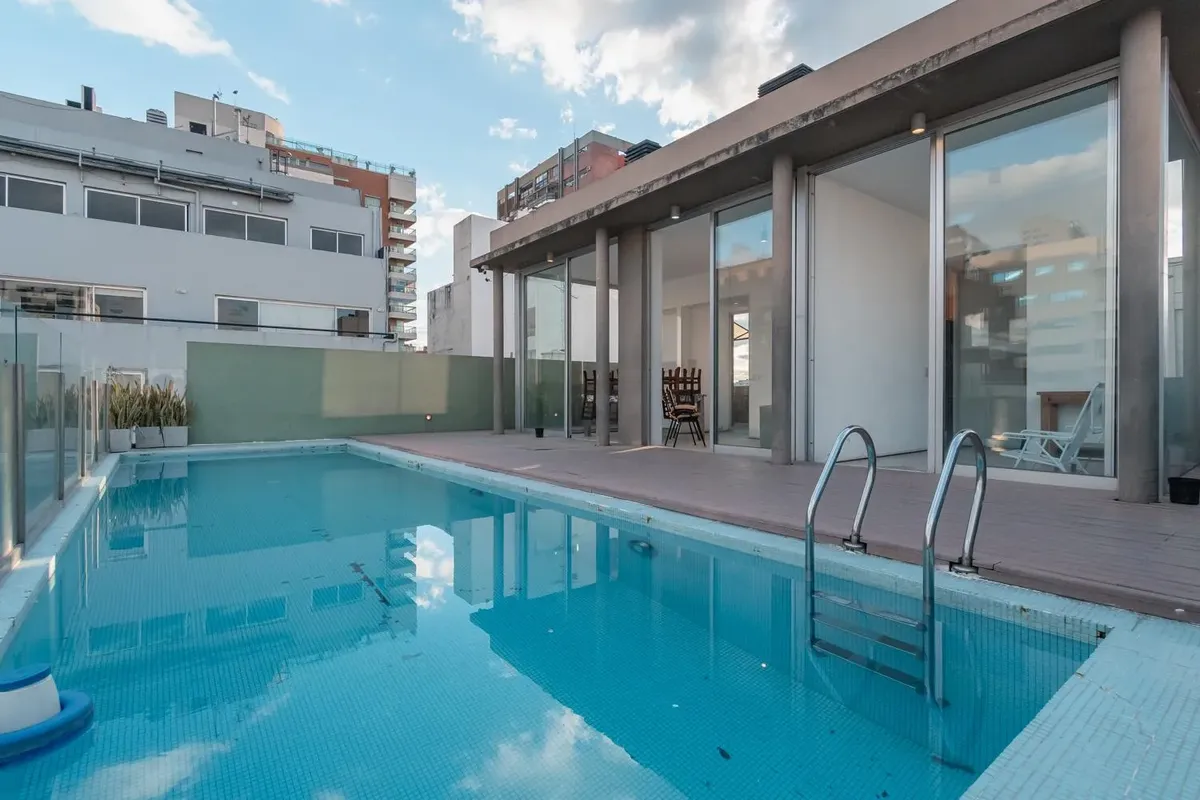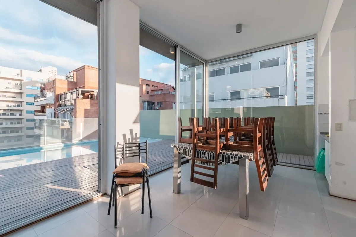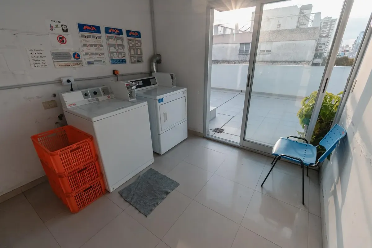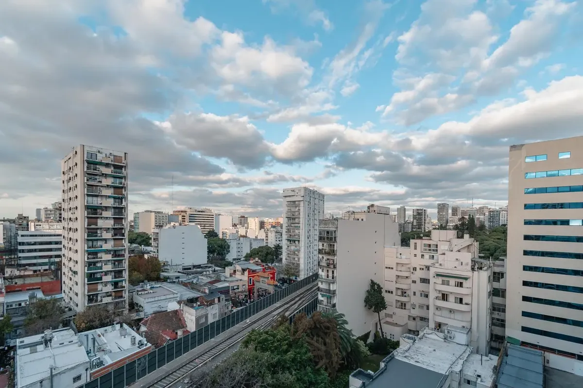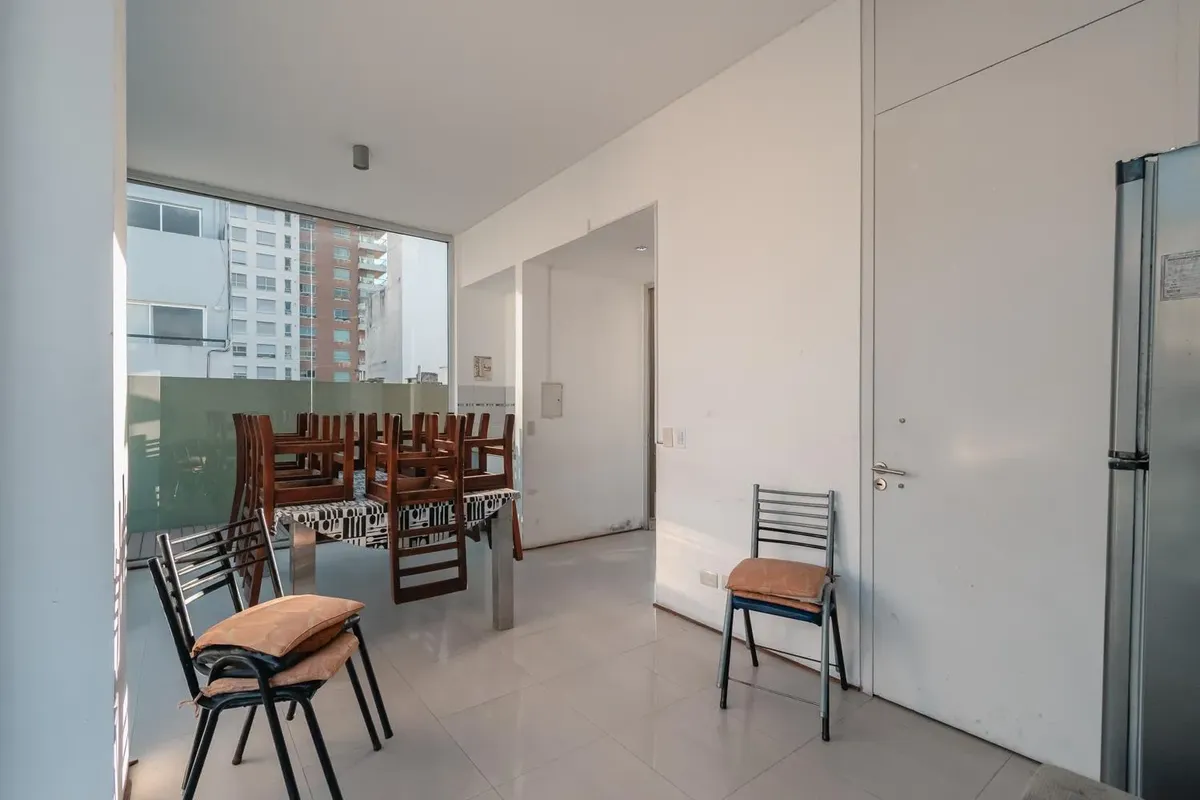 Fully equipped studio apartment in Belgrano. The living area has direct access to a private patio, with a kitchenette with electric hotplates and oven and cabinets below and above the countertop. The bathroom has been newly renovated with a shower. (Assigned) covered parking space in the basement. Building amenities include laundry, communal room, grill, solarium and pool.