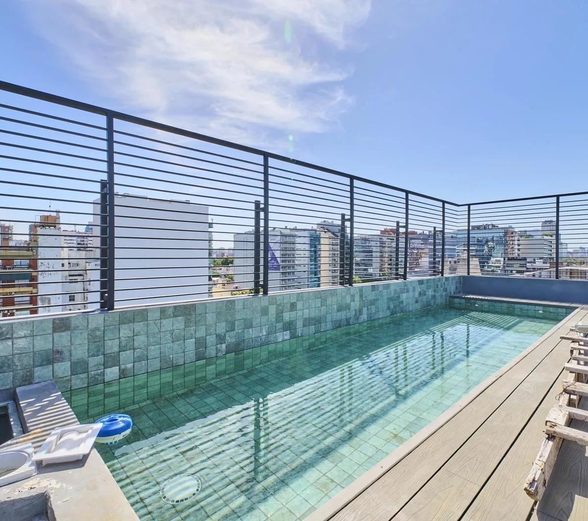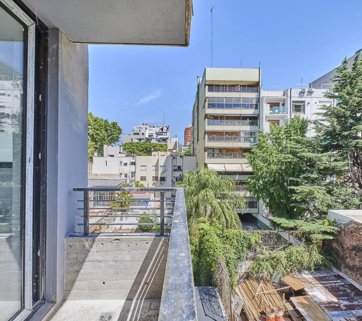 Studio apartment on the 8th floor, courtyard-facing, delivered in March 2026. Units are fully equipped with a complete kitchen, built-in wardrobes with interior fittings, installed and operating air conditioning, and electric floor heating, plus a digital door lock. The building has 6 basement parking spaces, 9 habitable floors, a rooftop terrace with uncovered grills and a pool, a solarium, a communal co-work space, and an on-site generator. One block from Av. Juramento and Av. Del Libertador,