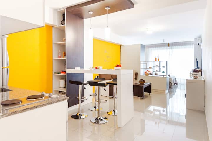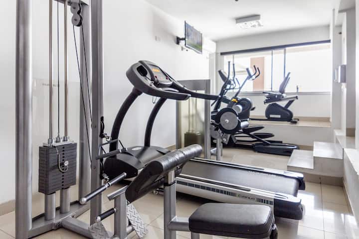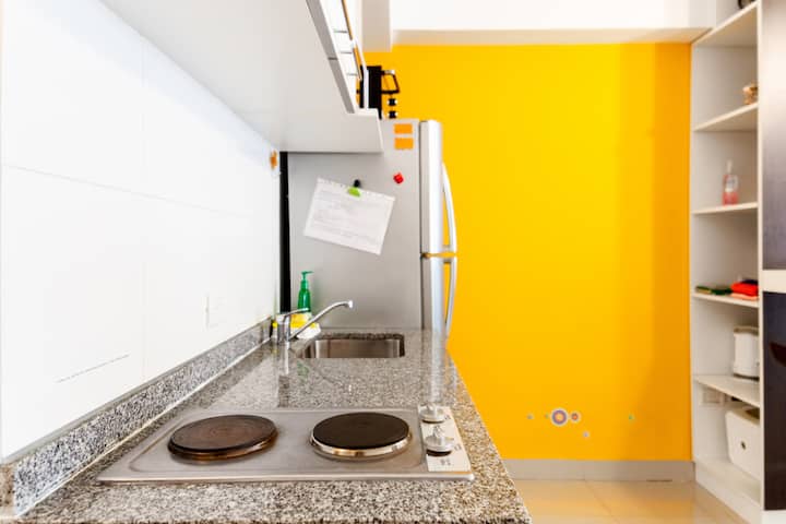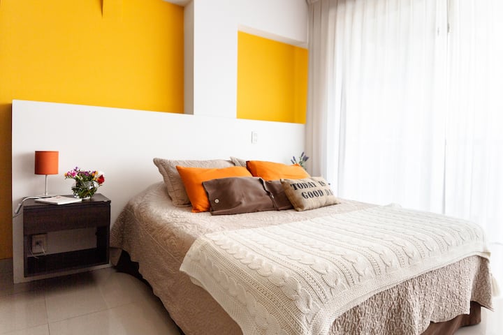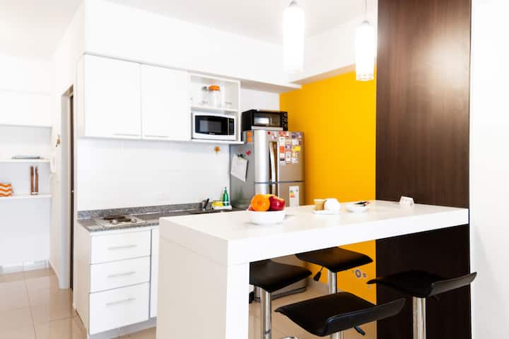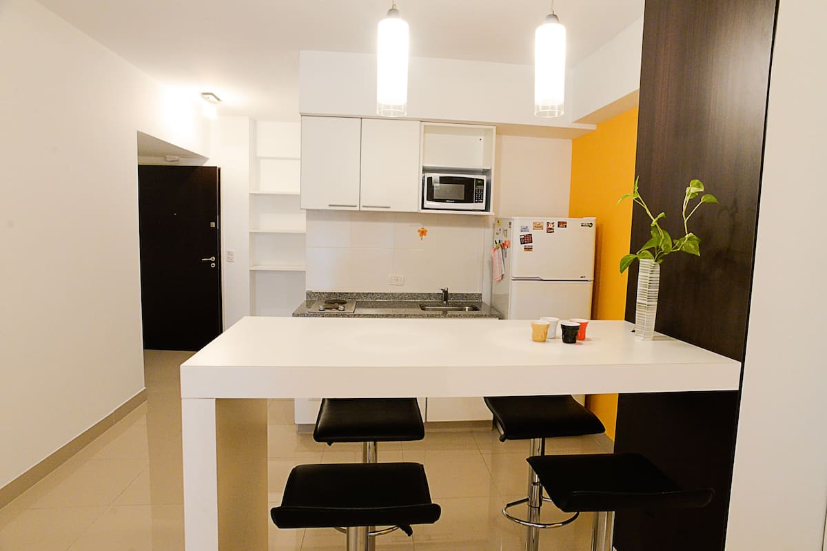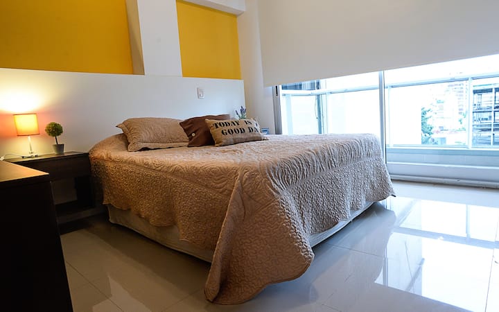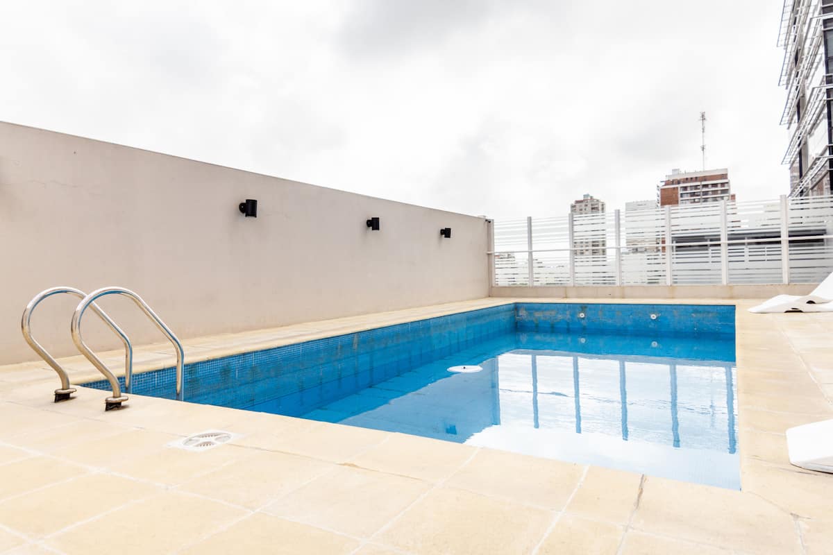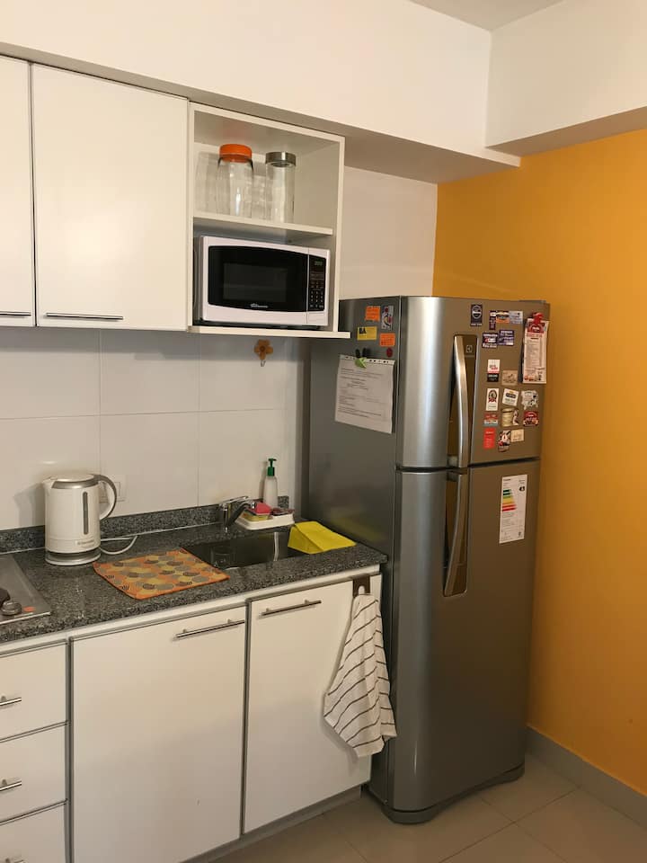 Studio apartment with an abundance of natural light in Belgrano. Completely furnished and equipped. The building has a pool, a gym with machines on the 10th floor, and 24-hour security. A 2-hour weekly cleaning service is included in the price for stays of 1 week or more.