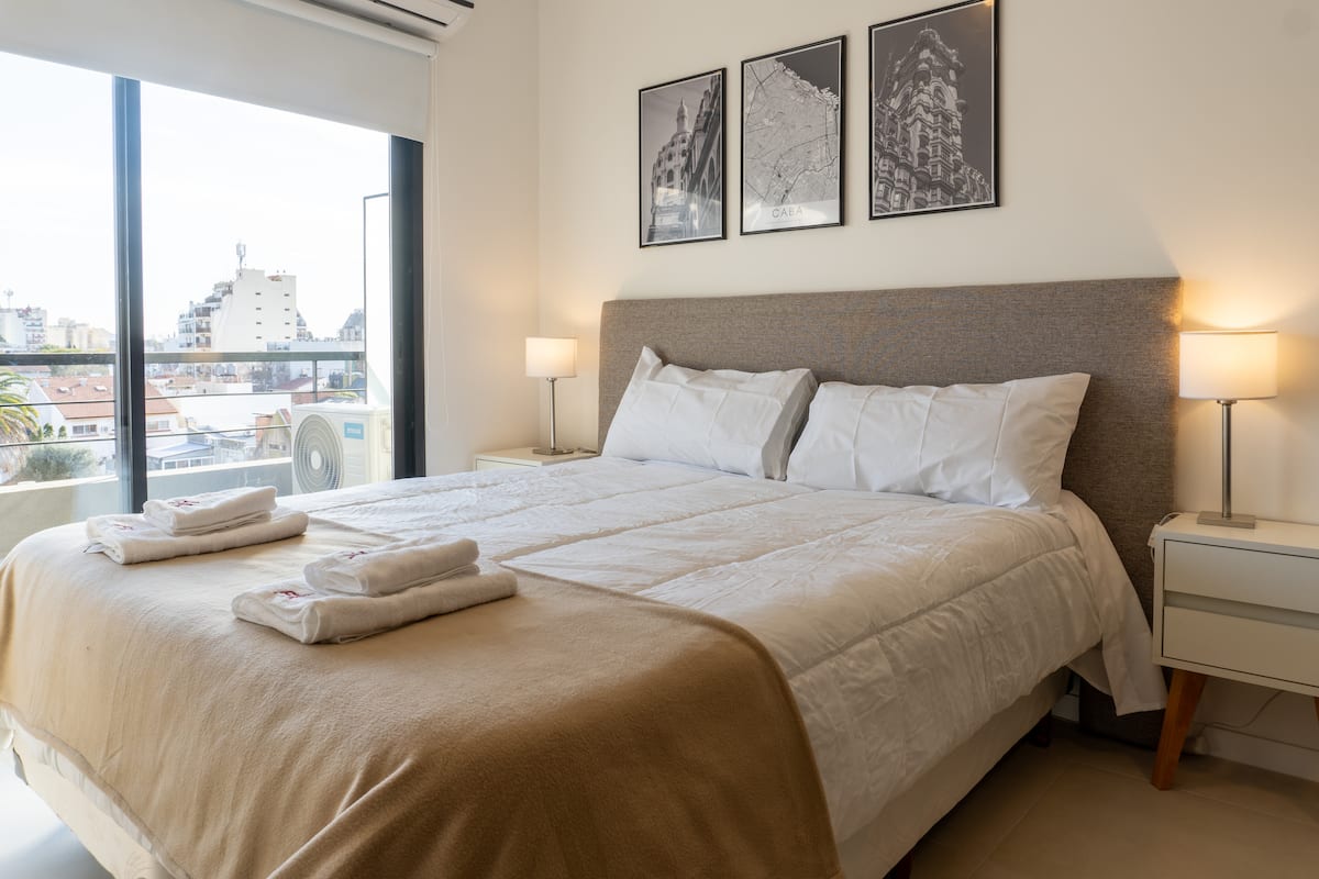 Studio apartment with a balcony in Belgrano. The kitchen includes an oven and microwave, along with a coffee maker. It has a washing machine and a smart TV, plus free WiFi and an electronic lock. The building has a residents’ SUM with a pool, ping pong tables, metegol, exercise machines and a grill, available 11:00 to 18:00 with an access code requested in advance.