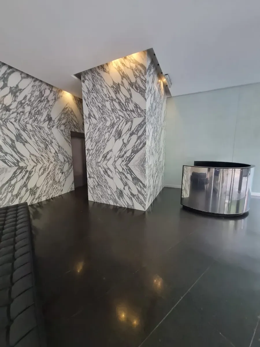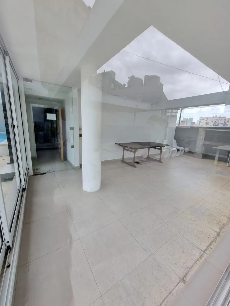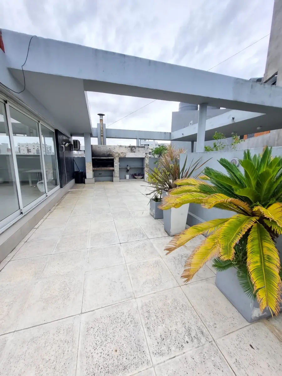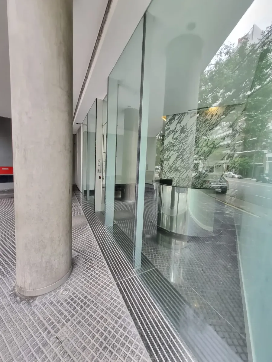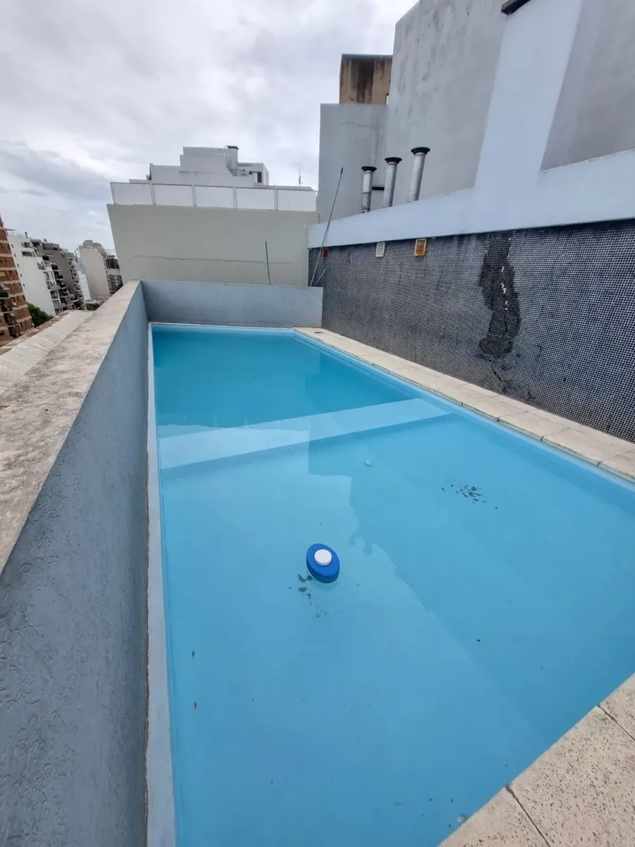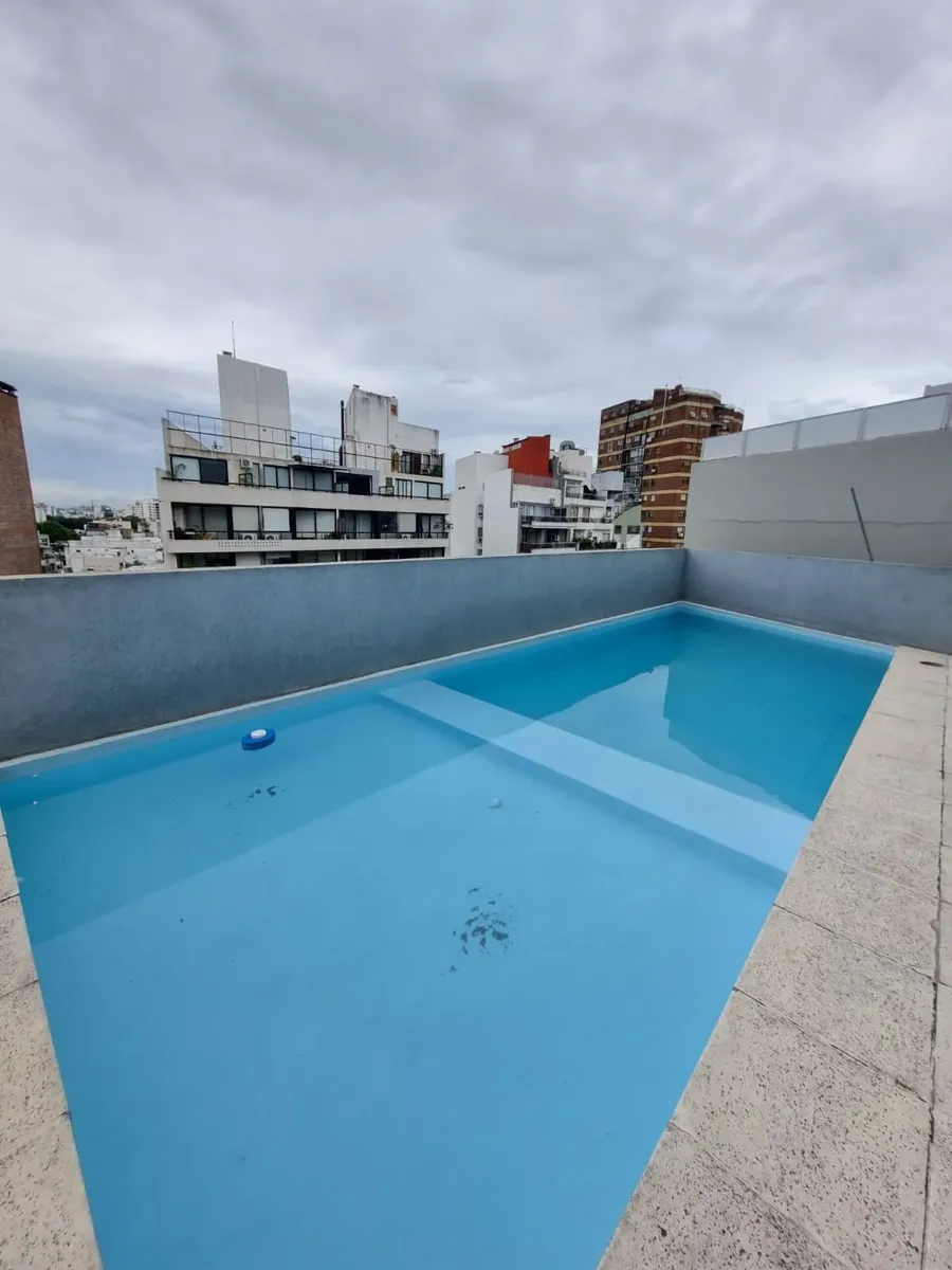 Studio apartment with a long balcony, courtyard-facing (contrafrente). Located in Belgrano and includes all building amenities.