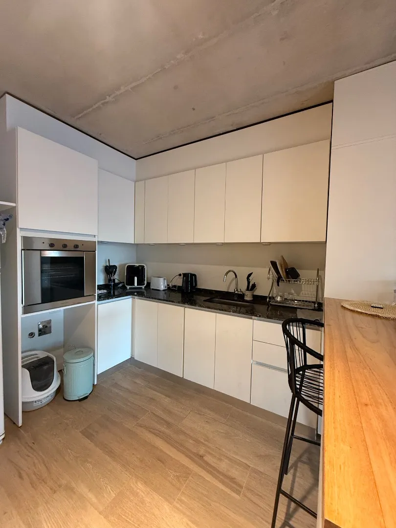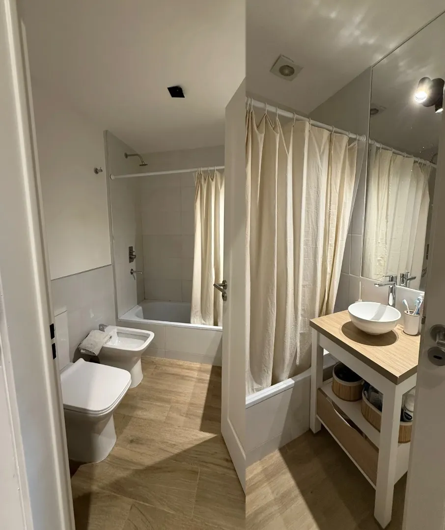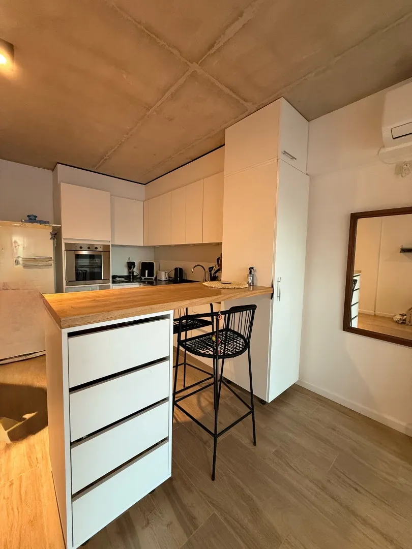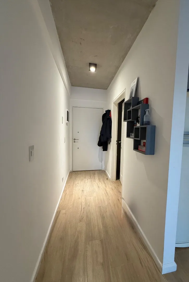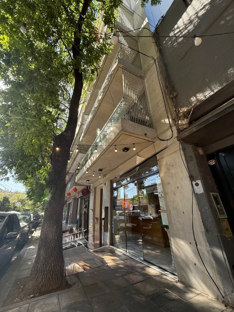 Studio apartment with a terrace-style balcony and a private grill in Barrio Chino, Belgrano. The unit is located on Montañeses street and is in excellent condition, 18 months old. It has an all-electric integrated kitchen, a full bathroom with bathtub, and a Murphy bed integrated with the main room; there is also a fitted bar and space in the basement for a bicycle. The building includes a shared terrace with a rest area, outdoor shower, and communal grill and meeting area. Available from 1/05;
