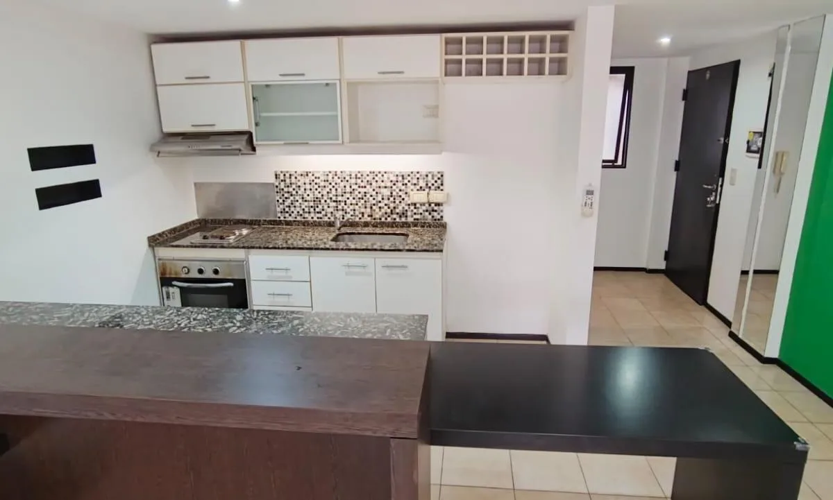 Studio apartment on the 2nd floor, courtyard-facing. It has a kitchenette with an electric oven and a breakfast bar with a dining table with an extendable top. Air conditioning (cooling and heating) is included, along with a sliding grille on the balcony door, a private grill on the terrace, and an additional balcony terrace area.