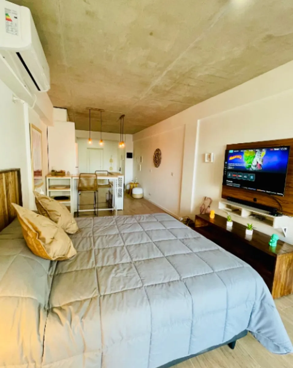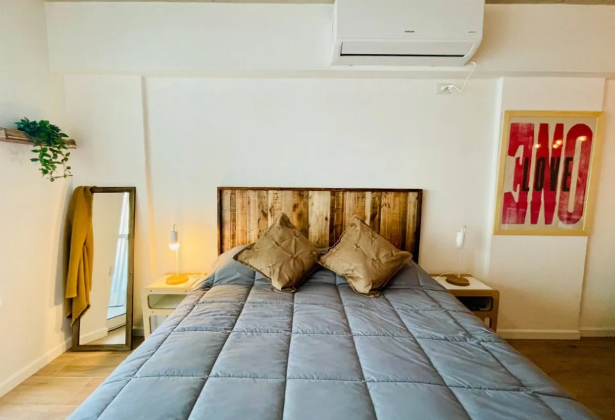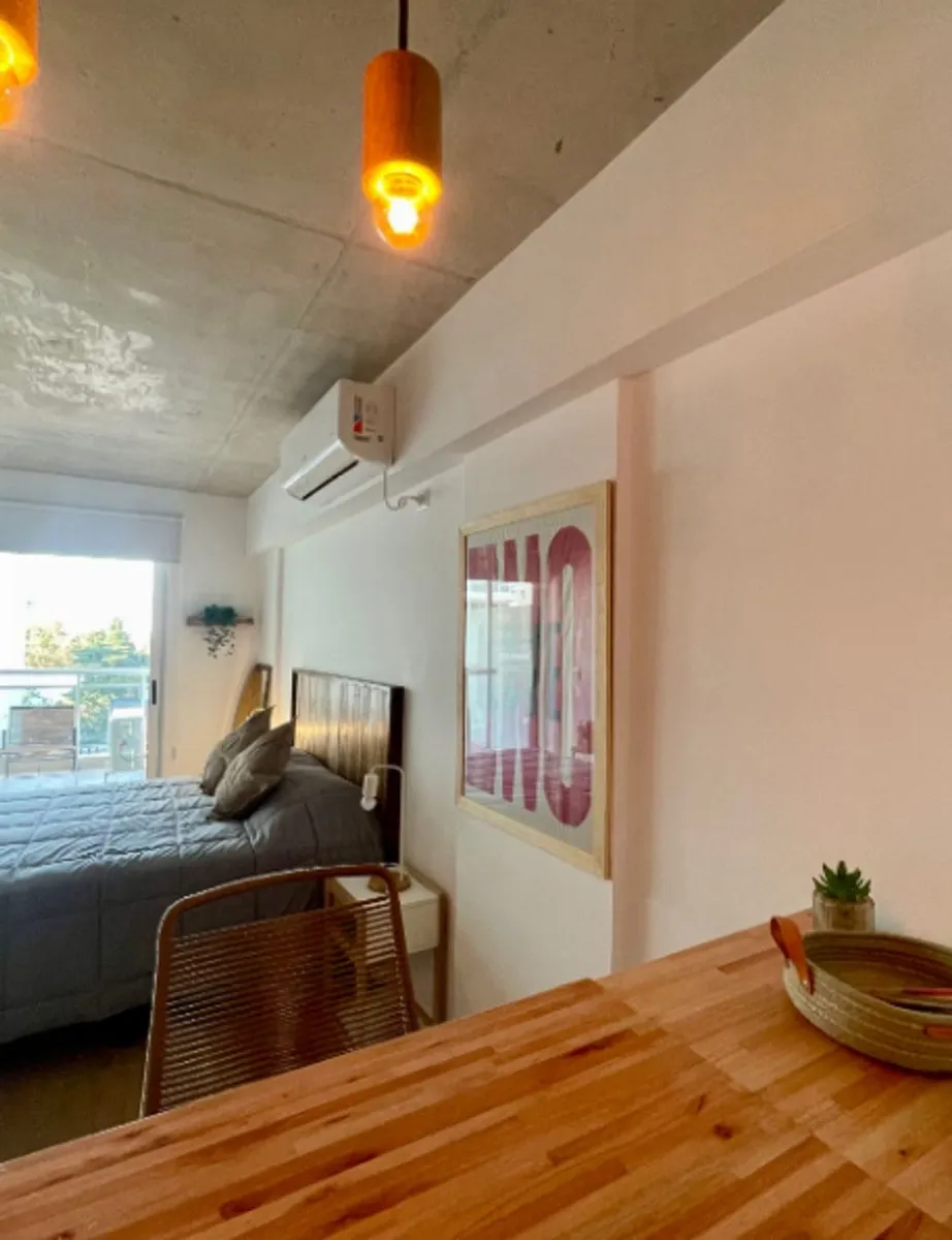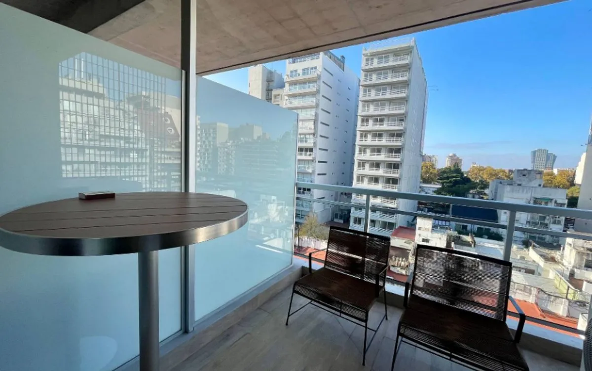 Studio apartment in Belgrano with a balcony terrace. Includes a queen-size bed, a full bathroom and a fully equipped kitchen with oven, fridge and tableware. Air conditioning (hot/cold), smart TV, cable TV and streaming platforms, high-speed Wi-Fi, Nespresso coffee machine, microwave and a washing machine. The building has a lift, security cameras, a communal terrace and a residents' lounge (SUM).