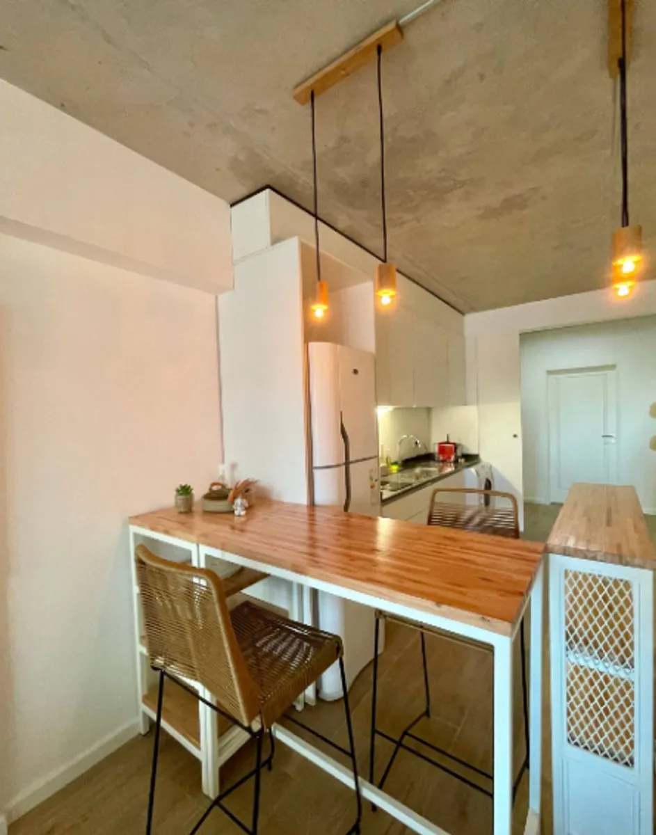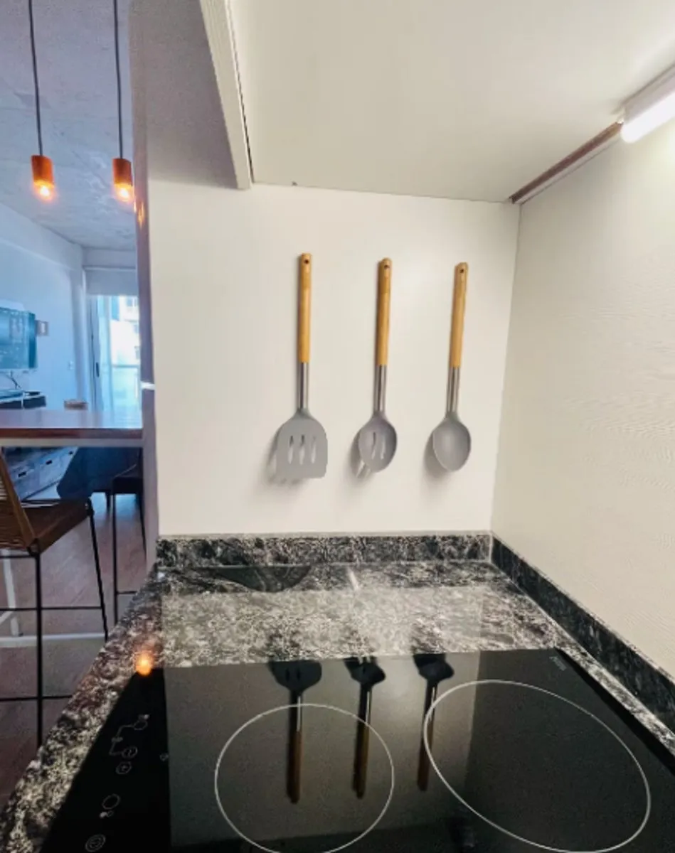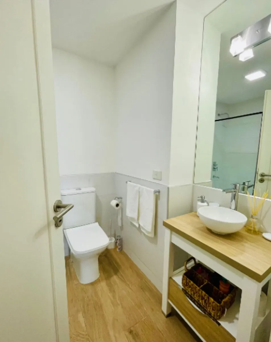 Studio apartment in Belgrano with a balcony terrace. Includes a queen-size bed, a full bathroom and a fully equipped kitchen with oven, fridge and tableware. Air conditioning (hot/cold), smart TV, cable TV and streaming platforms, high-speed Wi-Fi, Nespresso coffee machine, microwave and a washing machine. The building has a lift, security cameras, a communal terrace and a residents' lounge (SUM).