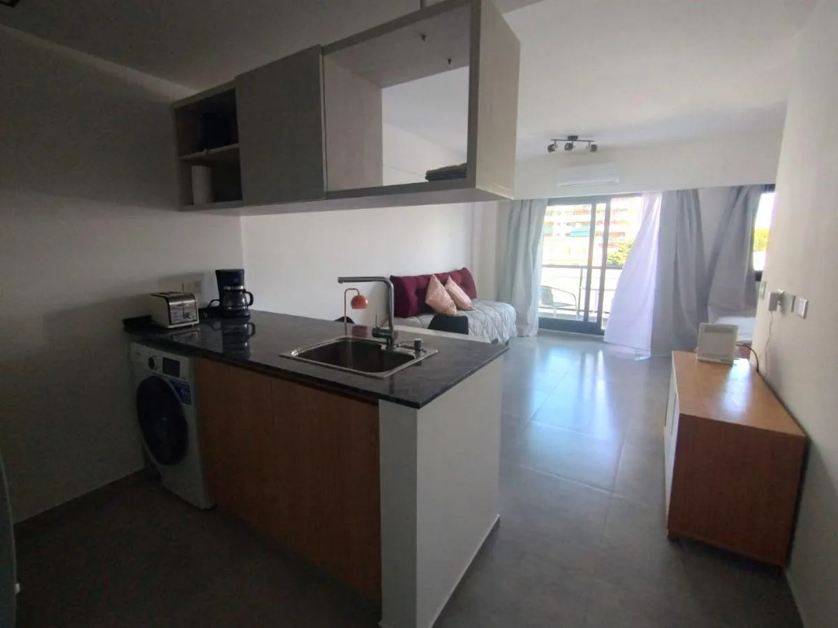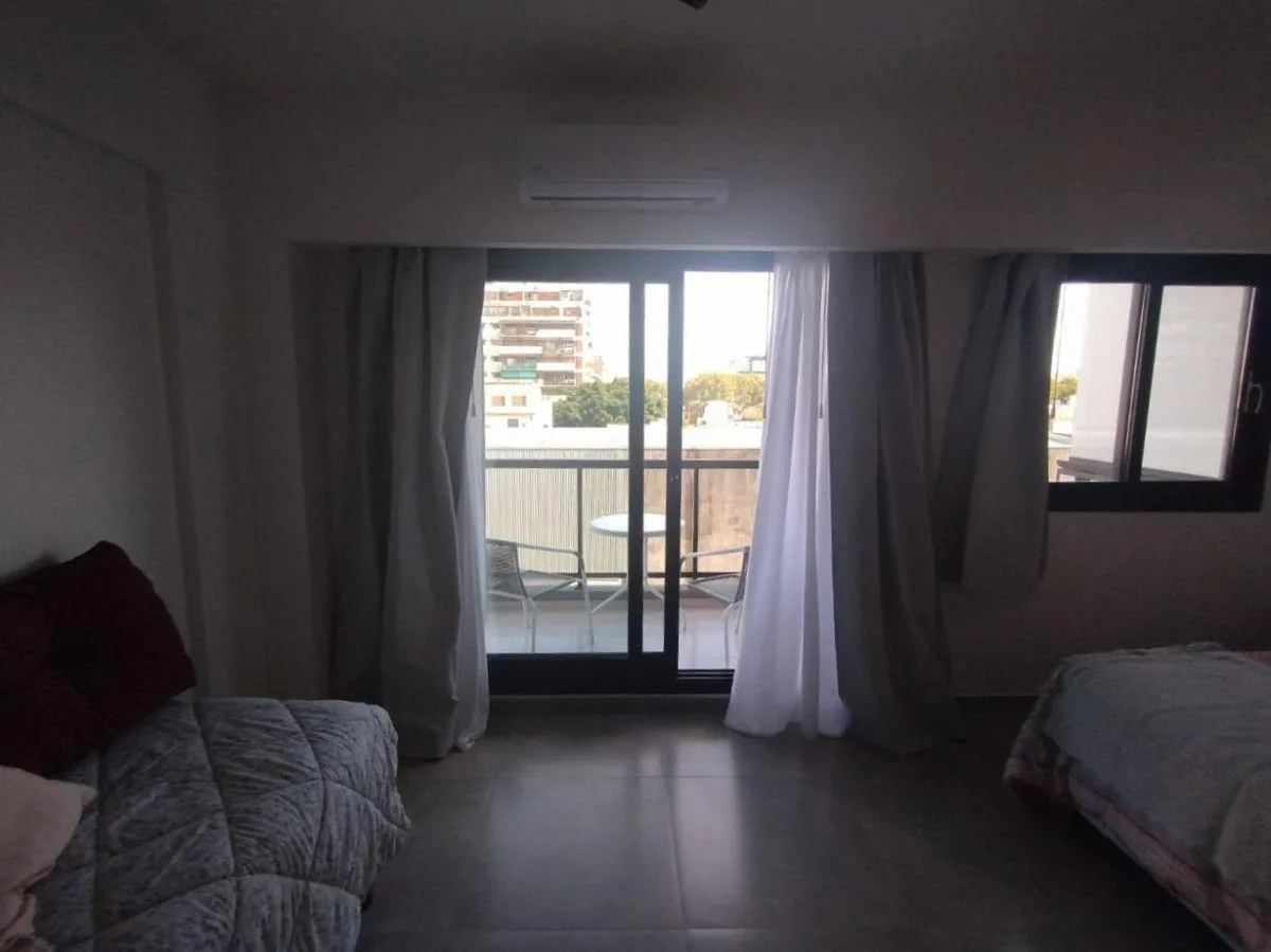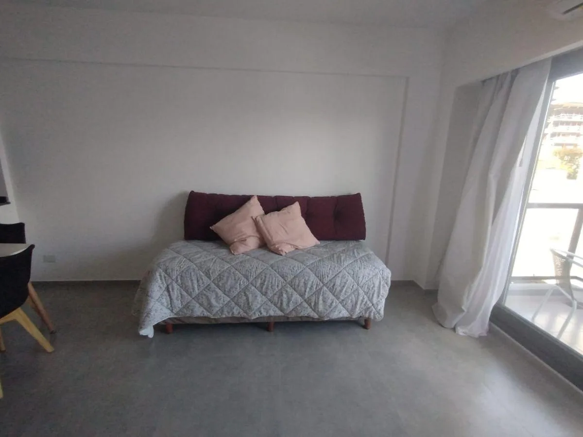 Studio apartment for short-term rental in Boedo, brand new. It has a full bathroom with bathtub and extractor, a kitchen with stove, washing machine, microwave, toaster, electric kettle, refrigerator and tableware, and air conditioning. Double-glazed windows and black-out curtains are installed; the unit includes a sofa bed and a sommier, plus a balcony with open views. The building has 2 large elevators, electronic key access, an electric generator during power cuts, and an intercom with camera