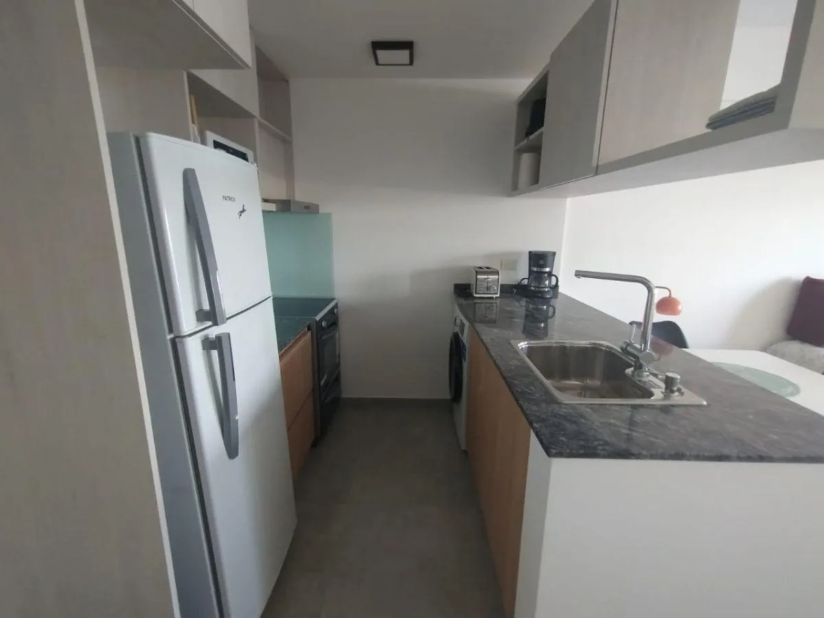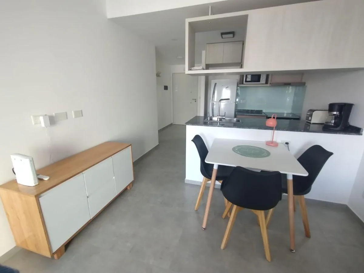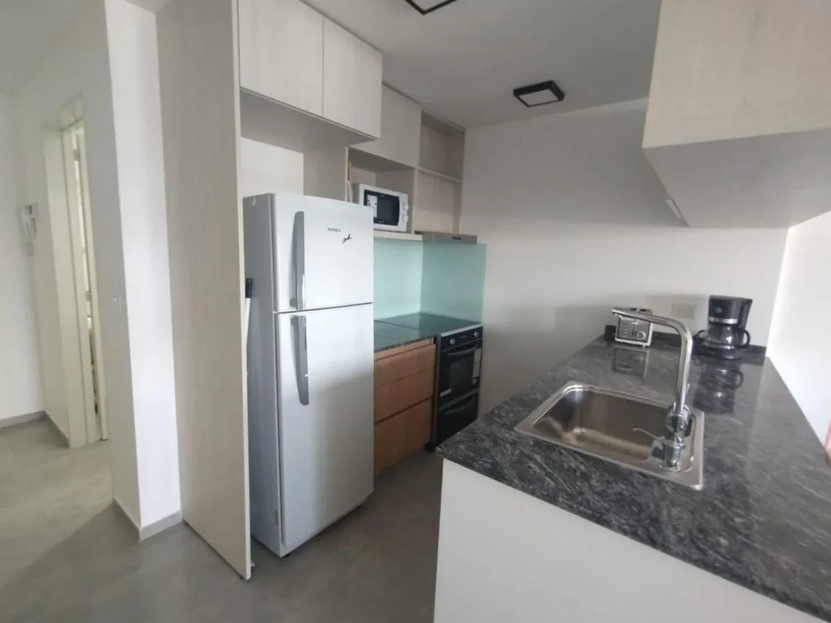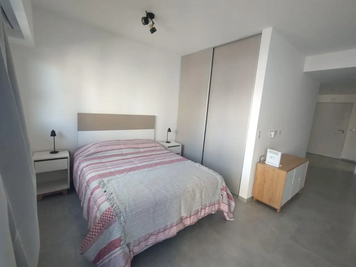 Studio apartment for short-term rental in Boedo, brand new. It has a full bathroom with bathtub and extractor, a kitchen with stove, washing machine, microwave, toaster, electric kettle, refrigerator and tableware, and air conditioning. Double-glazed windows and black-out curtains are installed; the unit includes a sofa bed and a sommier, plus a balcony with open views. The building has 2 large elevators, electronic key access, an electric generator during power cuts, and an intercom with camera