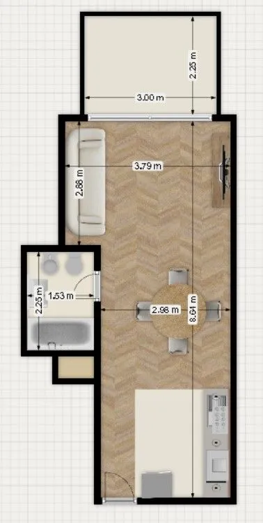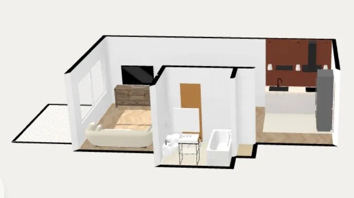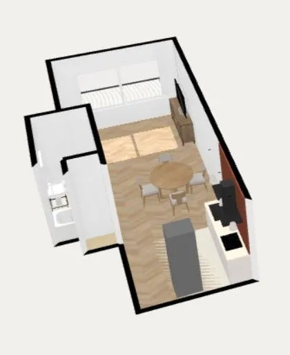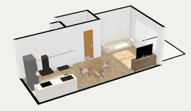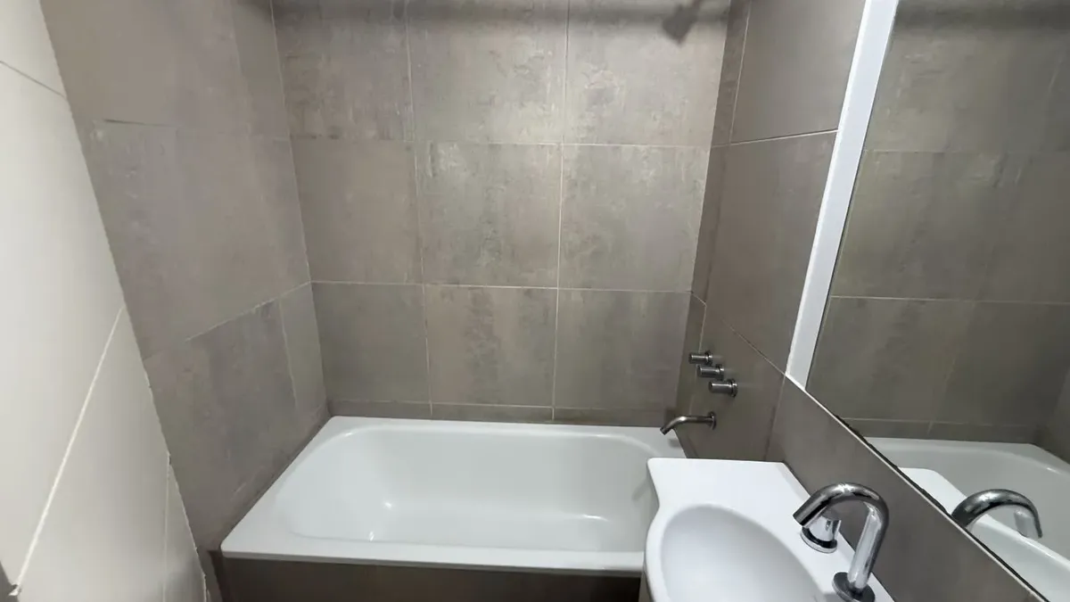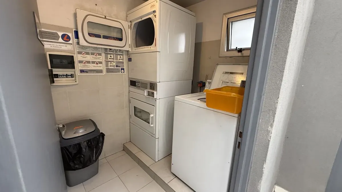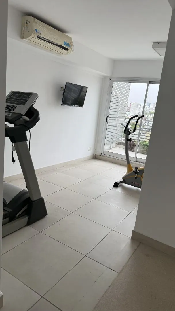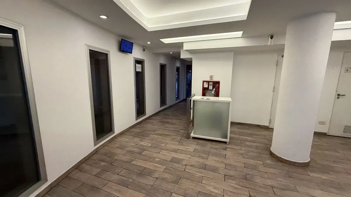 Studio or one-room apartment of approximately 40 m² total, 7th floor, street-facing, in Parque Chacabuco, Buenos Aires. Approx. 32 m² covered plus a front terrace balcony measuring approximately 3 x 2.30 m. Integrated gas kitchen, full bathroom with bathtub, built-in wardrobe, parquet floors in the main room and ceramic tiles in the kitchen and bathroom; split air conditioning; hot water via the building’s central boiler. The building offers terrace pool with solarium, locker rooms, laundry, gym