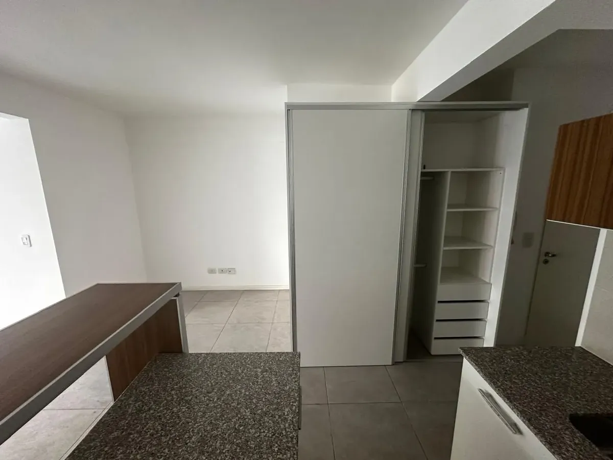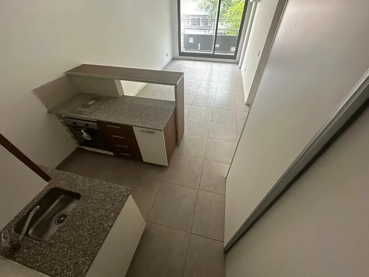New studio apartment in Caballito. Electricity-based oven and hob, and an electric water heater. Porcelain satin flooring, built-in wardrobe with full interior fittings, and a dividing-layout studio. The bathroom fittings include FV (Ferrum). Building has laundry. Monthly building fees for February were ARS 117,500; ABL for March 2026 was ARS 13,658, with quarterly adjustments by IPC. Rental terms mention advance payment of ARS 600,000 and a deposit of ARS 600,000; pets are not accepted.