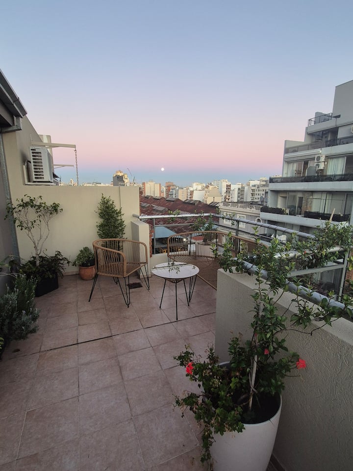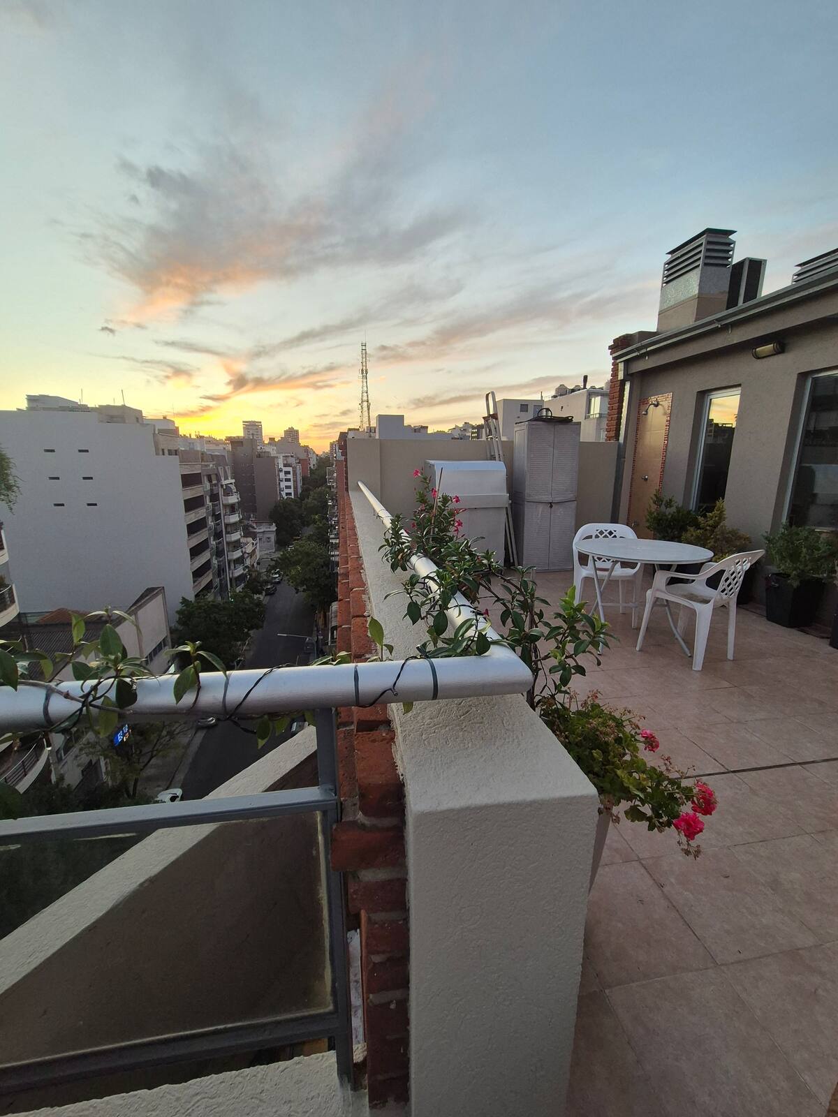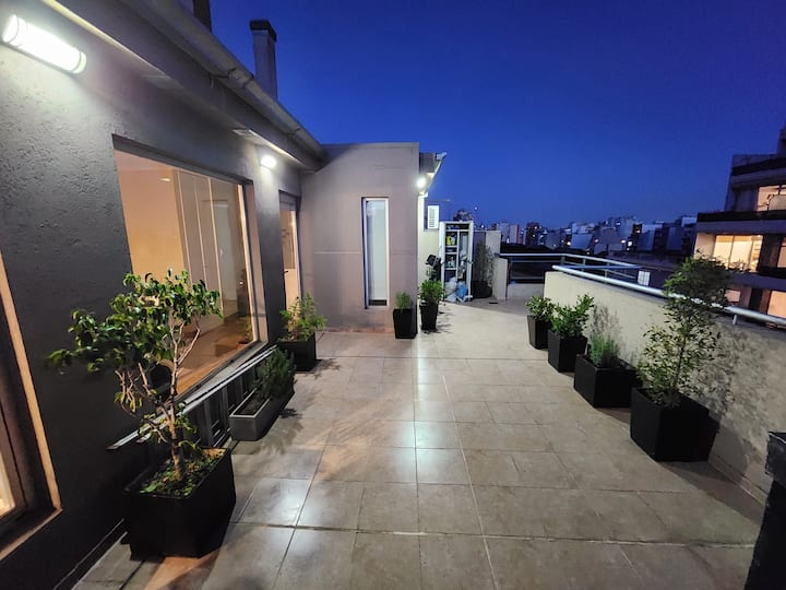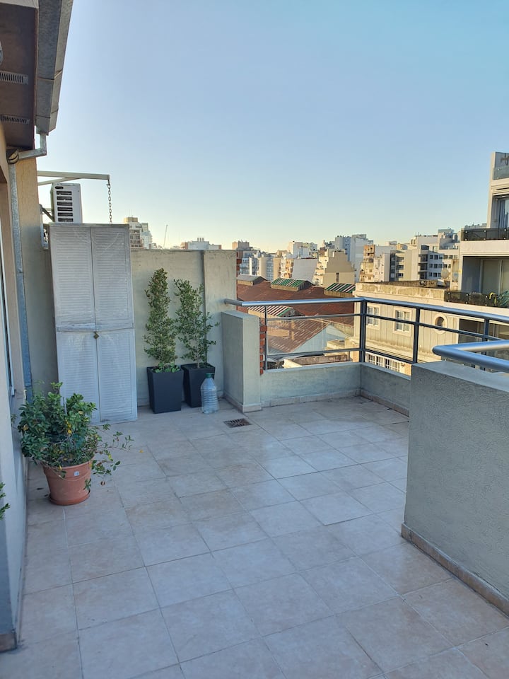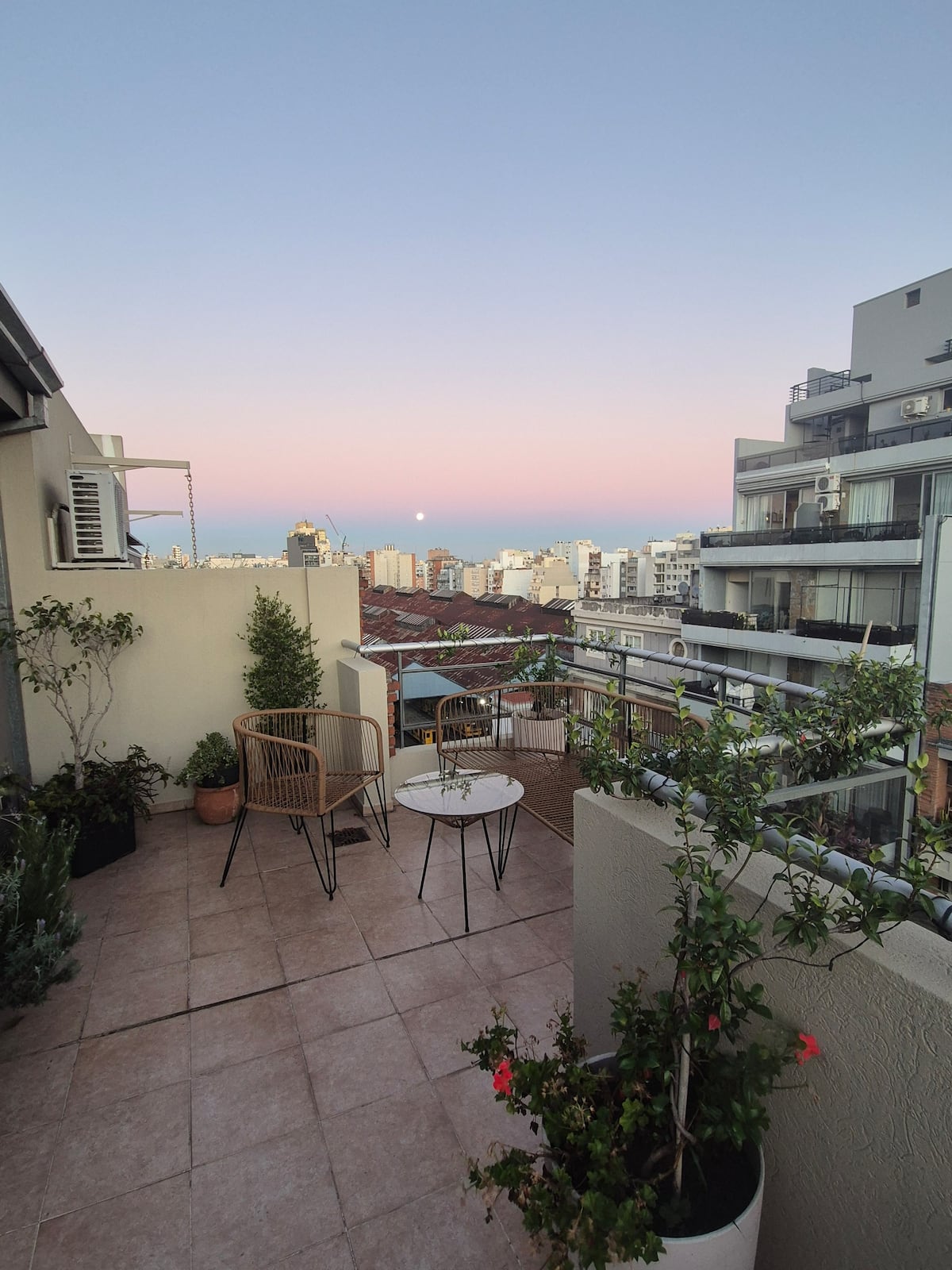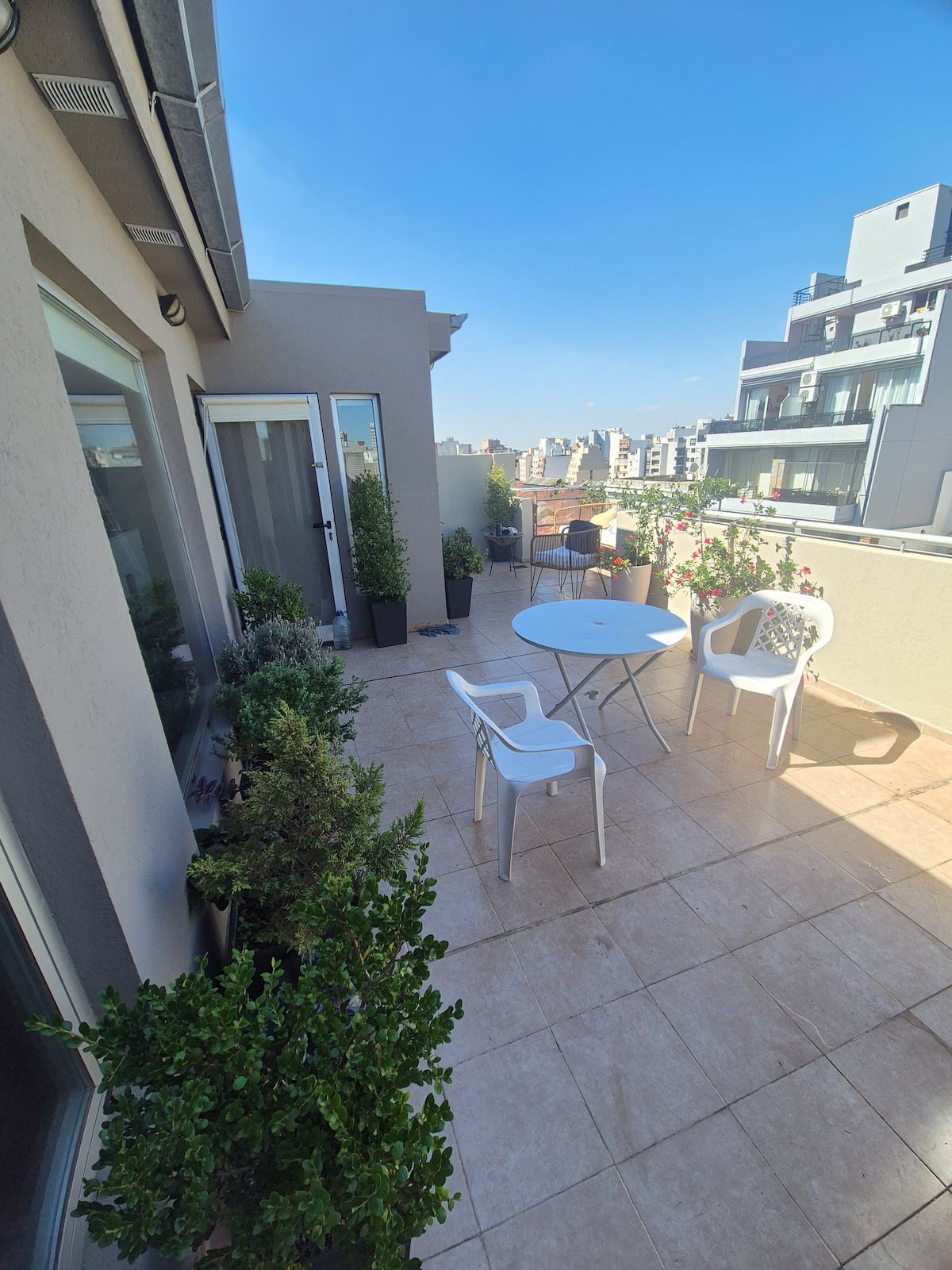 Bright studio apartment with 34 m², on the top floor. Includes space for a two-person bed, a kitchen, and a work desk or studio area. The unit has a 25 m² balcony terrace with open views.