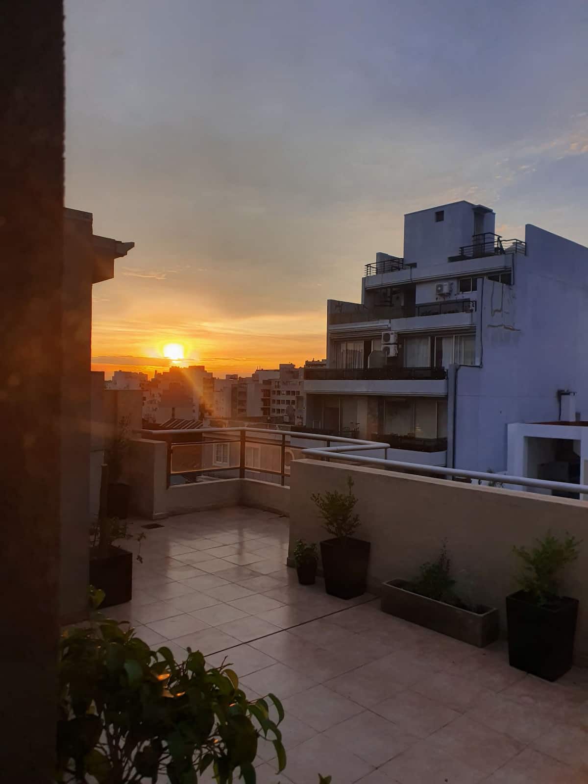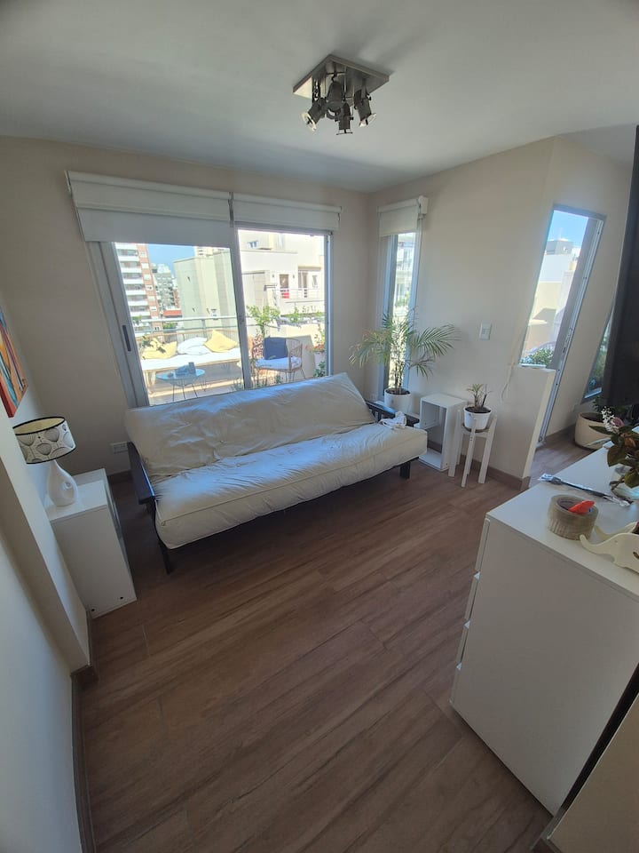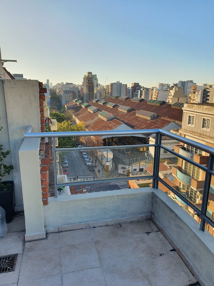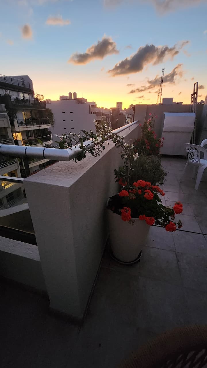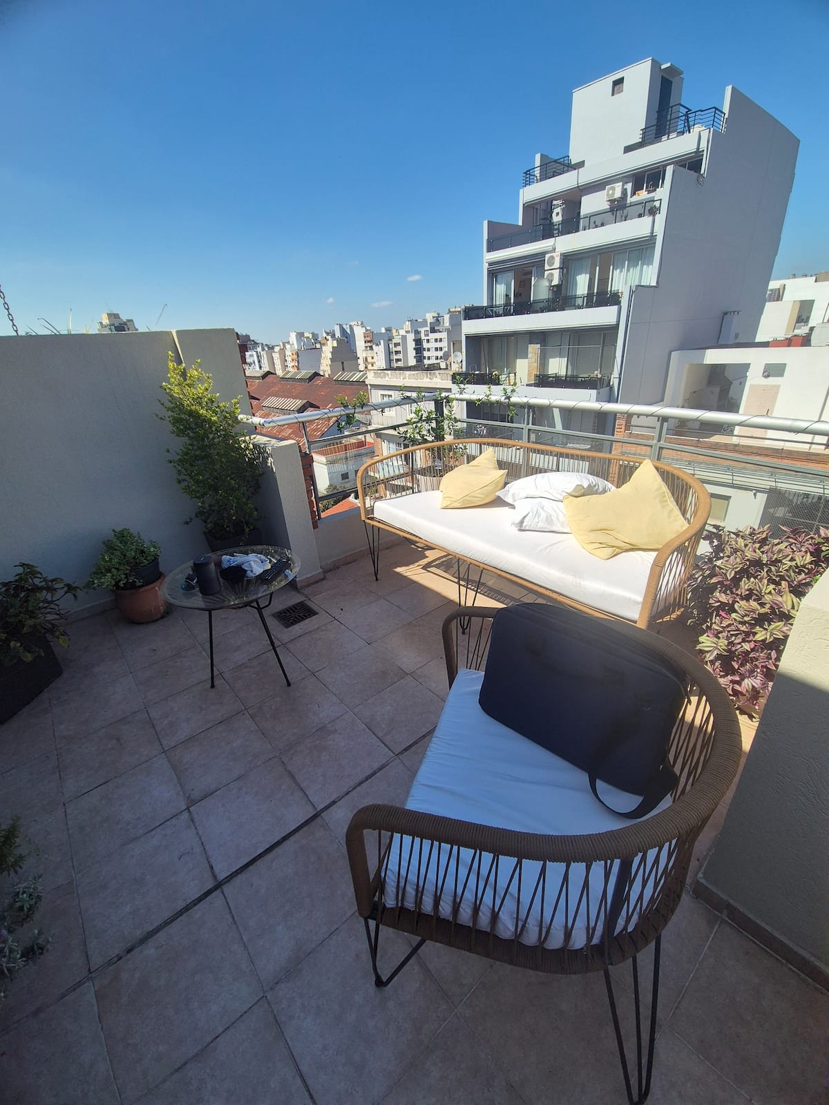 Bright studio apartment with 34 m², on the top floor. Includes space for a two-person bed, a kitchen, and a work desk or studio area. The unit has a 25 m² balcony terrace with open views.