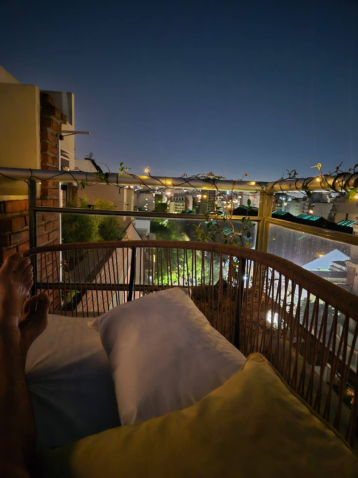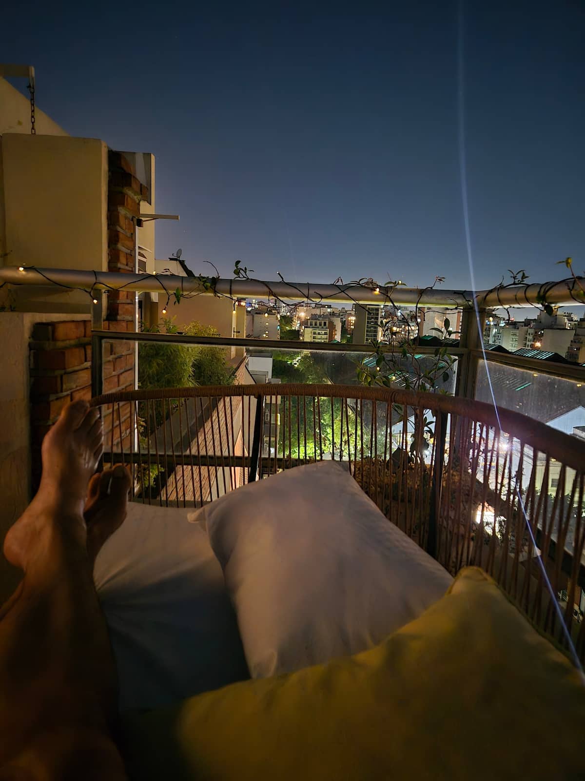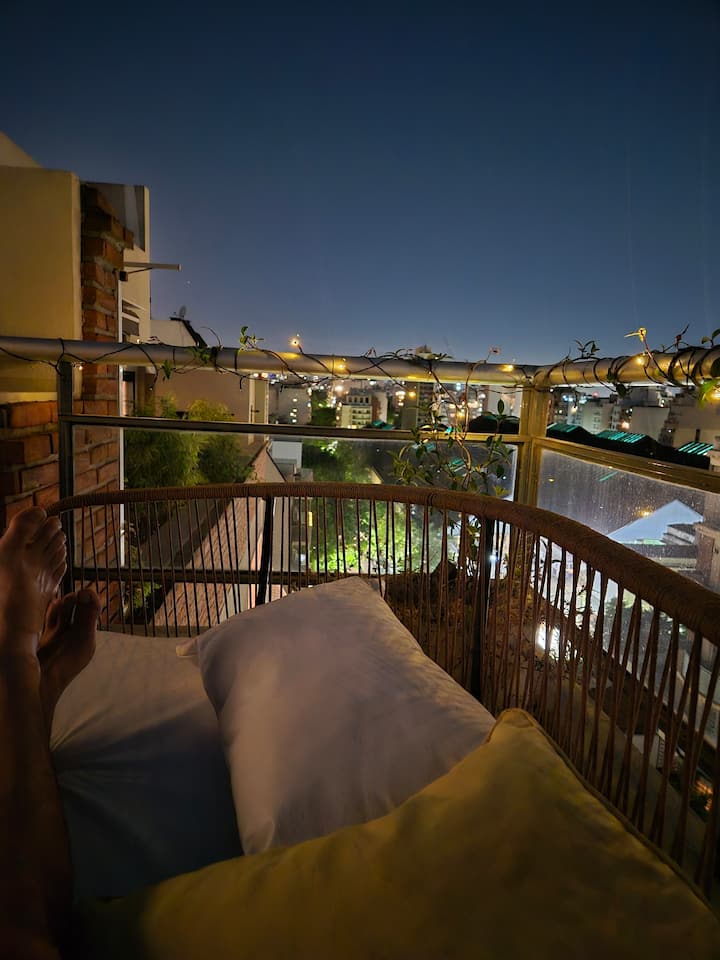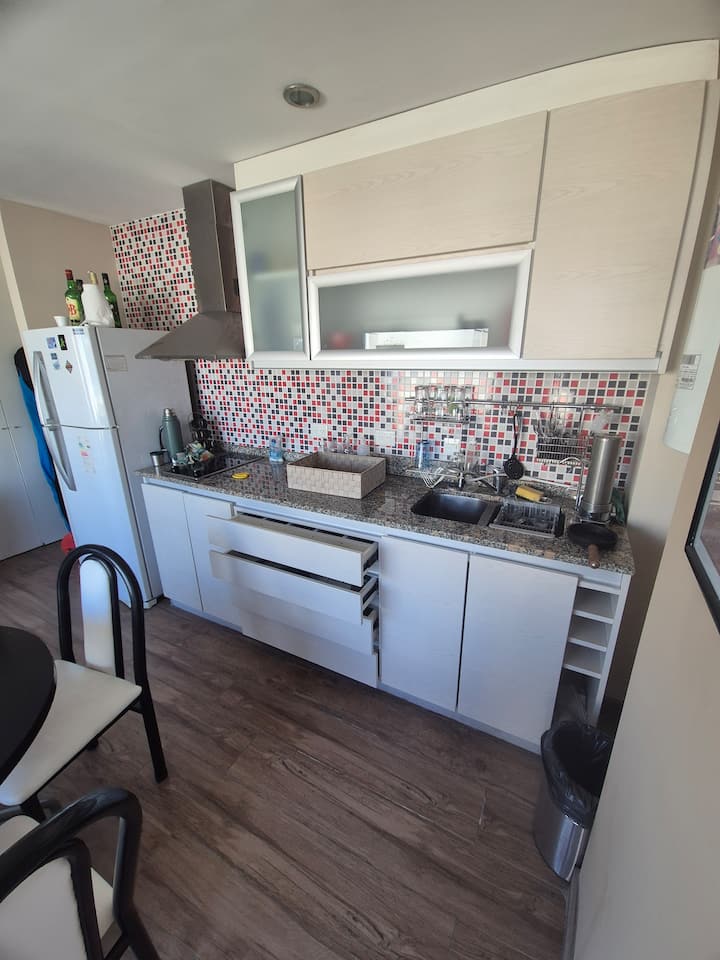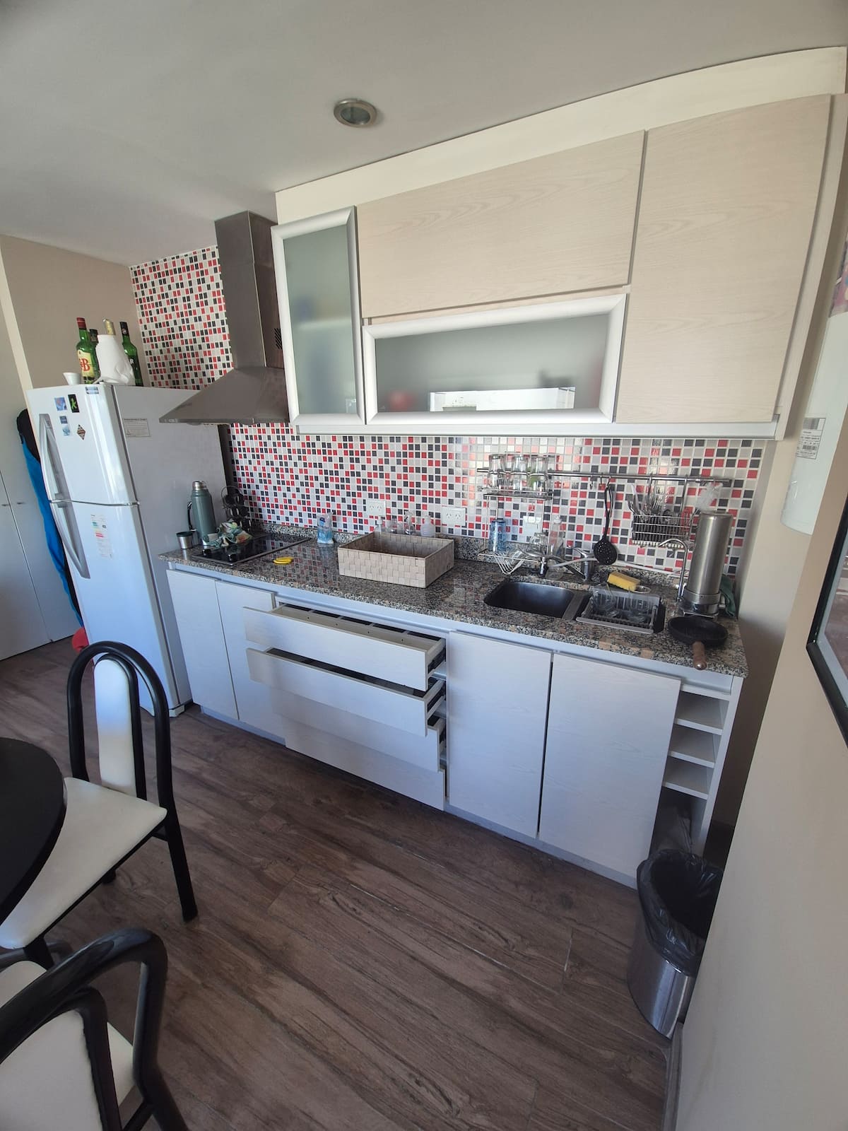 Bright studio apartment with 34 m², on the top floor. Includes space for a two-person bed, a kitchen, and a work desk or studio area. The unit has a 25 m² balcony terrace with open views.