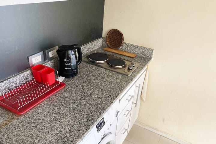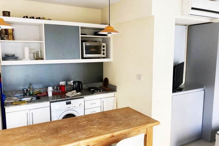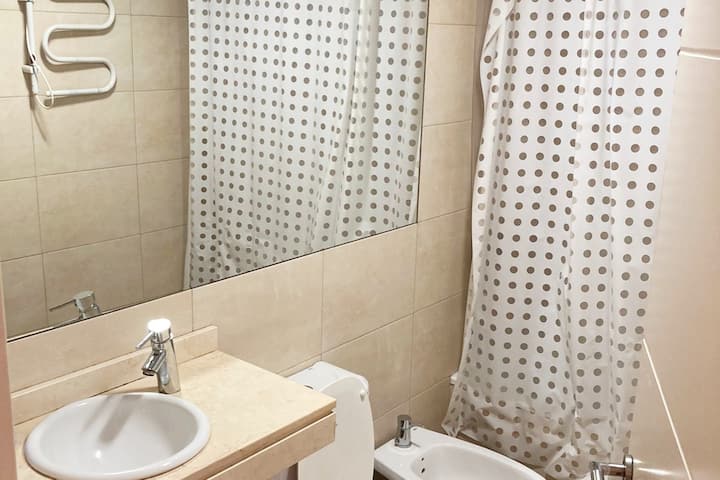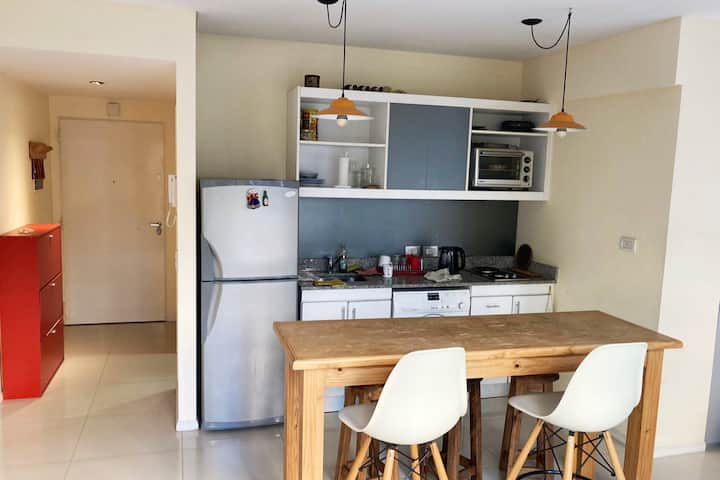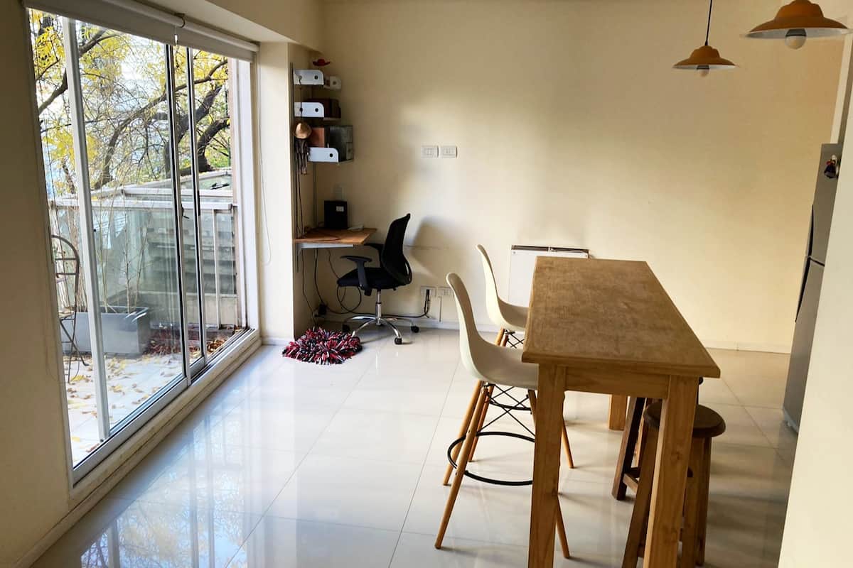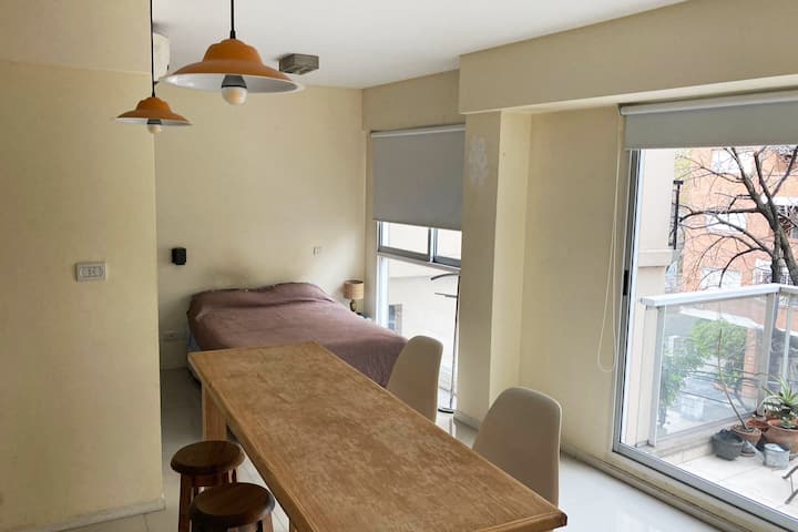 Studio apartment in Caballito, fully equipped, with a street-facing balcony. Equipped kitchen, washing machine and heating and cooling air conditioning are included. Also has a Smart TV without cable TV; four blocks from Parque Rivadavia and Parque Centenario and a few metres from the subway.