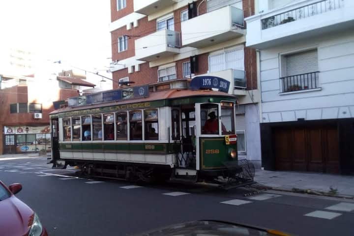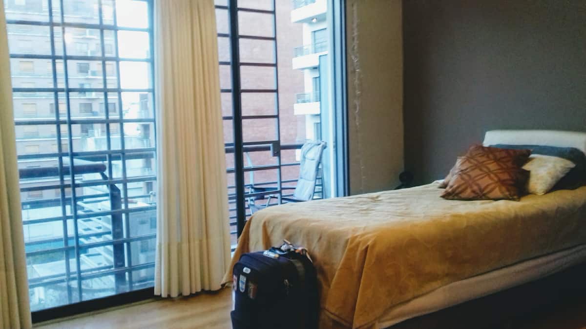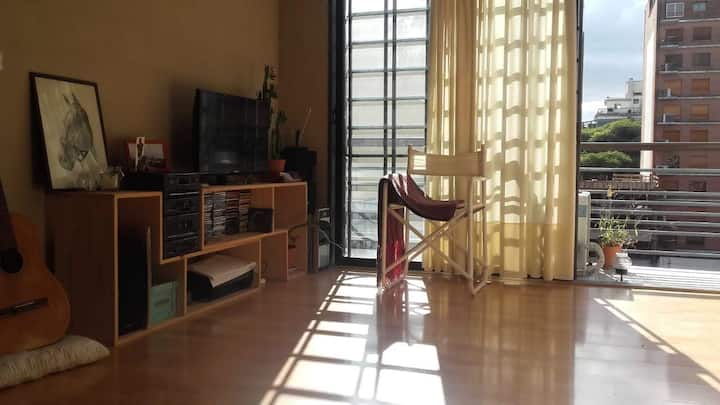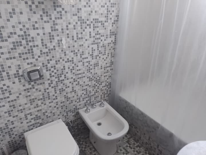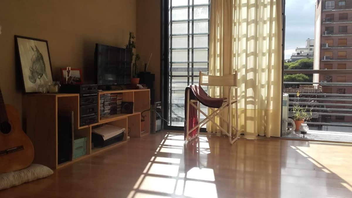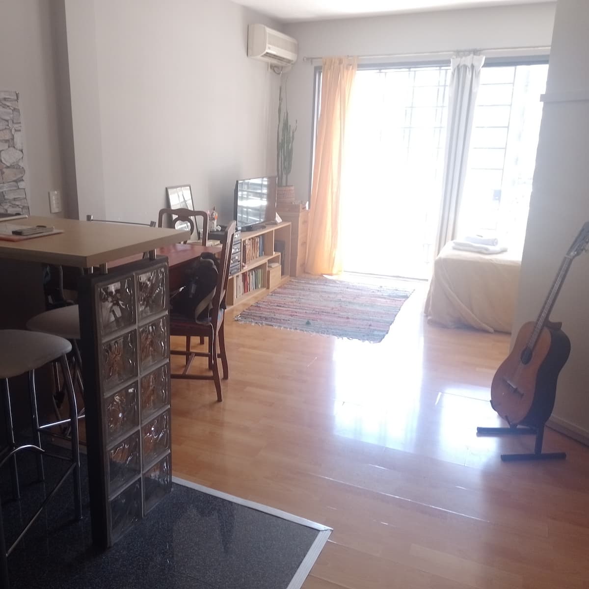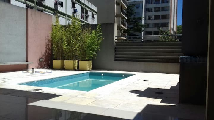 Studio apartment for 1 to 2 people in Caballito. Access to a covered BBQ area (parrilla), a laundry room with coin-operated washer/dryer machines, and a pool. The pool is available from 15 December to 1 March.