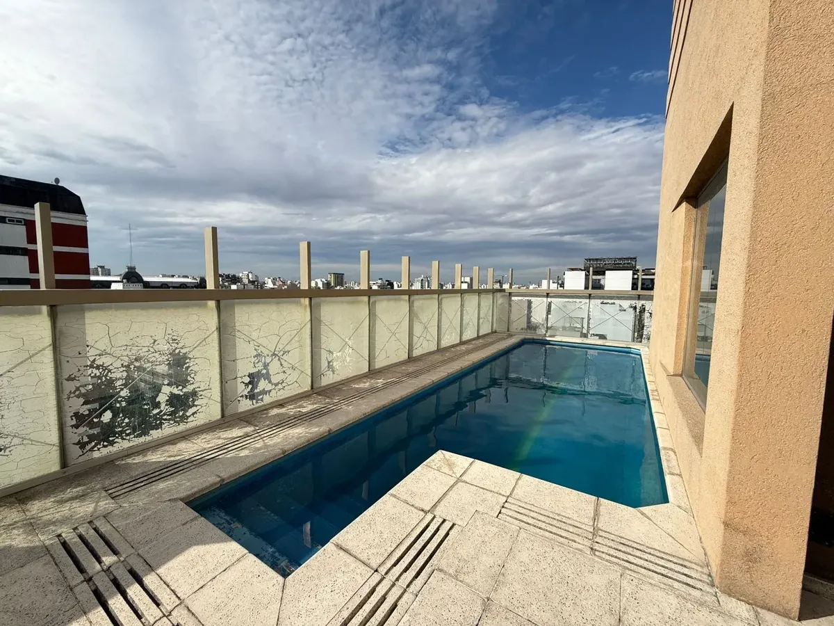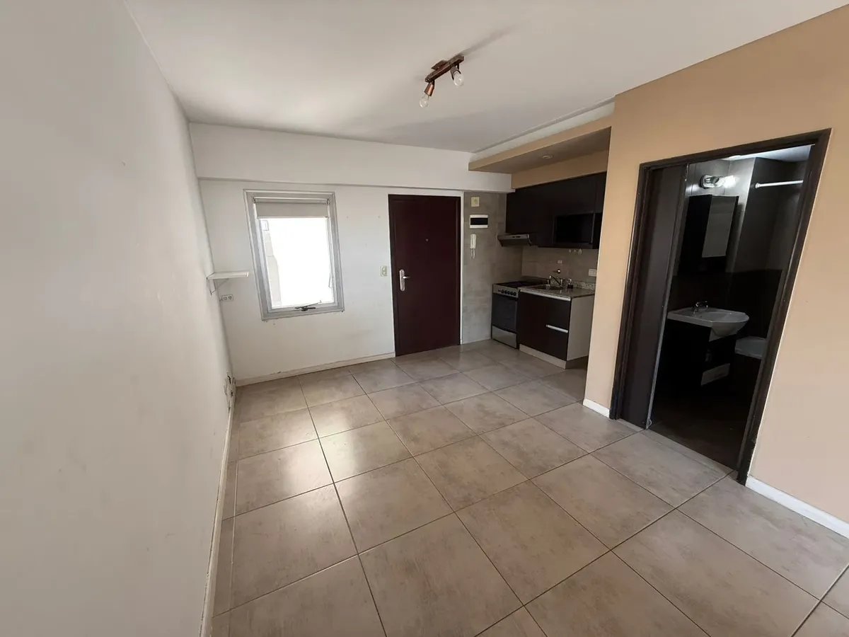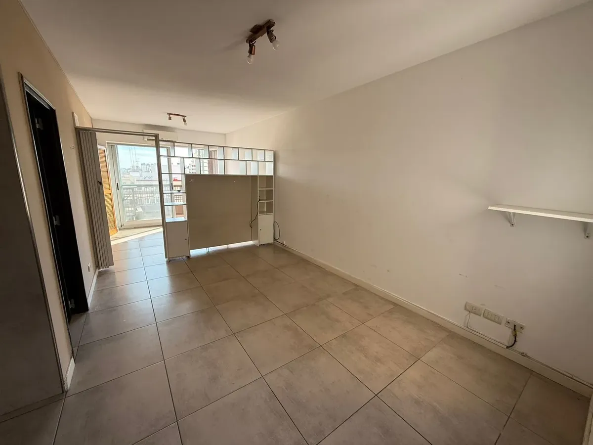 Studio apartment with a balcony, courtyard-facing (contrafrente). It is in the Parque Chacabuco area, in a building with a communal room (SUM) and a pool. Located a short distance from Subte Línea E and multiple bus routes. Rental terms listed: one month in advance, one month deposit, a property guarantee in CABA or a Finaer insurance, income proof, and signatures certified by a notary.